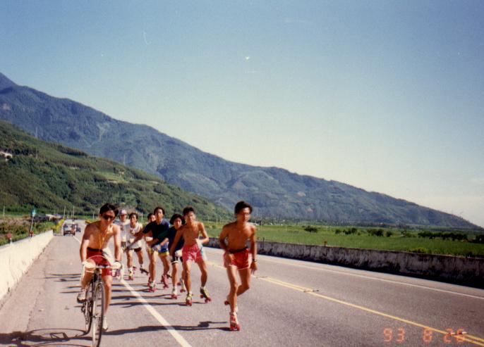 年少時總要做一些瘋狂的事,我做過什麼最瘋狂的事呢??我想就是1993年的溜冰環島吧!! 記得剛參加中原溜冰社時,就聽學長說他們曾經溜冰環島,那時心中真的非常非常羨慕,期待自己有天也可以和學長一樣來這麼一趟瘋狂之旅。到了大二下學期時,在老學長及翁焜煌老師的鼓勵之下,環島軍正式成立。參加的人員有鴻志、啟村、松長、東陽(Tony)、春城、博浩、正偉、偉哲及桃園縣溜冰選手阿溪、胡瓜和呂佳霖。另外還有古先生騎機車幫大家開路,同班同學牛振亞騎自行車陪騎並兼做時間及路程的記錄。並發函至各縣市溜冰委員會,詢問屆時是否願意陪溜。 環島隊在暑假一開始就展開集訓,中央校園路跑、觀音路跑、重量訓練、場地訓練甚至到林口體育學院測驗心肺功能、腿肌力.....每天早上、下午大夥都賣力的練習。只為了能好好完成每個人的夢想。我們在1993年8月23日出發....展開10天半的溜冰環島..........