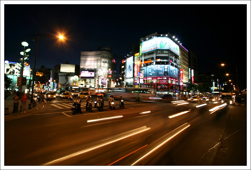 吸引我的是位在捷運出口處那裡整棟閃亮的霓紅燈及巨型廣告看板。