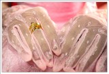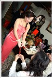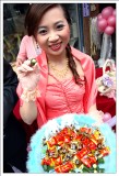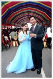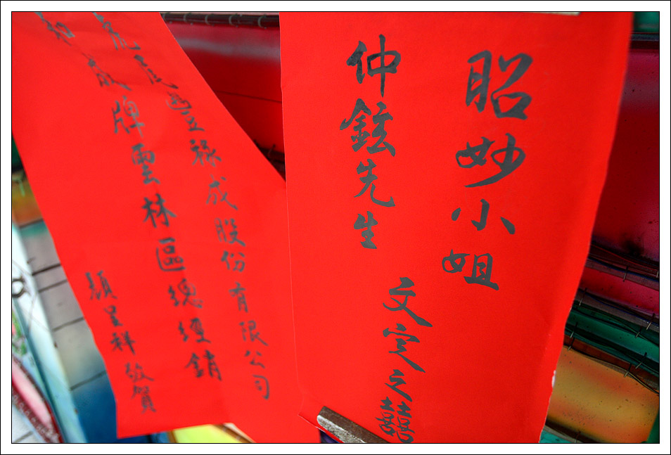 昭妙是跨文化藝術交流協會裡的重要幹部,之前能在鼓舞音樂節拍到精采的照片都是因為她的幫忙,沒想到年紀輕輕的她這麼早就被人訂走了,承蒙她不嫌棄,在這個重要的文定日子裡,她找我幫忙拍照留念,可是豬頭的我,當天卻忘記帶閃光燈下去,幸好儀式及宴客皆在白天完成,不然我可真是糗大了>"<。 而在這次拍攝過程中才發現昭妙以前就是個成績異且多才多藝的女生,在她的房間裡有許多因成績優秀的獎狀,還有一面書法冠軍的錦旗,伯母特地拿出來和昭妙合照一張。而平常工作認真的她,私底下卻有點小迷糊,敬酒時不小心把戒指掉了,卻只見她淡淡的舉起手指說:我的戒指掉了。感覺好像一點都沒什麼大不了...=.=",另外她也很貼心,特別準備了幾雙筷子分送幾位未婚的女性朋友,一開始我不懂為什麼只送人女,後來才知這筷子稱為「筷嫁」,送給好友好讓她們也能早些找到好姻緣。 說了這麼多癈話,最後還是祝昭妙永遠 幸福.美滿 !! ^____^