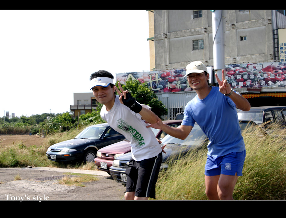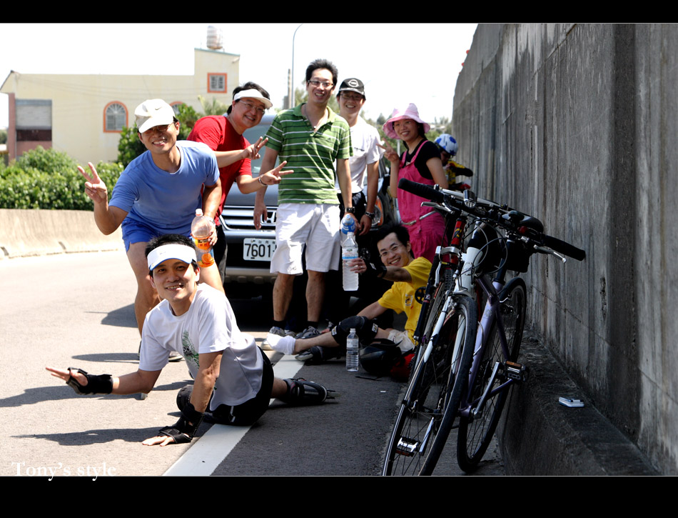所以下午的行程我就擔任司機OR攝影師,這二個之前覺得會無聊的身份那時都覺得比在大太陽下溜直排輪的好,不過做事總是要有「始」有「終」,所以最後剩12公里處我又下車陪啟村溜了最後一段,真是累死我了XD