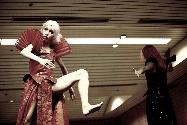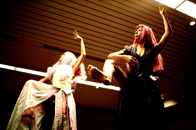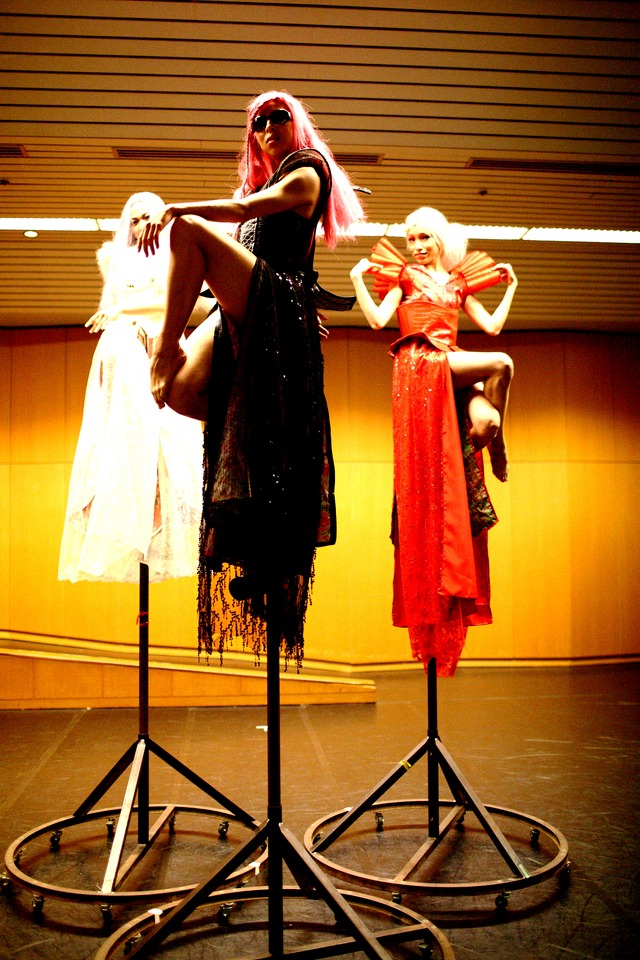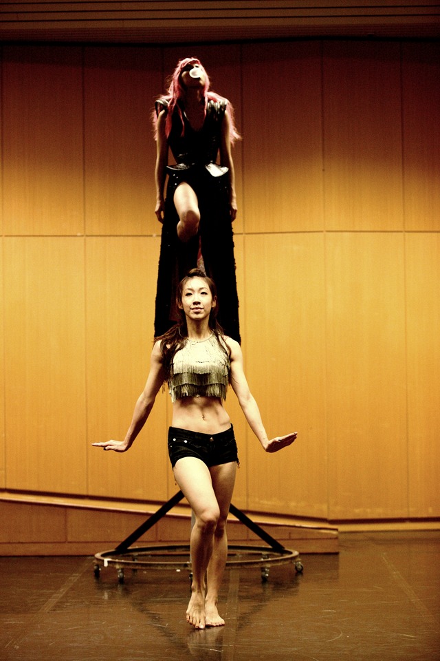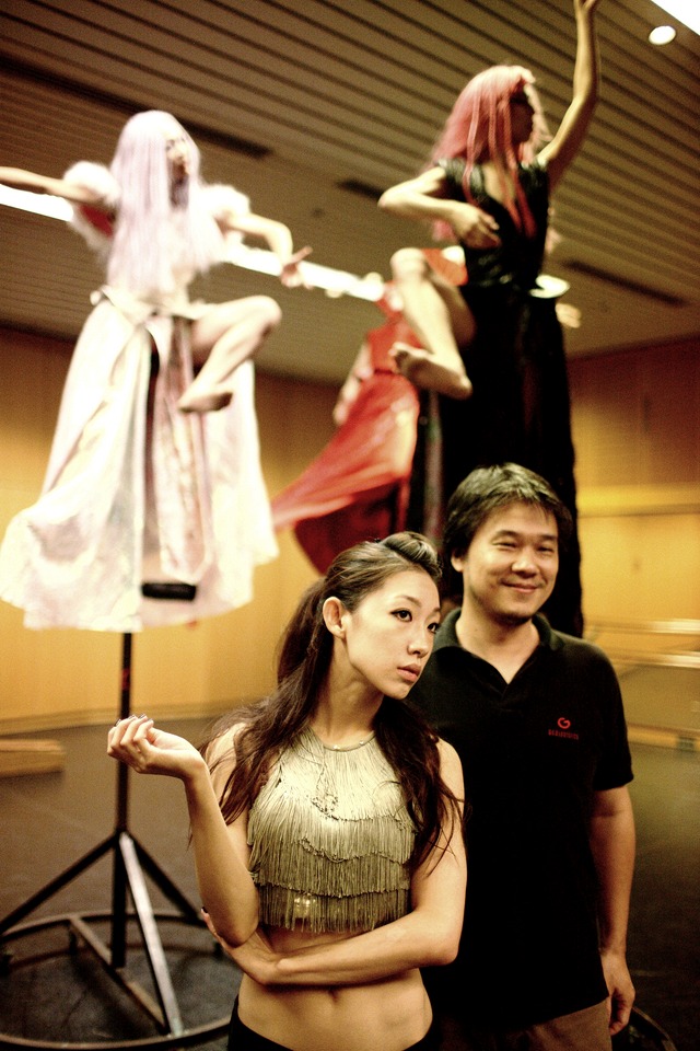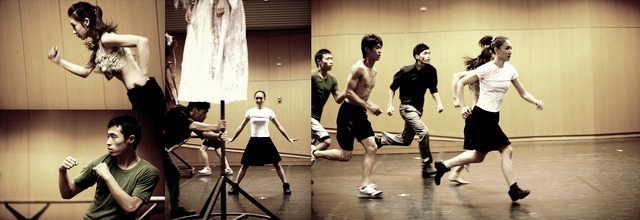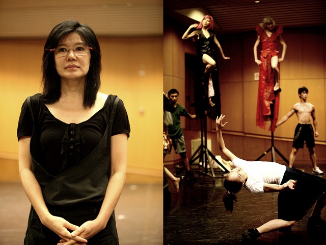 這天早上才去騎完TUAA的2P賽,其實是很疲憊的了,但因為這張電子海報的吸引,我還是努力的到二廳院來看排演^^。 編舞家何曉玫老師打扮上十分中規中矩,講話時稍微帶點靦腆,眼神則散發一些期待..,從這些特質有點難想像剛剛風格前衛大膽的舞作是老師編出來的。 一走進採排教室就看到三位人偶般的舞者被架在高高的鐵架上,三位像是霹靂布袋戲中的大型人偶,非常搶眼,而台下另幾位舞者也像是觀眾一樣走來走去,有時還會狠狠的看你一眼,是的....當我們走進教室時舞蹈表演也隨之開始了。 何老師說她很喜歡以前那種廟會,望著戲台上的高高的表演者與穿梭擁擠人潮間的感覺,而這次也希望能讓觀眾體驗,所以特地和二廳院商量讓觀眾和舞者有這樣的互動,讓大家站在舞台上,所以這時不僅可以四處走動,想要拿起相機拍照留念也可以..,待一定的時間會再通知大家坐到位置上繼續欣賞之後的節目,這種方式相當特別,似真非真,似假非假,人是在劇場內卻又有點像是來到了新光三越那街頭藝人的互動,相當新鮮好玩。 這次Woo!Barbie算是何老師過去的作品的精華集,上下場共有五場舞作,在最後老師又讓我們看了「芭比的獨白」,由一盞燈一位女舞者來呈現,雖然現場燈光都沒有到位,但僅藉由舞者的肢體表現就覺得相當精采了,相信屆時正式演出時會更加出色!! Woo!Barbie於10月15-17在實驗劇場演出,喜愛舞蹈的朋友不要錯過!!^__^ --兩廳院售票網--