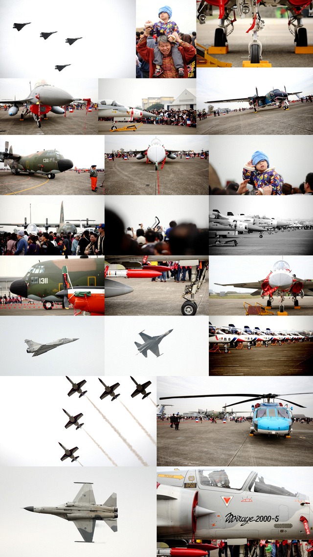「咻~~,小羊你看....飛機來了!!!」 震耳欲聾的聲音沒有嚇到小羊,小羊反而顯得很開心~ 當然...我也是!!哈哈哈~ 這天一早就家裡出發,八點就抵達新竹空軍基地,沒有遇上惱人的塞車,一開始小羊對靜態的戰機還沒什麼興趣,等到戰機衝場後,就開始很興奮...,我問他下次還要不要來看,他也大聲的說好!! 這次用5D+小小白拍,真是力有未逮,不僅拍的小小的,放大後還糊糊的= =,不過好玩就好!!這是我第一次參觀空軍基地,有機會想再來體驗一下!!不得不說近距離看戰機真的很震憾啊~~~