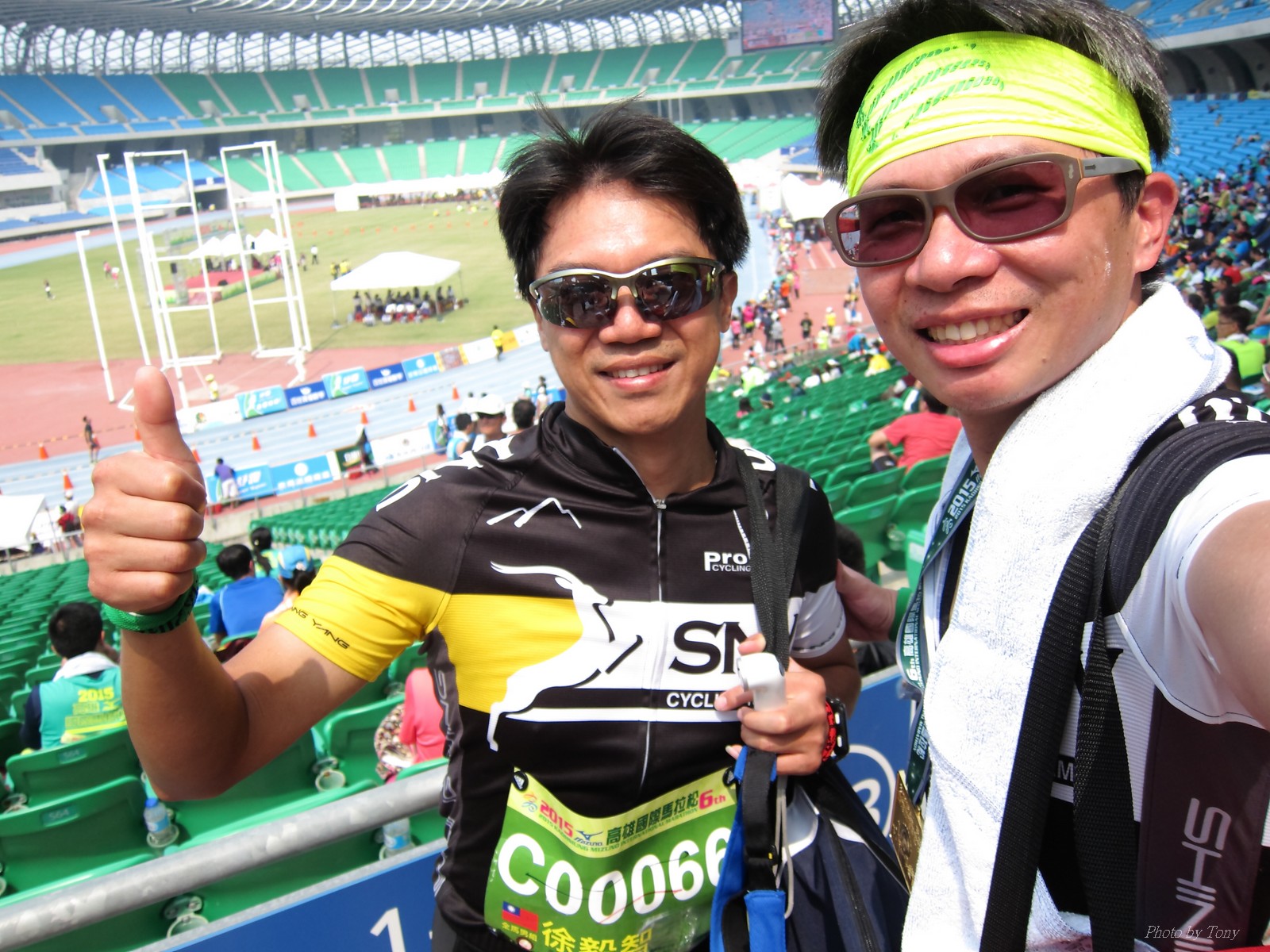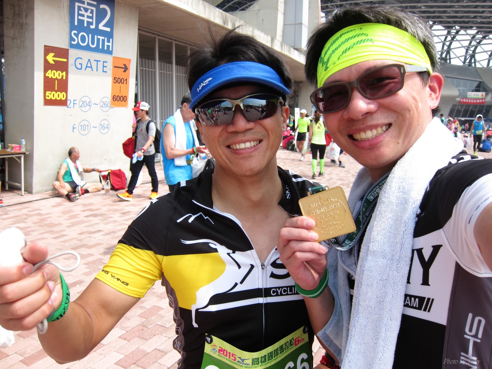 第一場全馬假會選山路馬,跑的很壯烈XDD 第二場當然就要選擇平路馬啦.. 只是...為什麼最後5K我還跑的很想死XDD 沒有想罵人..因為最後連罵人的力氣都沒有了>"< 跑完PO了一張獎牌+成績的照片在FB上 有些朋友覺得我沒什麼練,為什麼可以跑430? 大人冤枉啊~~ 「跑步只有累積,沒有奇蹟!!」 這句話是真的.. 我不是沒有練,只是沒有練很大,沒有把每次跑步練習PO上FB而已啦:P 1月份的月跑量也有100K~ 2月份跑了一趟25K的LSD後,因為不小心遇上腸胃炎(還是諾羅病毒),所以練習量僅剩60多K~,但還是有練習,且不止跑步,我還有騎單車!! 雖然練習量不多,成績不會太好,但我對於SUB 5還是有信心的!!! 因為去年底富邦半馬跑出SUB2,壞叔叔LEO一直叫我衝SUB4 但我自己知道那是不可能的..,哼..別以為我沒有跑過全馬!!因為全馬不是兩個半馬...,後半馬體力的下降是很可怕的.. 目標先穩穩的sub5就好,體力充沛的話,半馬之後 OR 30k之後再來加速??,有體力SUB430也許是有機會的!!! 半馬後加速??30k後加速?? 真是想太多了,過了30k之後真的是痛苦的開始,沒力、腳痛、抽筋,意志力薄弱..什麼症頭都開始上身..Orz 高雄馬的前2K人多路小..,只能7分速順順跟著人群慢慢跑 但是2KM多我居然不小心踩到一個石頭而拐到腳..= =" 拐到之後是還可以跑,但用力點腳裸就會痛..,只能6分半速慢慢跑...T___T 辛苦跑這麼遠來,不會就這樣棄賽吧!!XDDD 看來這次的高雄馬能穩穩跑完就好!! 陳大鼓和我一起出發一起跑,因為他練習量更少,所以我想這個速度對他來說應該是差不多的...,而PETER因為出發前去排廁所,而起跑時間又很緊迫,就直接放鳥了XDD 他說今天的目標是SUB5..,那就一起慢慢跑吧!!6分半速跑完一定可以SUB5的~ 而腳痛的感覺似乎在慢慢跑幾K後有些好轉..,我就將速度漸漸拉到6分初頭!! 第一個10K以01:04:28完成!!(和心理的預期差不多~~) 既然腳沒有那麼痛,那再來就繼續以6分速前進就好,目標馬上改至SUB430..哈) 沒想到跑到12K,旁邊就聽到陳大鼓稍微喘的聲音 我回頭問他說還好嗎? 他回我說...還OK!! 那就繼續維持這速度吧~ 沒想到再2K~,回頭就看不到陳大鼓了XDD 只好一個人默默前進..(回來才看到12k時,他的心跳已升至17x...真的是得降速跑了!!) 第二個10K~按6分速計畫 01:00:27完成 這次高雄馬住在蓮潭會館,約在21KM位置附近 飯店離馬拉松路線約只有300公尺遠.. 所以到15KM進補給站喝水時也順便打電話通知老婆,預計35-40分鐘後會抵達路口 這次大姐、二姐、二姐夫、睿睿還有淑惠、小羊、妹妹都來路旁幫我加油!! 看到家人在一旁加油..真的很感動啊!!T_______T 超開心的~~\^O^/(轉圈~~灑花) 後半馬開始...接下來就是要靠自己了~(一直都是靠自己啊XDD) 跑著跑著,突然發現怎麼半馬和全馬要分流了.. 什麼~~不知不覺25k的半馬到了,要轉進世運場了 而我還有17KM要跑~~,不得不說半馬跑完是有點累又不會太累,還期待能再多跑一些~但全馬....就不是了XDD 一直想著小V寫的... 她跑全馬是很享受的,最後還捨不得跑完 我我我..前半馬是很享受啦~ 但後半馬,真的享受不起來XDD 第三個10K,很努力把速度維持在01:00:50 但30K過後,體力開始直直落.. 得不停的停下來補給喝水吃鹽錠.. 這時平均速度直落到6分半~ 愈接近中午,天氣也愈來愈熱,路上當步兵的也愈來愈多~~自己告訴自己要撐下去,儘量不要當步兵!! 撐到32KM~,告訴自己剩最後10K了, 撐到35KM時,想到丹大初馬時,35K時老婆剛好打電話來,那時真的超累,今天的狀況有好一些,但也好不到那去~ 看著4個半小時的時間慢慢逼近,真不知自己在堅持什麼?? 若不是想要SUB430,我想我一定會當步兵來擺爛~XDD(是說SUB 430還是很弱啊~) 37K到了~~剩最後5K多~~小腿開始有抽筋的感覺,且愈跑愈頻繁,一定要撐住啊!! 最後3K已經跑到有些無力+晃神,但還是得努力回應熱情的加油民眾,謝謝他們辛苦的加油 當啦啦隊也是相當辛苦的!! 最後2K~突然眼前有個穿SNY車衣的跑友 一上前才發現是壞叔叔LEO耶...我居然追上壞叔叔了(大驚~~) 原來...他前半馬衝太快,後半馬太陽出來後,體力急速下降,兩腿大抽筋,只能7-8分速跑走...,所以才會被我追上 不然他目前是準SUB4選手~我還在想..他應該早就坐在世運場裡納涼了 一起跑了500公尺, 壞叔叔說6分半的速度他無法撐下去.. 而我為了要SUB430就先努力往前跑去 沒想到沒100公尺,壞叔叔LEO最後大爆發,用著二隻抽筋的大腿,以5分速從我身旁超過!! 我瀕臨極限的雙腿,只能看著壞叔叔的背影遠去~ 最後世運大道這1K感覺真是跑的有夠久的~怎麼這麼遠啊~ 終於跑到底轉個彎通過隧道就進入世運場裡 真大真豪華~好有大明星的FU~哈哈哈 享受最後的200公尺~ 趕在大會時間4:30:00進入終點!! 謝謝大家~~叔叔達到自己的目標了~(泣) 雖然成績沒有多漂亮 不過稍微掰咖的情況下還可以在預期內跑完,算是很欣慰了!! 高雄馬辦的如何呢?? 不得不說南部加油的學生..真的很熱情(不知他們是不是被動員來的??) 真的很HIGH~ 當我拿出相機,還會爭相說拍我拍我~~哈哈!! 真的很可愛~ 陳大鼓說...若一路都是這種的,他一定可以達成SUB5.. 另外~最後跑進世運主場館,也很有FU~ 這點也很棒 而其它路線部份..老實說就覺得還好XDD 沒有太多著名的地標~(還是我沒注意??) 而交管方面,我知道這沒全程交管,但看到半馬總幾的被紅綠燈擋下來,就覺得很訝異,好歹讓這些追求成績的選手能好好跑吧..,至於我們這種慢的,雖然節奏有點亂掉,