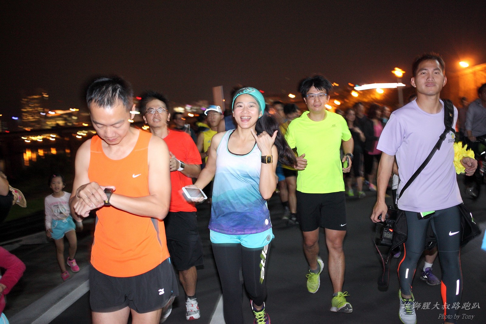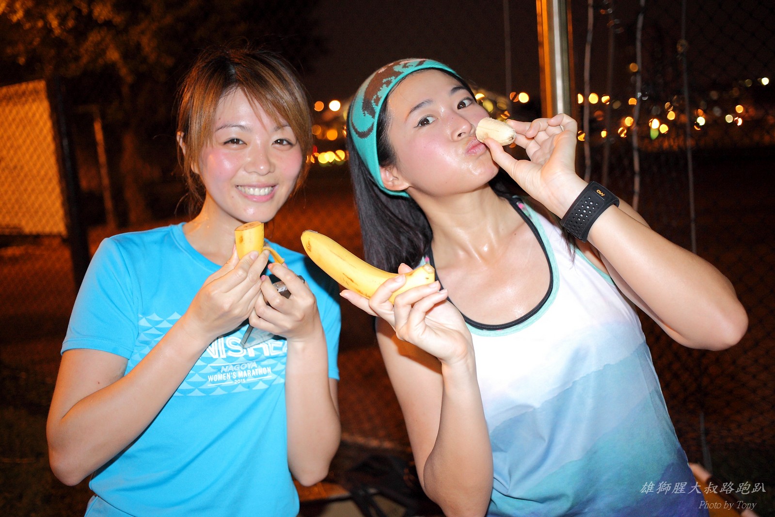 碰村長近來接管欣女孩而晉升為腥大叔(因為一直在欣女孩更衣室出沒~~) 最近分享一個好康的路跑趴活動...(其實是希望糾到300人來參加活動!!) 身為腥大叔的好朋友,一定要來贊助一下的!! 後來沒想到松哥和小猴也都要來參加!! 這活動只跑8k~應該會7-8分速慢慢跑吧~(我天真的這麼想~) 所以就帶著單眼出門 順便也體驗一下若明年抽到東京馬,要不要帶單眼跑全馬... 沒想到領跑的夏美前3.5k都可以跑在6分速內... 還好叔叔有練過,還可以跟的上.. 只是帶著跑3.5k,手就痠了,若要跑全馬,手應該會斷掉吧XDD (中間欣男孩屏哥還從後方殺出來,我卯起來用5分整的速度才追上...Orz) 中間休息點備有香蕉、紅茶和開水.. 沒有吃晚餐就來跑有點肚子餓,加上大會說沒有吃完不要跑回去...就一直吃一直吃,吃了2-3根吧!!哈哈哈~ 感謝腥大叔介紹這個有吃有的玩的活動!! 下次期待你再辦ponki盃喔!!^+++++++^ PS:本次照片用Canon 5D2+ 40MM F2.8 餅干鏡 + 270EX2小閃燈拍攝,270EX小閃燈的效果,比想像中好耶..(照片都是閃燈直打) 艾雪說...她要一張和natsumi一樣假掰的照片.. 恭喜你..今天你假掰第一名:D 這是一個膝蓋痛的概念?? 人太多...鏡頭不夠廣,塞不下XDD 邊跑邊拍的失敗率真的很高,因為常常對不到焦,快門根本按不下去..XD 屏哥的殺氣好重~ STONE看到小猴要來也就馬上手痛不打羽球改跑步了~~(指) 二位真的好恩愛啊!!! 可愛又有活力的小猴!! 黃艾雪一直被這位攝影師要求拍照啊啊啊啊啊~~~ YA~~和美灑的松哥合照了:D