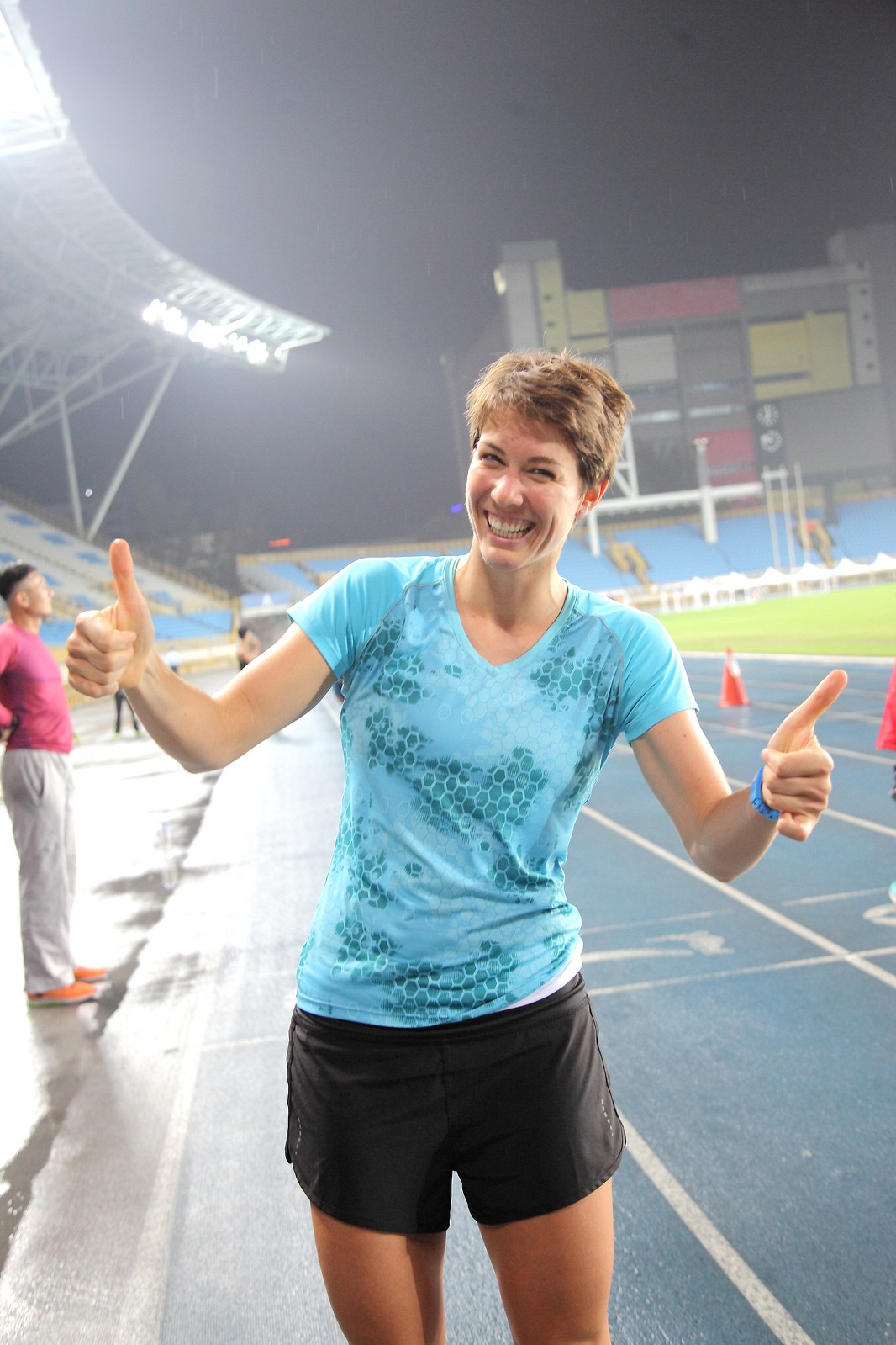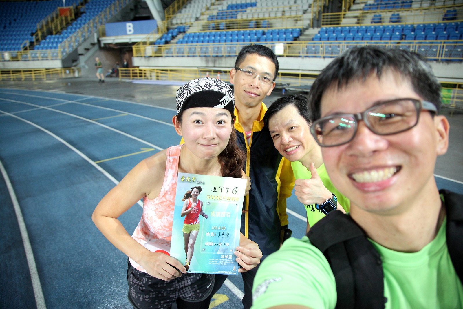 早上才和GBIKE騎完不厭亭100K,大腿感覺輕微抽筋中.. 這樣的狀態是怎麼去測5000公尺啊? 但~~今天的成績單上有小猴,跑再慢也要跑完啊~ 快5點帶著小羊一起去體育場報到 人正心美的小猴先幫我領好號碼布.. 寄物之後就準備要起跑了.. 趕快來去集合.. 什麼,熱身??沒時間啦... 且也沒力氣熱了.. 鳴槍後第1K跑的還挺順的 跑了4:30.. 才覺得要降速跑時 大腿就傳來要抽筋的感覺XDD 只好降速再降速~~ 大腿抬不起來,只能小碎步慢慢跑 場邊的小羊一直為我加油 而小猴和PETER也叫我不要再鬼混了 我也想啊~~但腳就快抽筋了,是能跑多快T___T 最後只想跑完就好..不用管什麼成績了 (不過心裡還是有想..會不會跑輸小猴啊~XDD) 最後26"15完成測驗 平常練習都沒這麼慢啊..不過均速還有5分多,已經比我想像中好了 下一場是小猴和PETER測驗,換我拿相機幫他們二個加油.. 5公里和半馬比起來是不長,但用力跑還是很累的!! 這次測驗完體育場就要封閉到世大運結束 感謝小猴的邀請,明年要來雪恥!!!(握拳!!!)