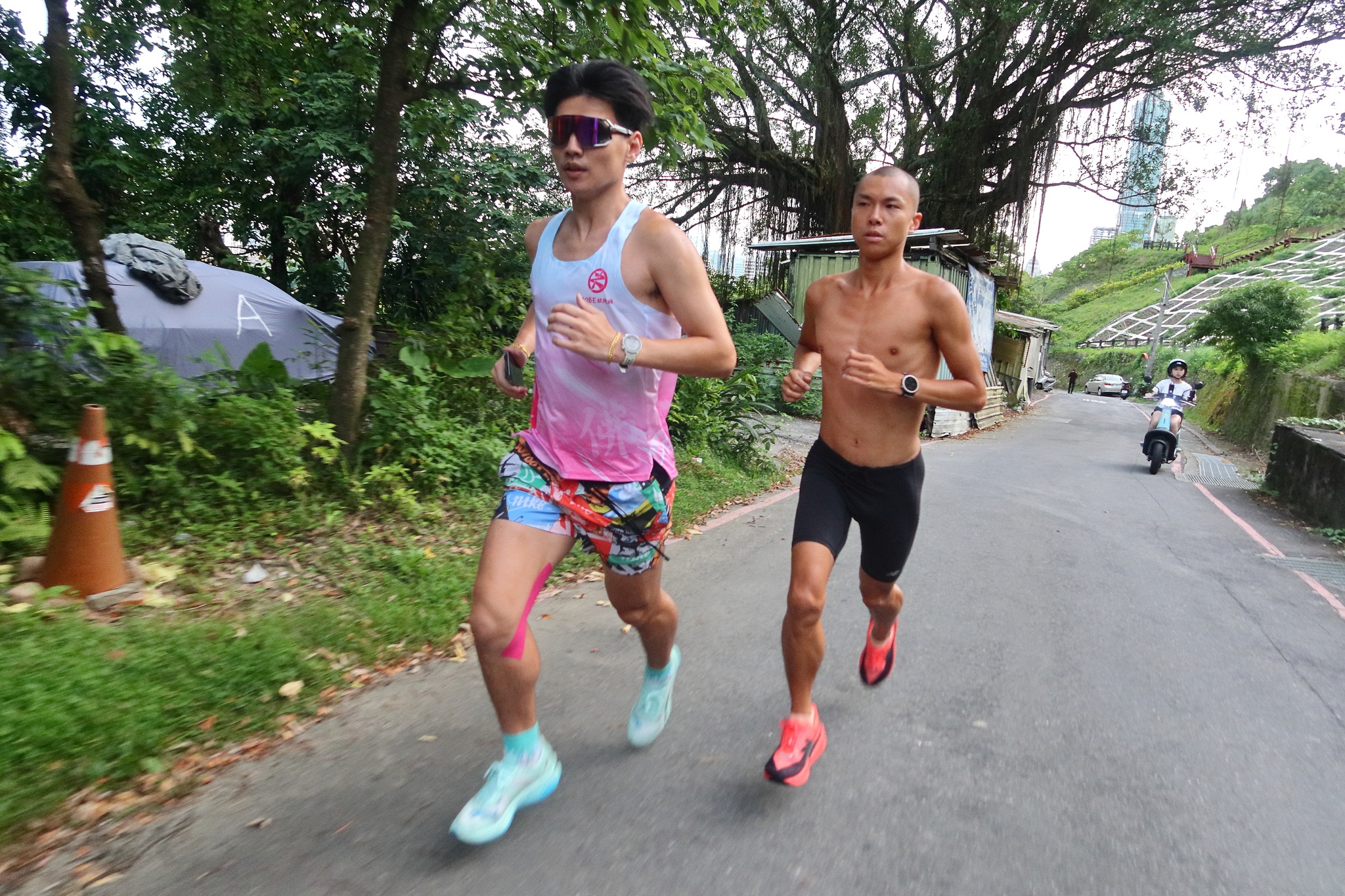 今天來當光頭和KOBE教練陪跑員~ 祟德街福德宮跑到中華科技大學 來回約16.8K 均速約425 坡沒太陡,樹蔭很多~ 是劍中劍以外很好跑坡的路線選擇~😁😁 外部連結
