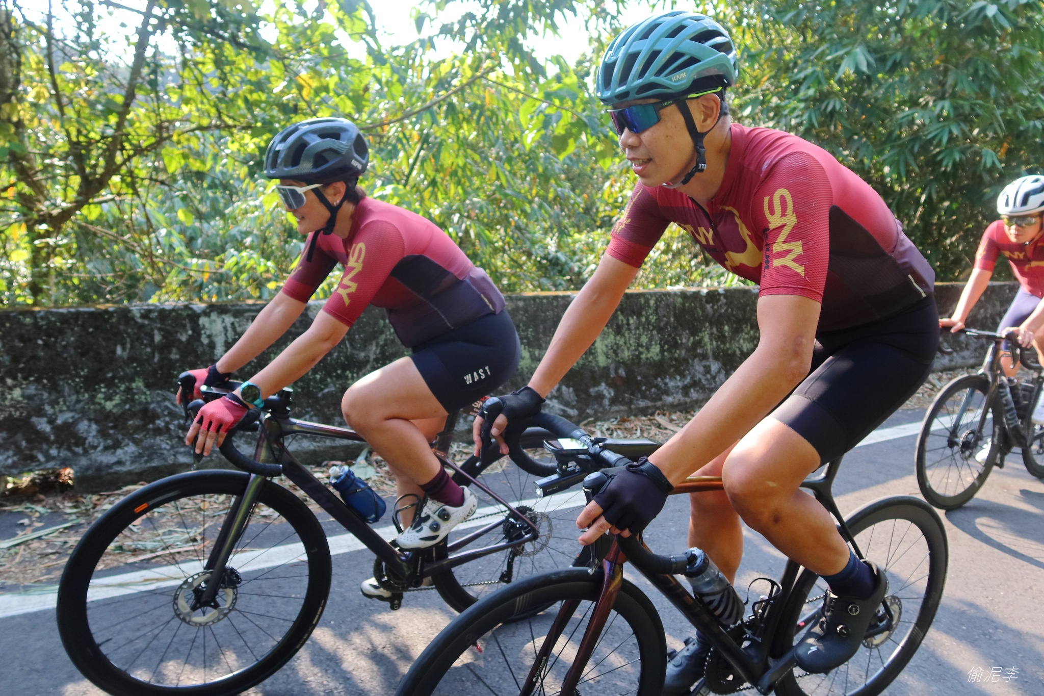 DAY2 預訂行程路線 梨山賓館--888路牌照--大禹嶺--武嶺(上車)--塔落彎景觀餐廳(上車)--向山遊客中心--沙里仙渡假村 本日亮點是 「跟上A組列車」 「高山症的肉肉」 今天的心路歷程簡短的來說 就是趕趕趕 不知在趕什麼= = 一早出發後要先到888拍照 胖薯叔很有勇氣的跟上A組 然後突然發現~ 只有我和名泰老師跟上耶~ 率先抵達888路牌 先幫A組拍張合照後 A組就先出發了 然後SNY的大家再陸續到來 大部份的人都來拍張獨照 薯叔也很有耐心的幫忙拍 但突然聽到一聲「走了走了,要出發囉~~」 「薯叔等一下,我也要拍~~」 「薯叔再等一下,我還沒拍~~」 然後就看著沒良心的列車開走... 我趕緊跳上車狂追.... 好不容易追上少暐列車 跟不到10分鐘我就後悔剛剛為什麼急著追上來.. 這強度我跟不完啊啊啊~ 自己默默掉隊(後面跟著麵線哥) 用著舒服的Z2來騎就好 騎著騎著~ 顆顆,肉肉掉隊了吼 默默的在修路陡坡段抓到她(WINNIE和ROSY摔車的地方) 肉肉說一出發就覺得好喘 這裡海拔已超過2000 應該就是不適應高海拔吧(這是體質問題~,不是體力問題) 用剛剛追上她的速度帶 明顯聽到肉肉喘到不行~ 那就降瓦吧 梨山到大禹嶺有快30K 這段路不要太用力 等會還有最後10K天堂路要爬 這次出門果膠充份準備 倒數10K處還提醒大家記得吸膠 不要騎到沒力~ 然後倒數7K處遇到在路邊休息打電話的名泰老師 遇到老師真是一則以喜,一則以憂 有老師來幫忙破風好像會比較輕鬆 但一不小心好像心跳就被拉高快爆掉 不過還是感謝名泰老師來陪我們騎啦 終於,快樂的時光結束了 抵達大禹嶺 趕緊去上個廁所 補個香蕉 就聽到少暐對肉肉說 你這狀況,大禹嶺至少要騎個80分鐘,你早點出發(肉肉最後騎了79分,真是神預測~) 肉肉抓了車就要走 我剛好香蕉吞到一半 我馬上大叫「肉肉等我~~,薯叔陪你慢慢騎~」 趕緊把剩下一半的香蕉吞進去 速速出發~(明明就還很多人沒到,是在趕幾點的~) 然後一上路還沒騎500公尺 真的只是輕鬆騎 肉肉就掉在50公尺外了 肉肉:「薯叔我不行了,真的好喘,會無敵慢,你先走~~~~」 呃,回頭看二眼 肉肉真的使不上力 薯叔:我慢慢騎,我不一定等會就爆了,你就可以追上來了 然後就帶著沒壓力又愉悅的心情慢慢龜上武嶺 這次的天堂路怎麼沒有以前那麼陡了呢??(顆顆~) 也感謝老天爺給了一個完美的天氣 風景超優的~開心 (武嶺還剛好遇到AYA~) 中午在塔落彎景觀餐廳吃好飽 然後昏睡到向山遊客中心去 等會要騎到沙里仙渡假村 已經下午4點多,還有40多公里要騎 爬升還有800~ 比表定晚了快1小時 這樣來的及嗎? 腦筋還沒思考完 大家已準備好要出發了 前面13K是以下坡為主的地型 大家慢慢跟在EASON後面一起前進 心想是不是今天的 ENDING要這麼美好的時侯 過了水里龍神橋 就看到EASON打了個放行手勢 感覺就和197一樣,速度和瓦數整個突然拉高~ 整個列車拚拚ㄅ一ㄤㄅ一ㄤ了起來 EASON帶完換少暐帶 然後一個大下坡,身邊突然衝出一個隊友 !!!! 小鋼炮寛寛出現了 不愧是小鋼炮 一出現就活力滿載 一下子就殺到前面去 然後我前方的韋婕感覺有些沒力,一直掉隊 但好心的名泰老師也一直幫她推回去 推一次~我就開掉一次...= = 幾次後韋婕終於掉隊沒力 但我也沒膏了 然後麵線哥突然看到空拍機開槍出去 列車雖然沒有大力噴出 但也逐漸加瓦 好不容易撐到坡頂 但下坡列車還繼續加壓... 然後~~薯叔就沒有然後了 一個人掉隊獨推~(還遠遠看到也有人掉隊,腿很白 ~~是寛寛~~哈哈) 跟著列車很苦~一個人騎頓時輕鬆多了 沒多久被NAOMI給追上(原來她有點機械故障,所以稍微靠邊檢查一下) 薯叔努力跟上 怎麼小小一隻,我跟個平路也覺得好辛苦 二個人輪流唉唉叫好累不想努力了 但腳還是不敢慢下來 我說~記得前面和社那有個小七 我們就在那休息上車吧 終於~~給我們撐到了和社小七,大家也在那休息,開心~~ 一到馬上受到大家的關愛 怎麼轉頭薯叔就不見了 薯叔呢??薯叔呢?? 大家真的都很有愛啊啊啊~~嗚嗚嗚~~T___T 剩最後8K~(後來實際是6K因為是沙里仙渡假村不是沙里仙飯店) 本來和NAOMI說好要上車了也以為要天黑大家都要上車了 沒想到大家還是堅持要騎~說要慢慢騎~~(我又信了,太嫩) 一出發~ 前面集團就走了~走了~~ 不是說好慢慢騎,怎麼跟不上 你的慢不是我的慢~ 然後真的慢的是肉肉~ 看起來剛真的操懷了 好吧~雖然剛剛才笑我 但人帥心美的薯叔不會跟她計較 慢慢陪她騎~ 然後她看著前方150公尺前有三人小集團(LEO壞薯叔、麵線哥和大ALAN) 她說我們追上他們一起騎 我就發力追一下 發現他們也用力了,好像不好追,準備放棄 一回頭,肉肉也掉了.... 啊~沒力是要追幾點的? 不過趁一個下坡路段,還是把麵線哥給追回來 再一起追到韋婕 飯店前路上突然出現一個大水坑 看起來水還有深度 麵線哥一馬當先先過去~ 看起來可以過,我也跟著過去 二個女生就下車涉水牽過來了(可惜那時沒力多拍照XD) 涉水後韋婕突然活過來 一直加瓦 還好在薯叔爆掉前飯店就到了 耶~~灑花,本日完騎!! 外部連結