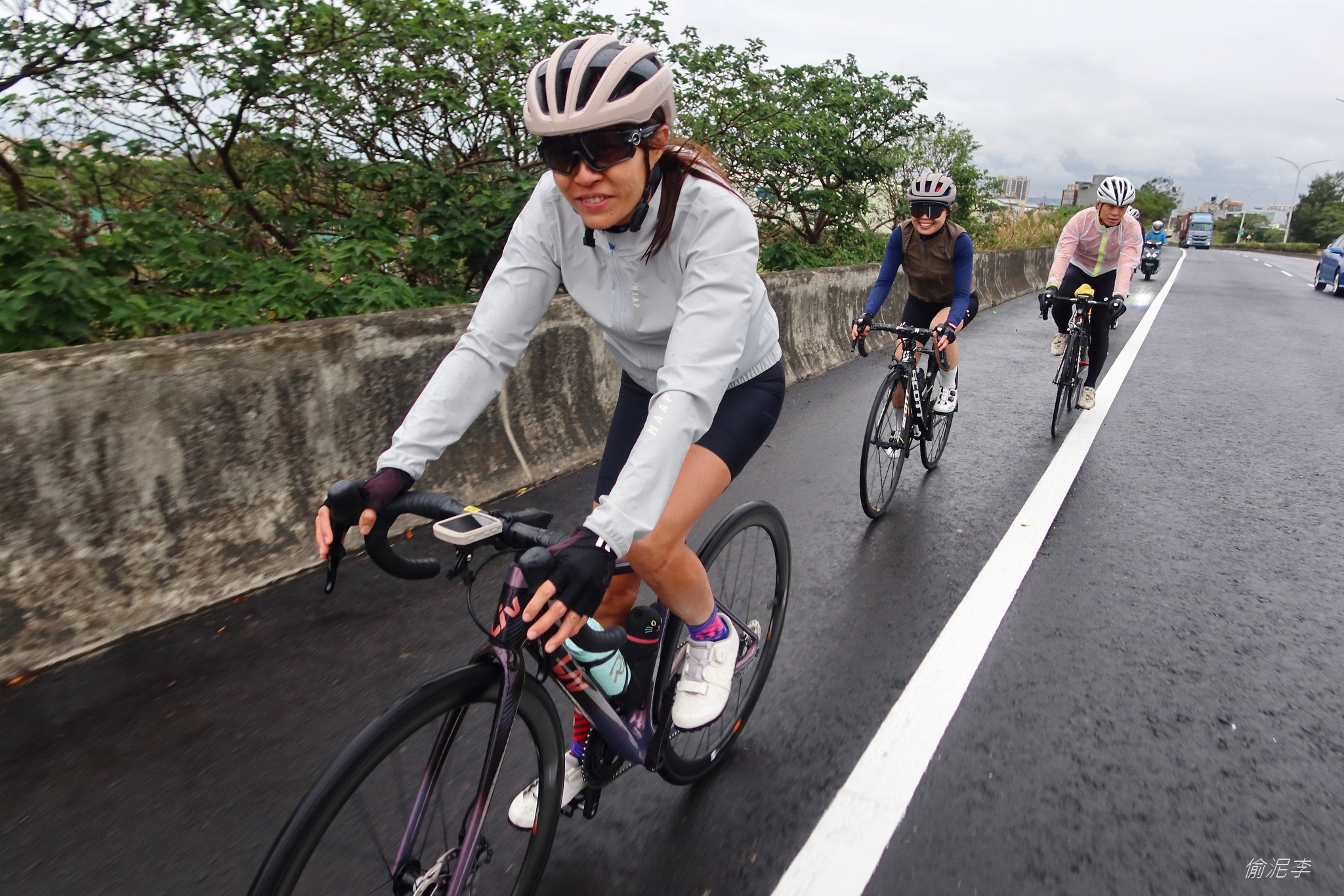 西濱淋雨100K~ 說好的八里之後的地乾無雨呢?? 只是要騎個100K~好像也不用這麼拚 在這又溼又冷的下雨天騎車 但就是這樣吧~ 約了就走了~ 好像也沒什麼不行,多不好~ 下雨降低了大模的強度 一起騎起來也挺開心的:P 話說之前就說要陪貞信社騎趟遠距離的 看他們最近練的很勤 終於在年底要來個一日北嘉 這週天氣預報不好 我私訊問阿信說會延期嗎? 他說~~房間都訂了,風雨無阻 然後,大模,小妞,ALAN哥,米粒都會來陪騎到台中 這麼熱鬧~ 我也來規劃一下 因為中午有事 按阿信他們的規劃差不多騎到苗栗搭高鐵回台北時間還OK~ 從八里廖添丁開騎 陪100多K也算是誠意滿滿了 然後~人算不如天算 週五因為預報不好 他們決定搭火車到新竹開騎 大模和小妞按原計劃看天氣出發 預計8點到南寮附近的聖華7-11集合 之前和大模、NI姐騎過一次廖添丁-南寮 時間大概2小時10分 這次再加上八里小七到廖添丁廟這段路 還有天黑地溼的原因 80K抓個2小時40分左右應該可以 所以約了大模5:15八里觀海小七集合~ 3:50確認是否出發 凌晨起床,大模看八里後的狀況還OK 就決定出發 胖薯也快速著裝後在4:20出門 一路地溼小雨 八里會合後~ 想說天氣可能會愈來愈好 結果~~沒有~XDD 一度還風雨更大 大模一句:來都來了~就硬著頭皮繼續騎 一路地面沒乾過 跟車會噴的滿臉泥水 不想當吐沙蛤蠣 我只好去和大模併排騎 並叫他不要快~不要快 天黑路滑騎慢點 冬天慢慢騎講幹話不好嗎? 在大模精準的配速下 還在永安休了10分鐘 我們依然8點前準時抵達南寮聖華7-11 這次我有祕密武器--擋泥板 一路騎到南寮,屁股和背後都是乾乾淨淨~ 阿信他們才從竹北火車站騎了10K過來 每個人背後都髒到不行 大家在聖華7-11補給 看看時間有點來不及 我陪個10K就去香山坐二鐵列車回台北了 真是千里迢迢來沾醬油的:P 期待下次再一起出發郊遊 :D 外部連結