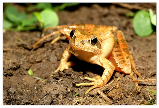 拍了柿子、拍了夕陽,再來就是晚上的重頭戲--去油點草農場夜間觀察,今天要觀察的重點是長腳赤蛙,據說農場內數量不少,這是我第一次看到長腳赤蛙,修長的身形,看起來就覺得很優美,不過今晚所發現的位置都不是太好,不好拍出美美的照片(奇怪,小勛拍的就很美,真是太令人嫉妒了>"<),目前也還沒到長腳赤蛙的繁殖季,所以找到的幾隻青蛙都是用手電筒「掃」出來的,真的不得不佩服他們的眼力,農場內除了青蛙還有許多昆蟲,那晚在農場主人--陳紹忠先生的帶領下,也發現許多好玩的昆蟲,真是非常的感謝,讓今晚的夜間觀察又豐富許多。
