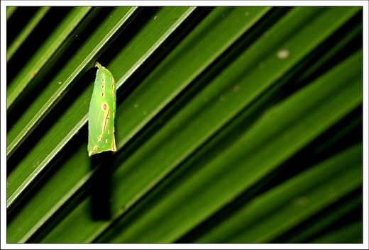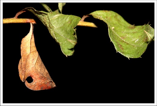 左邊那片枯黃的東東可是流星蛺蝶的蛹,不是枯葉,很神奇的偽裝術啊! |