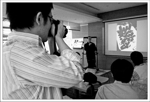 steven的作品不用說,光看就覺得很棒,尤其是又用投影機打在牆上,那種感覺更棒,雖然他是一位頂尖的商業攝影師,但從他的人像作品中總覺有些不同於一般的商業攝影的味道,那種味道..我很喜歡。和steven只有幾面之緣,真的很開心,他能來參加~~^______^