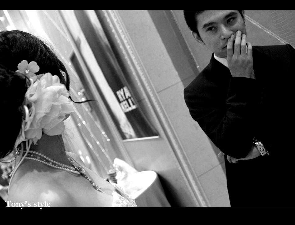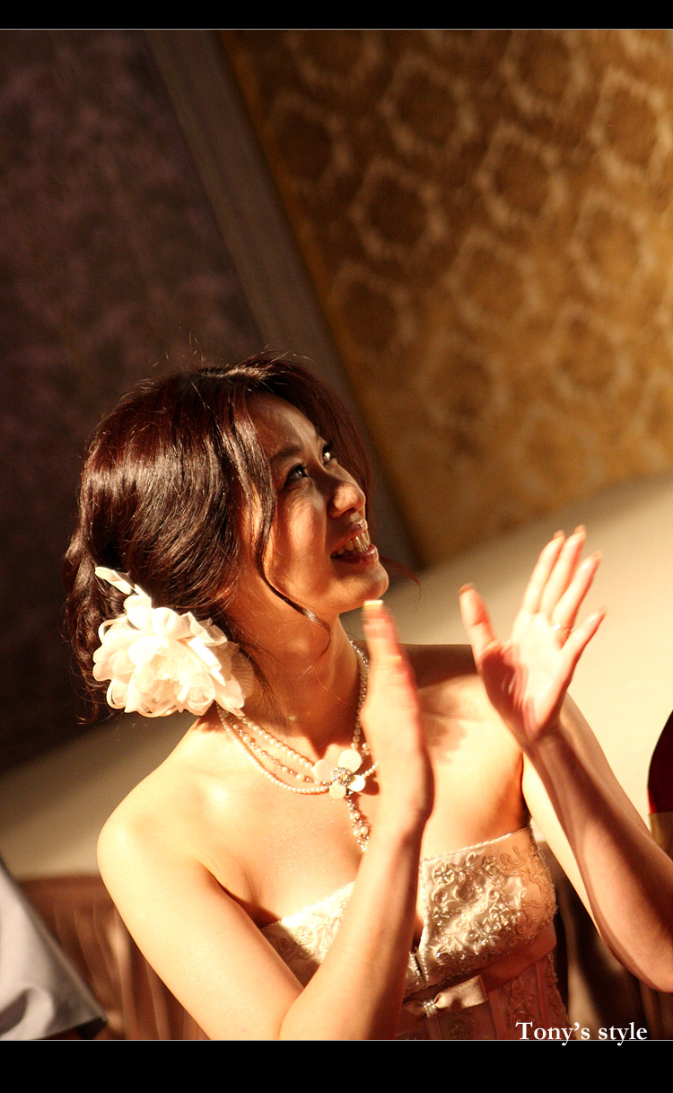 喜宴當天其實是沒我的事,她已有請二個朋友到場幫忙,不過我還是帶著相機去幫她側拍一些照片..,試著拍拍她們喜歡的「另類」攝影^^