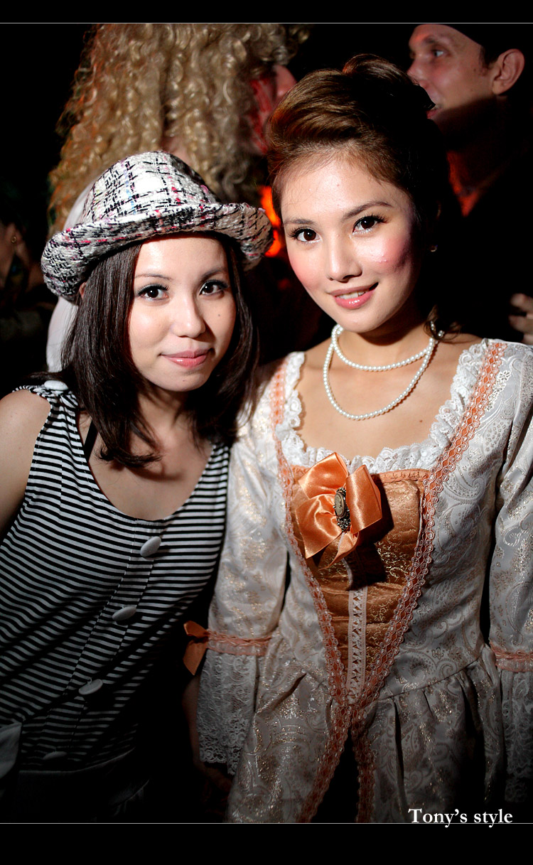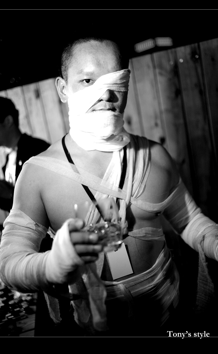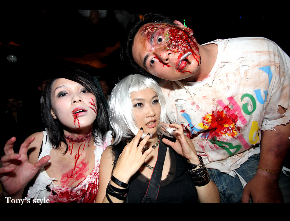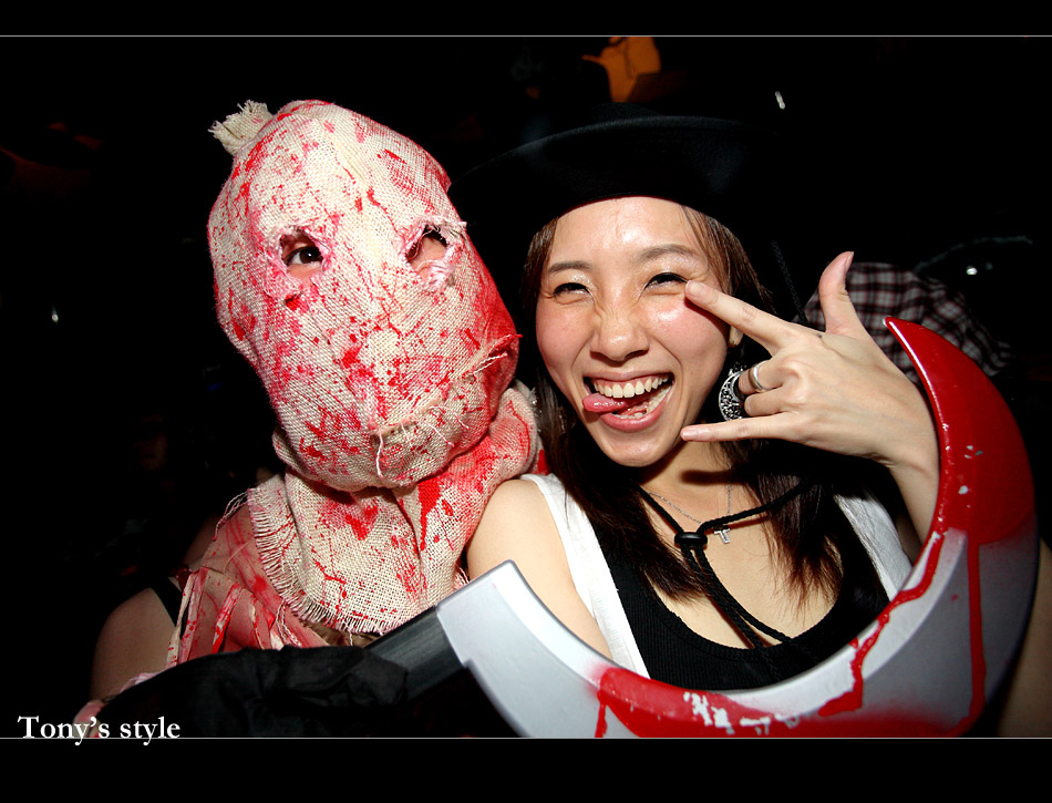 Tony有生以來還是第一次參加這樣的變裝派對,許多客人可真是非常用心打扮,不僅扮鬼..什麼空姐、藝妓、吸血鬼、華麗的歐洲貴婦....,甚至愛德華剪刀手和吃奶嘴包尿布的造型都出現了,現場可真的是一片熱鬧,大家玩的超HIGH的!!且變裝後大家也都很願意上鏡頭,除了穿著公主裝的吧檯調酒師之外...哈哈哈!!