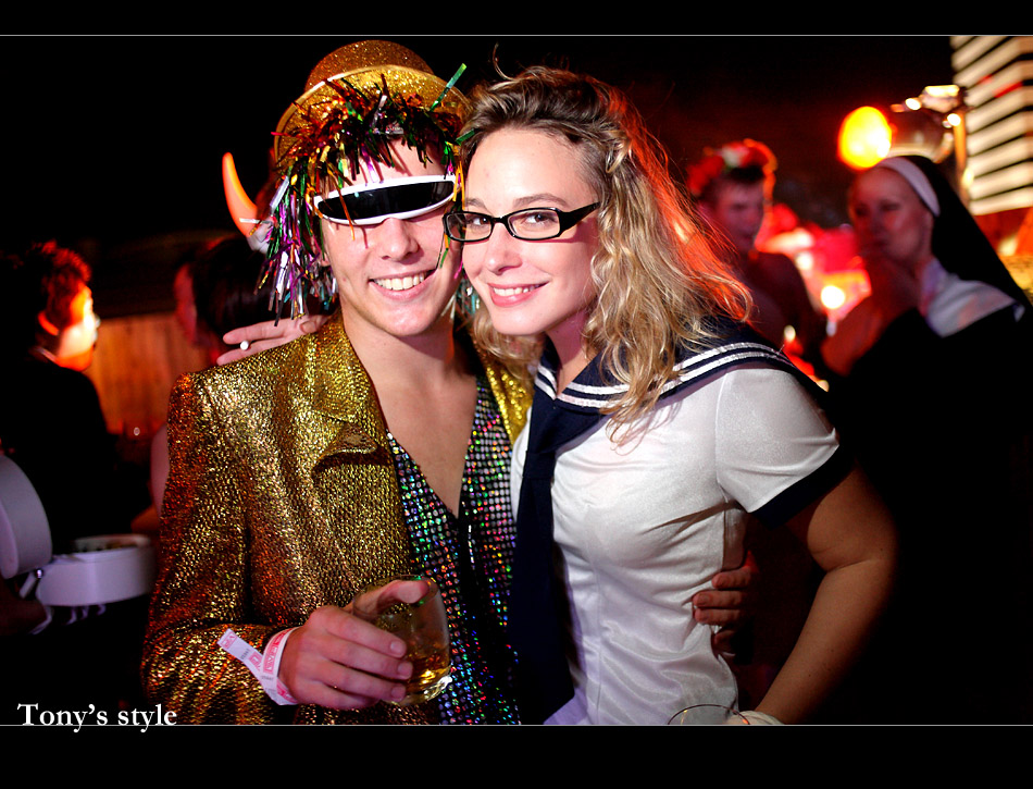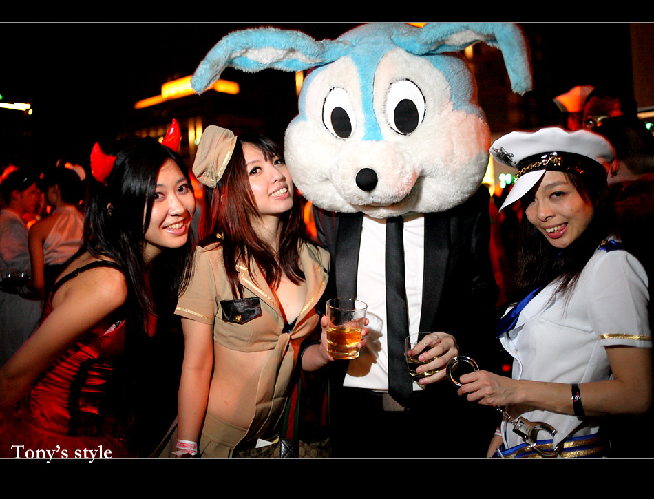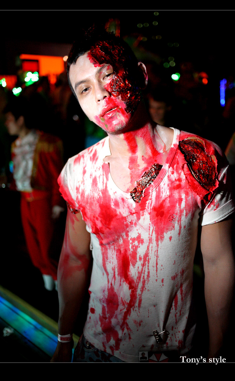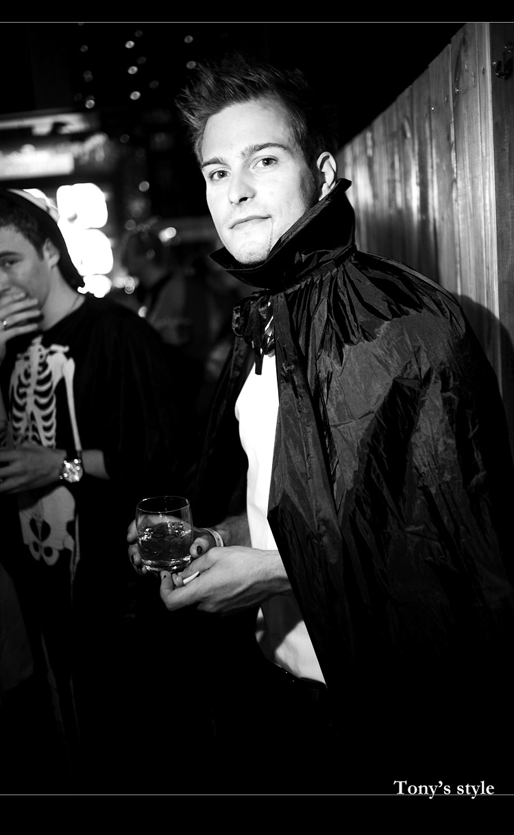 Tony有生以來還是第一次參加這樣的變裝派對,許多客人可真是非常用心打扮,不僅扮鬼..什麼空姐、藝妓、吸血鬼、華麗的歐洲貴婦....,甚至愛德華剪刀手和吃奶嘴包尿布的造型都出現了,現場可真的是一片熱鬧,大家玩的超HIGH的!!且變裝後大家也都很願意上鏡頭,除了穿著公主裝的吧檯調酒師之外...哈哈哈!!