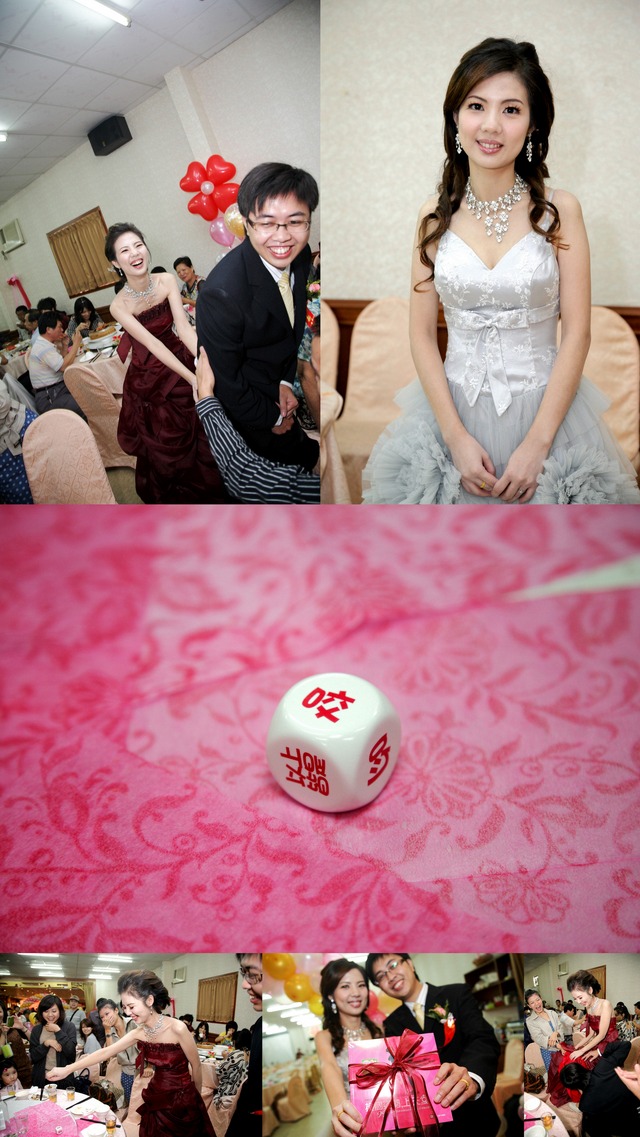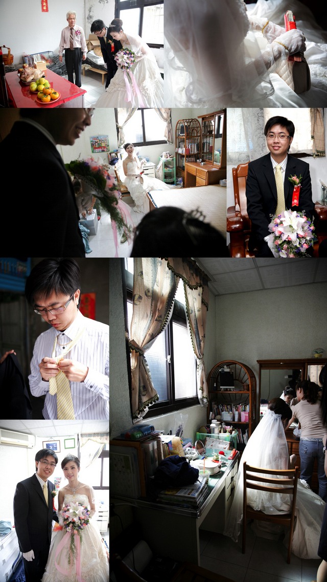 菀苓是凱西的表姐(表妹?) 因為年初幫美麗大方的凱西婚攝.. 年底菀苓結婚也就找我了!! 十月的婚禮菀苓七月就和我預訂了.. 我不是熱門的攝影師,這麼早和我預訂還真有點受寵若驚啊~ 結婚前我問菀苓說有沒要給新郎來個大考驗一下,菀苓說沒有..因為怕他生氣!!真是貼心的小女人.. 而且他們也沒有拜別,只是在建華要把菀苓帶出門前她爸媽和他們 說說祝福的話並送上一個大紅包,僅此而己還是讓菀苓紅了眼框.. 在此恭喜建華和菀苓,也祝福你們幸福快樂!!^__^ ps:建華若有相機敗家的問題可以找我..免費諮詢!!哈~~