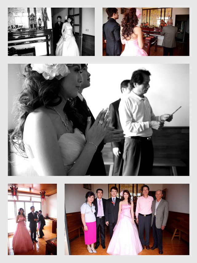 新娘姿惠是愛蜜莉阿姨的女兒.. 因為和愛蜜莉妹妹韻茹的婚禮相隔沒有太遠 她們且對於上次來幫忙的相關人員也覺得不錯! 所以這次不管是婚攝、新祕甚至喜宴時的樂團都是原班人馬!! 當然~愛蜜莉這次一樣擔任大總召,有事不用問新娘,問她就對了~ 雖然這幾次都要從台北南下到豐原,開車比較辛苦些.. 但中南部的人情味真是滿滿滿..,讓人很窩心 真的是要感謝你們的照顧啦!!^___^