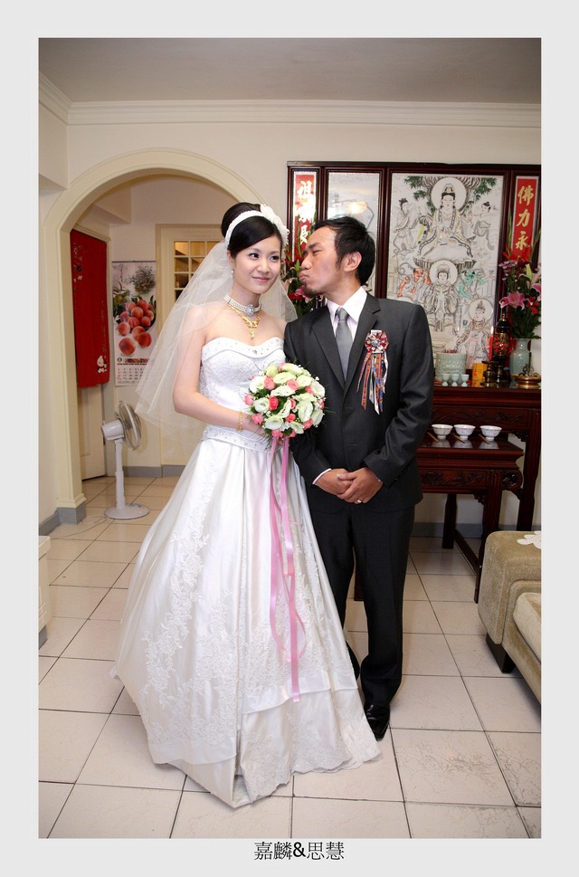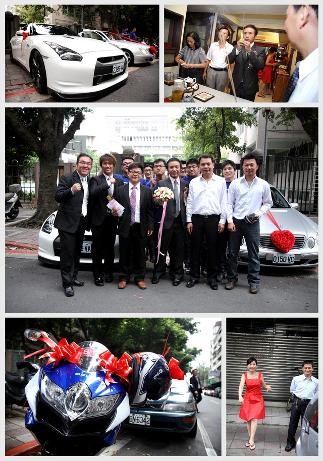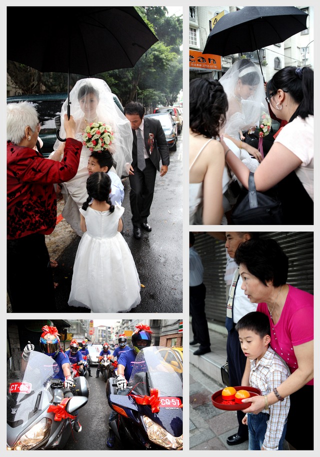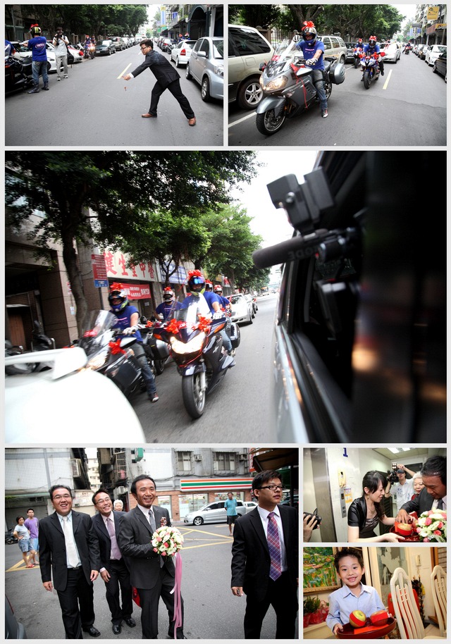 去年12月就幫這二位拍過婚禮,因為我是嘉麟媽媽的同事,嘉麟擔心我結婚若又是全場跟著拍照,就無法好好吃喜宴了,所以想另找攝影師。婚禮攝影真的是挺辛苦的,不僅是當天要跑來跑去,事後的轉檔又非常花時間和精神,不過能幫朋友記錄這珍貴的一刻也是很令人開心的事,所以...這場就由我繼續來攝影!! 因為嘉麟平常就有騎重車,所以這次迎娶的車隊中就有六台重車,可惜今天下起了大雨,讓大家淋的一身溼,不然這迎娶車隊還真是非常引人注目!! 新郎嘉麟搞笑又有個性,而思慧則美麗大方,二位真是郎才女貌,祝福二位長長久久,永遠幸福!! PS1:回程時因為下大雨的關係,就商請思彗的好同學載我回家,沒想到車上聊一聊後發現她是我國中同學的妹妹,這真的是太巧了!! PS2:嘉麟也愛好騎單車,有機會要找出來一起騎,但先決條件是..不可以海放我啊^^