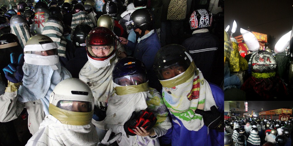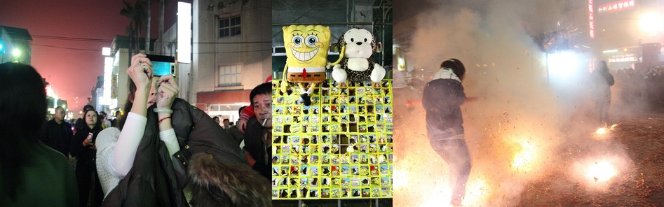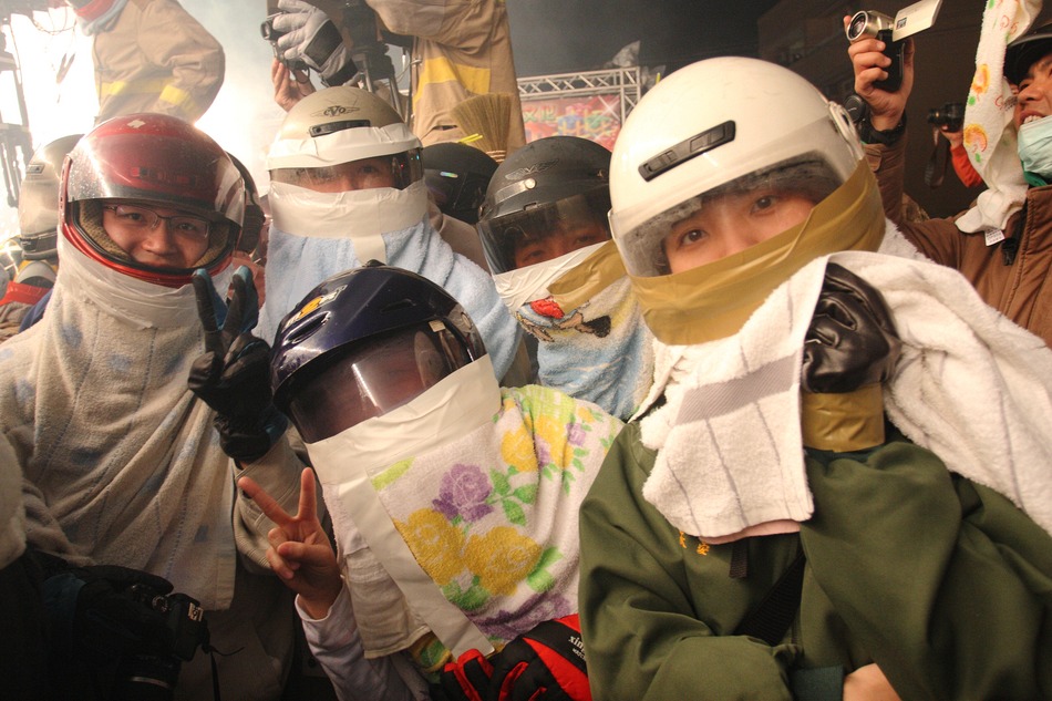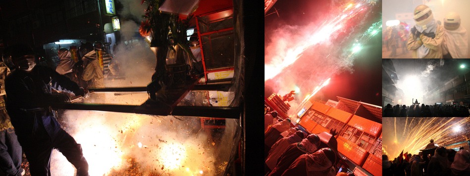上次是一個人獨自前往,今年帶著表弟、表妹和表姐一行六人一起去鹽水體驗蜂炮的威力!! 雖然有上次的經驗,但我這次還是太大意了~ 上次有揹著大包包,所以背部完全感受不到蜂炮的襲擊.. 這次只薄薄的穿二件衣服 站在第一次洗禮一次,就完全受不了了>"< 回家檢視後..大概有近20個黑青加破皮,感覺像是被家暴過一樣= = 不過希望藉由這樣蜂炮的衝衝衝,我今年也可以旺旺旺啦!! 看完鹽水蜂炮,大家都覺得...這比101煙火好看多了,也很難想像在一晚上居然會放這麼的炮,整個鹽水鎮像是瘋了一樣,炮聲不斷,當然遊客也像瘋了一樣,拚命往蜂炮前擠... 「北天燈、南烽炮」(講這個就讓我想到北喬峰、南慕容^^),這二大元宵活動真的十分推薦大家去看看,許多朋友說天燈人很擠,其實我平常也不喜歡人擠人,但過年嘛,就是要熱鬧!!就擠一下吧,而蜂炮危險嗎??當然有一定的危險性,但只要做好防護措施且不站在第一排火線,其實沒有想像中危險啦..,但震撼程度絕對是要親身體驗才能感受到的!! 明年聖雯說再來衝台東炸寒單... 那就來期待明年吧!!^+++++++++^ PS1:最近新買的無敵免還是不忍心讓他上場,帶著老機30D+17-40L衝衝衝。 PS2:三年前拍的不會比今年差,有空可以去回味一下^^ PS3:朋友都會問說這樣相機不會壞嗎??據我拍二次的經驗..,基本若沒有正面被炮打到還有手拿不穩去摔到,應該是不會壞啦,但是..結束後會整個都是炮灰就是了>"<