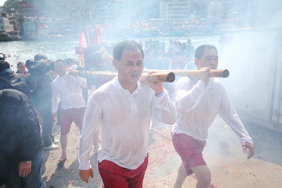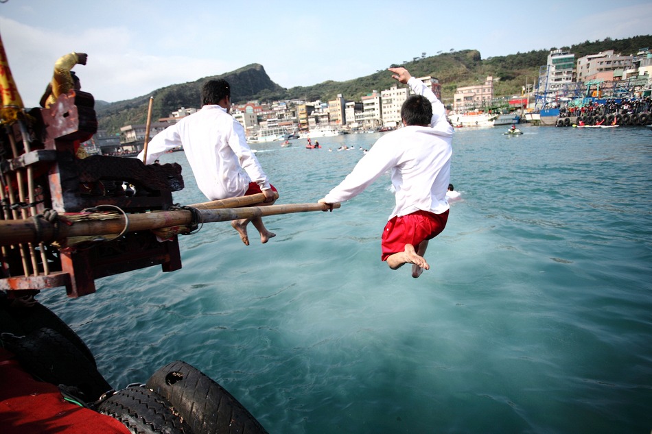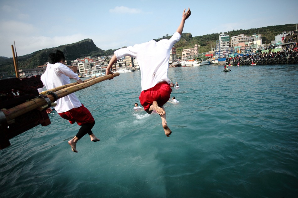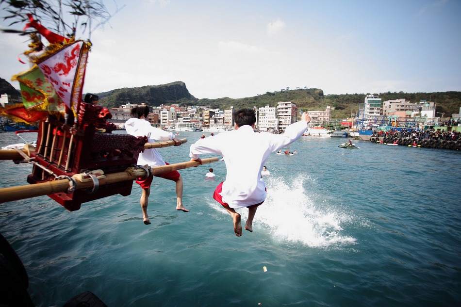 台灣的元宵節除了平溪天燈和鹽水蜂炮之外,北台灣野柳這還有個神明淨港的活動。 相傳百餘年前一艘載著眾多男女老幼的帆船,在野柳外海觸礁沉沒,當地保安宮奉祀的「開漳聖王」顯靈,指示村民划船在港外紮營,守護野柳的清淨與平安。 「開漳聖王」當時還指示要下港巡視,於是由年輕力壯的勇士抬神轎衝入海中「淨港」,此後風調雨順、漁獲豐收;野柳民眾為酬謝神恩,每年元宵節舉辦「神明淨港」儀式,成為當地最具代表性的宗教慶典活動。 這天一早我們就來們野柳,神明淨港前還先有「淨海巡洋」和「漁獲滿艙」這二個儀式,之後才是本日重頭戲 -- 「神明淨港」,一共有八個神轎會衝入海中,每隊勇士都從保安宮前奮力向海中一跳,整個過程相當快相當緊湊,我是第一次來,真的感到非常新鮮,也不得不讚嘆台灣這小小土地上光一個元宵節各地就充滿了不同的文化,能生長在這片土地上真的是很幸福的一件事!!^__^