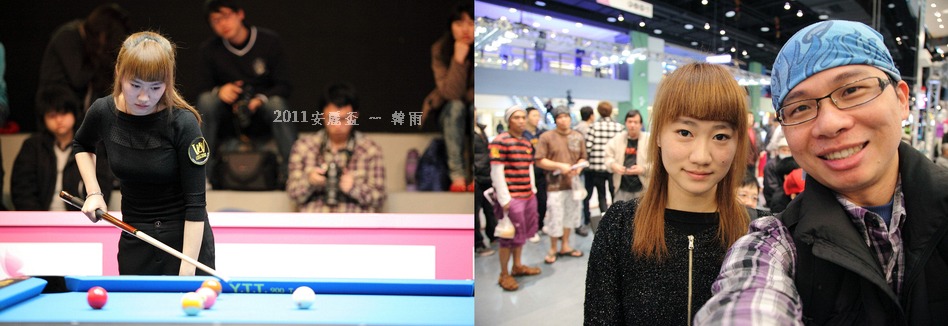 今年安麗盃相當精采 搶進8強的選手都是一時之選 在沒拿下最後一局之前,每位都有翻盤的機會 恭喜金佳映奪得本屆的冠軍,她的球風相當犀利,準度也非常夠,能拿下冠軍絕不是偶爾的 別看她球場上殺氣騰騰,她私底下的可是有點搞笑的:p 而去年的冠軍 - 車由蘭,本來我相當看好她的,在穩定度及準度都有很好的表現,可惜在八強賽中遇上金佳映,以7:9落敗,不過人氣依然超高,要給她簽名真的很田困難= = 整個賽事在3/13圓滿落幕,錯過的朋友就再等一年吧:)