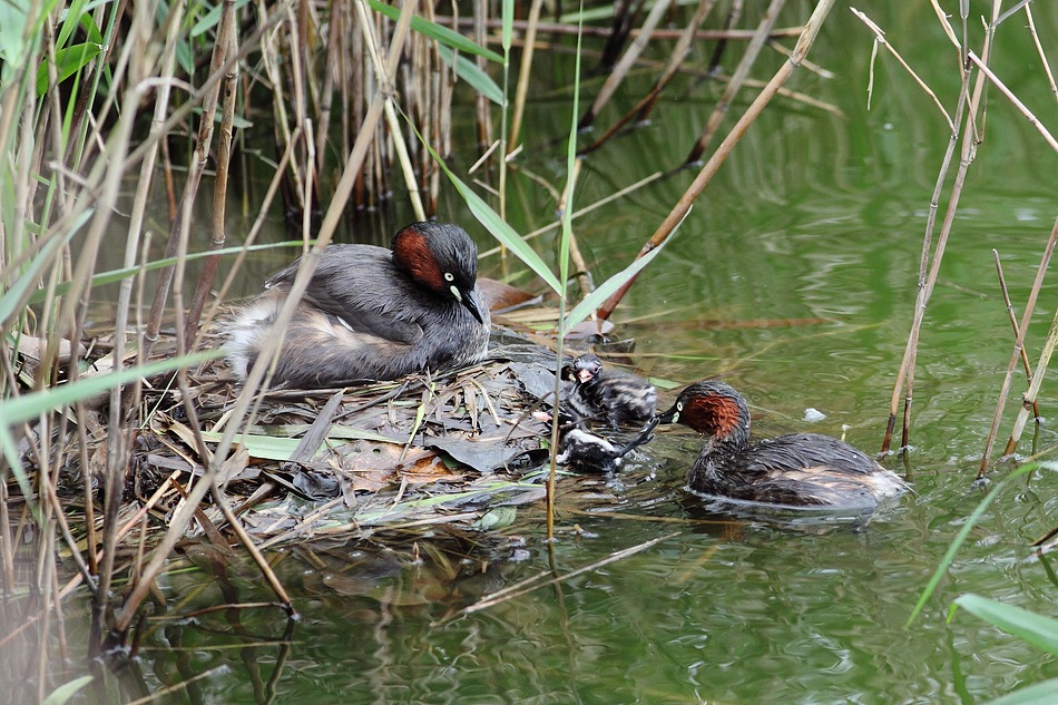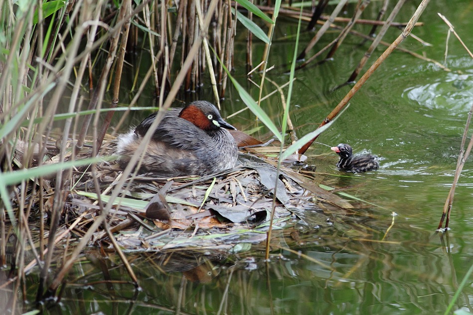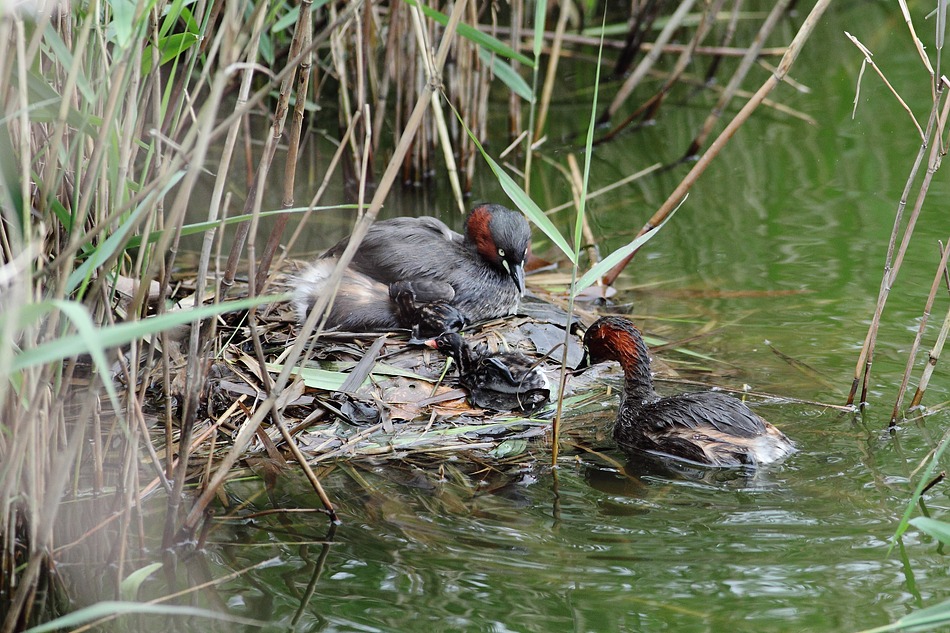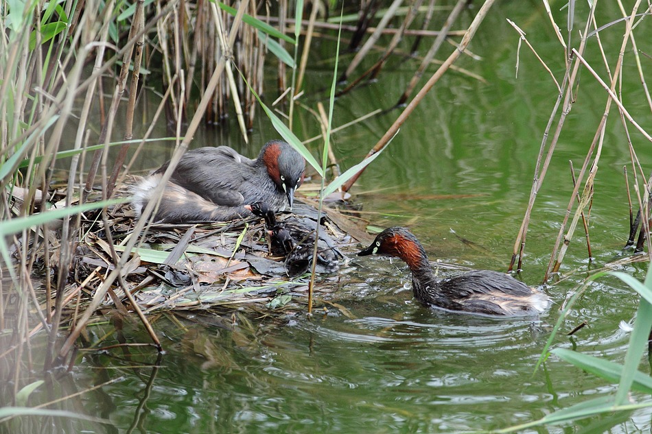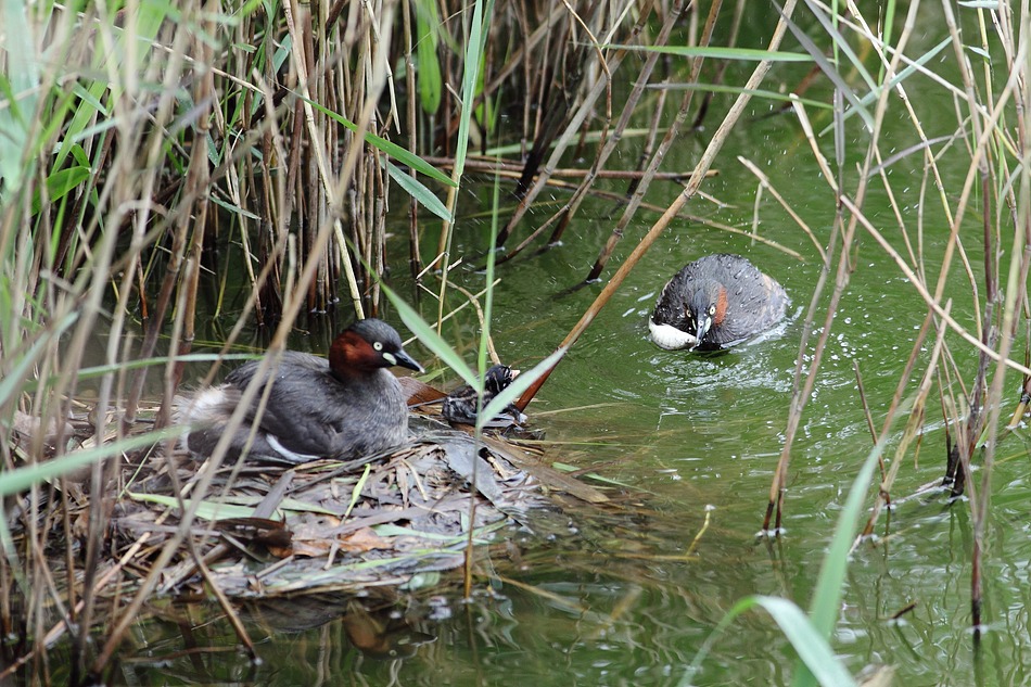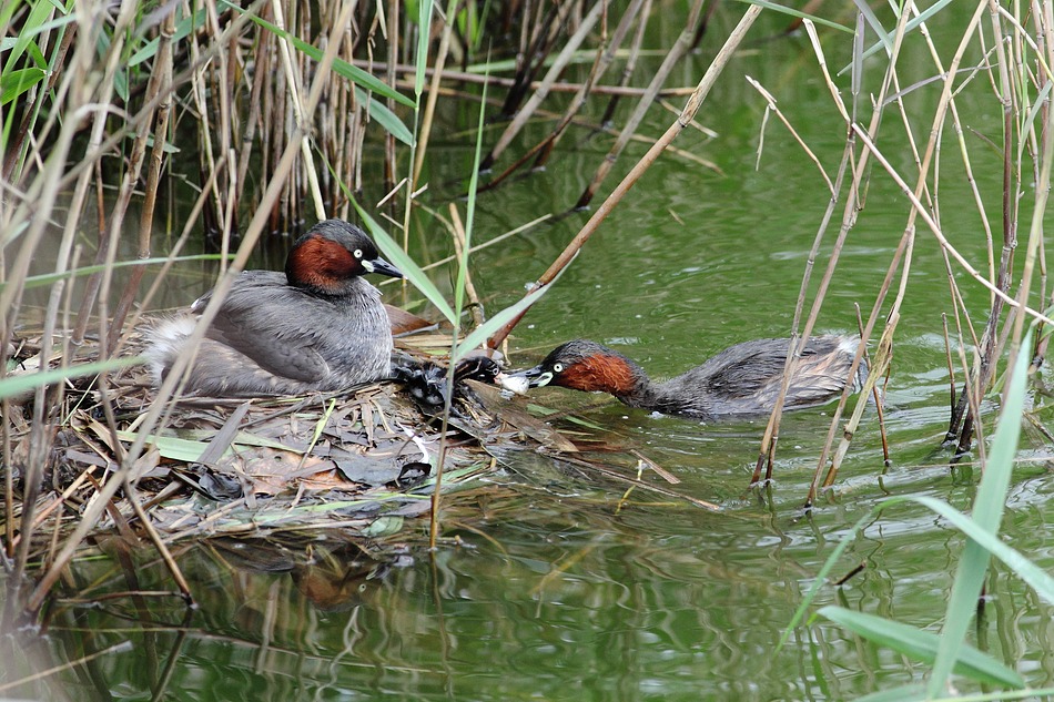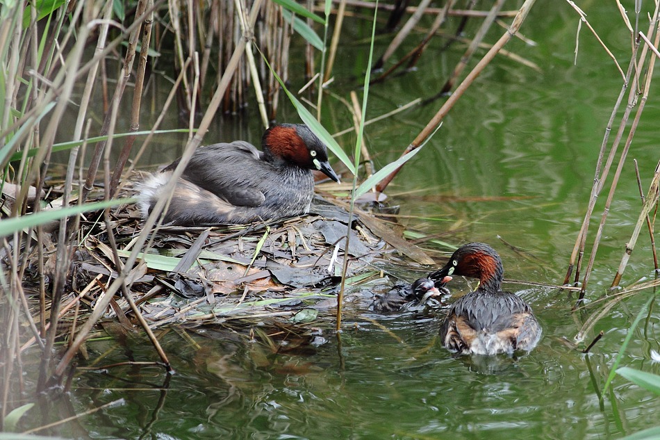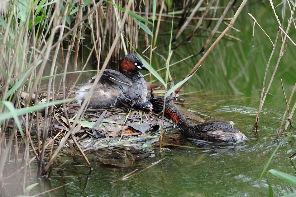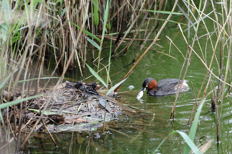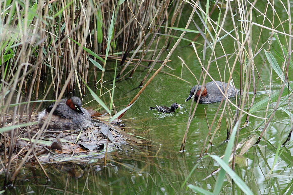 拍了白頭鶴後,老書問我說還想拍什麼.. 想想老書之前拍的黑頸鷿鷉,就問他離白頭鶴遠不遠.. 老書說他棲息的地方就在附近,就開車帶我過去看看!! 不過不管是小鷿鷉還是黑頸鷿鷉都離我好遠,可能拿1200mm都不夠拍,只好放棄,不過老書說他前二天有發現小鷿鷉的巢,且離岸邊不遠,很有機會好好拍到小鷿鷉.. 果然老書說的那個巢只離岸邊約五米左右,我們躲在車上觀察拍照,忽然看到一隻小小的頭從翅膀縫間鑽出來,是小小鷿鷉耶..,小小黑黑的好可愛!! 沒多久另一隻小鷿鷉嘴上刁著小魚回來了,二隻小小鷿鷉爭相去吃,不小心還會跌倒,模樣真的好好笑,不過有時魚太大,小小鷿鷉吃不下,只好由爸媽自己吞下!! 我們觀察約半小時後,小鷿鷉也漸漸有了一些警覺性,只好依依不捨的離開,感謝老書的帶路,讓我看到這溫馨有趣的一面!!^O^ 一開始只有母鳥還是公鳥坐在巢上... 沒想到一下子就露出個小頭來,原來是小小鷿鷉,模樣超可愛的!! 爸爸媽媽帶食物回來了 不過一看就知這魚太大了XDDD 這一窩有二隻小小鷿鷉.. 耶~又有食物了,迫不及待下水去吃!! 吃完好滿足的表情^^ 繼續窩到溫暖的翅膀下~ 跟著去散步~ 食物又來了,要趕快喔,手腳慢的吃不到XDDD 衝太快的結果就是...跌倒!!!看到這一幕我內心真是快笑翻了^^ 繼續搶喔~,大家輪流翻倒XDDD 爸爸~~這隻魚太大吃不下去啦XDDD