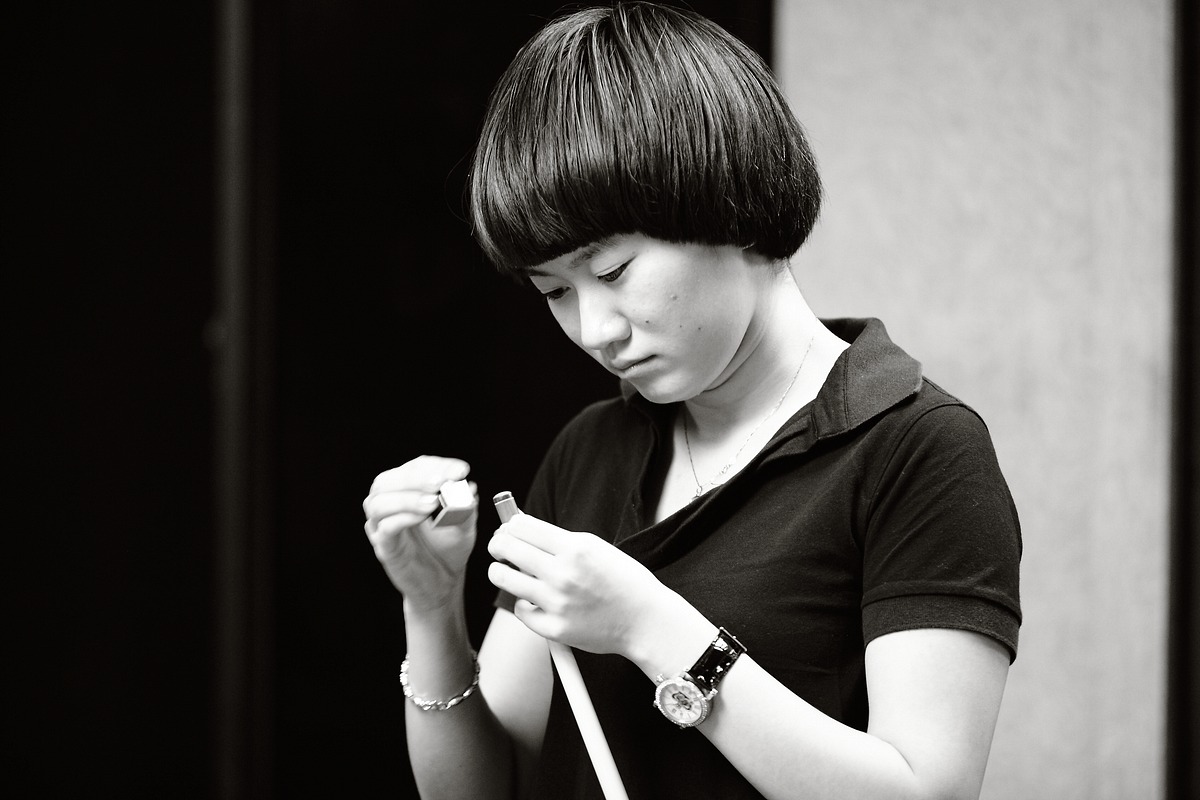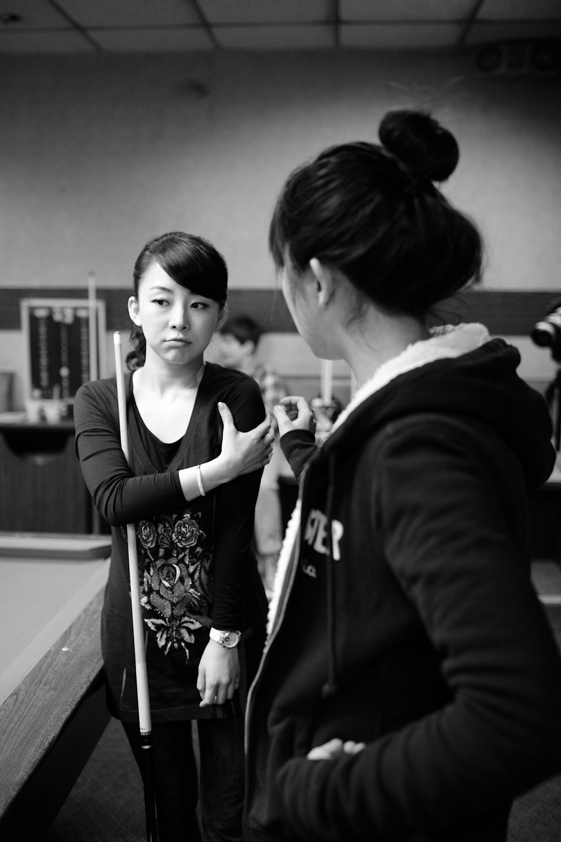 拍了多年的安麗盃後,每年都是拍攝比賽時的作品~ 幾年下來總會想要如何拍出不一樣的畫面。 不過想進步卻又很懶惰進修,這二年畫面上除了是因為器材上的更新而進步,不然好像沒什麼突破>"< 例如今年多了一隻456,若屆時在快門還許可的範圍下,我想也許可以拍些不一樣的特寫照!!^^ 而除了拍比賽的場面外,我這二年一直有想拍球場之外的球員 球員也是人,也是可愛的小妹妹 除了比賽、除了練球外,我想一定有很多畫面可以捕捉 不過台灣的選手教練我都不認識,也不熟,只能作罷!!>"< 那厚臉皮的mail去問問我的nine ball偶像 --大陸九球天后潘曉婷 她之前曾稱讚過我的照片好看!! 看看她願不願意給我近距離的拍攝~ 沒想到...她一口就答應了*o* 這真是太令人開心了(轉圈) 不過~這消息我一直放在心上,不敢和大家分享(炫耀) 因為~~我怕到時只是夢一場,那就糗了T____T 隨著比賽時間接近,我在開賽一週前也再度發MAIL給潘曉婷,希望她還記得拍照的事~ 不過三天過去了,沒有任何的回應~/_\ 我心想,也許是曉婷在忙吧!!也許是當時不好意拒絕我吧~>"< 而就在星期二早上,我忽然收到一封陌生的簡訊:「Hi Tony,我今天下午在球聖練球」 呀呼~這應該是曉婷發來的吧^++++++^ 考慮30分鐘後決定請假來去拍^O^ 這是第一次私底下近距離的拍攝自己的偶像 老實說真是有些緊張.. 雖然自己一直想拍這樣的題材,但這樣的拍攝方式卻是頭遭!! 35焦段可以取得較廣的畫面,但當彼此不熟悉時,35mm可能會拍攝人較大的壓力,塵封許久的50 1.4應該拿出來多練習了~ 這次拍攝的成果只能說是差強人意XD 希望明年還能有機會再次補捉曉婷最自然最漂亮的一面!!^____^ PS:聽說她最愛去逛街,本來想說是否有機會補捉她去逛街的樣子,可惜這次時間並不允許,只好等待下回吧!!T___T PS2:詢問一下潘曉婷對這次的拍法覺得如何??她說..還不錯,但更喜歡比賽場上的照片,因為..私底下幾乎沒化什麼妝...Orz(我想是我的角度和構圖還是不夠好啦) 這一次去西門町球聖,要從樓下上樓時,真覺得這裡是要辦國際大型比賽的會外賽場地嗎??>"< 比賽場上曉婷總是一臉嚴肅,但私底下的曉婷相當親切!! 在不妨礙曉婷的練球下,我儘量靠近來拍攝!! 認真排球的曉婷 覺得手有點痠痠的俏皮曉婷 金佳映和潘曉婷二位是好朋友(我想是英雄惜英雄吧!!) 趁這機會我趕緊拿出照片來給她簽名!! 曉婷也幫我推銷一下,稱讚我的技術好XDDDD 曉婷請金佳映試一下她的衝球桿及她父親新研發的巧克 我很喜歡這張思考中的曉婷..,題外話,這天在球館理曉婷直喊熱,我就隨口建議說把長袖脫下來就好了,不過再看一下外面這件T恤,若是只穿這件打球,那麼觀眾就很有眼福了XDDDD 這個巧克還有個精美的盒子!! 私底下也是很可愛的金佳映~(球場上的金佳映超酷的XDDD) 認真打球的金佳映就是這樣的表情 難得能補捉到笑開的曉婷!! 俏皮的曉婷 開心的曉婷 周婕妤也是潘曉婷的好朋友..,在這先恭喜她再度拿下安麗盃的冠軍!! 曉婷的衝球爆發力十足~~ 在遠遠練球的付小芳 頂著瑪莉兄弟蘑菇頭的韓雨(她這個顆蘑菇頭超卡哇依的) 我當時有問說在比賽時我們直線和你們對上的拍攝方式會不會是種干擾,曉婷說當她的注意力都在球和洞口時,以外的事就不會去注意到了,不過當現場很安靜時,有些相機高速連拍的聲音真的就會很清楚,有時不得不先暫停出桿一下!! 認真排球的潘曉婷 不得不說潘曉婷球技好,人漂亮、比賽時抗壓性又高!!真是不可多得的好選手*.* 潘曉婷的手..也很漂亮*.* 很可愛的巧克 這是曉婷球袋上的照片,不過這張我認不出來是她XDDD 觀察力不夠細微的我開始胡亂拍了XDDD 這天在球聖還有在比會外賽,所以可以看到不少選手!! 劉莎莎 割了雙眼皮加上會打扮的陳思明!!(翻翻去年的照片,真的和今年差很多~) 付小芳 因為這次中國來了七位選手,就全部一起行動,也託曉婷的關係,和這幾位選手也多熟悉一些!! 幾個小女生聚在一起就不像球員了,嘰嘰喳喳的...很可愛!! 曉婷要回去休息了,今天的拍攝就到此為止,謝謝曉婷給我這個機會!!^_____^ 拍了幾張陳思明的照片,這張是她唯一喜歡的!! 賽前我很看好她奪冠的,但很可惜的止於四強賽!! 菲律賓 Rubilen Amit 盧比倫•艾咪 新加坡 Zeet-Huey Chai 蔡志蔚 笑開懷的韓雨 認真的陳思明 正在打會外賽的林筱琦(奇怪,她去年不是有打進前8強嗎?為什麼今年還要打會外賽)