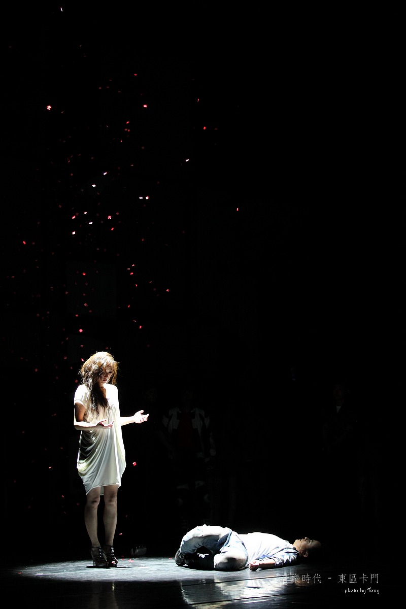 遲交許久的東區卡門劇照終於交功課了 感謝小鮑的包容啦~ 這次演出雖然不如以往時代三部曲精采 但面對音樂時代敢於創新的精神還是要給與正面的鼓勵於肯定 只是向來對服裝都很要求的音樂時代,這次真的讓我跌破眼鏡 既然整個場景都是圍繞在現代的東區夜店 那麼也要好好參考一下現在東區辣妹的穿著 小洋裝真的不是夜店主流裝啊XDDDD 嗚~~還我夜店辣妹啦>"< PS:這次東區卡門有不少新面孔出現,也許在歌聲上還不盡滿意,但在表演的強度上都讓人有為之一亮的感覺,期待這些新面孔未來有更精采的演出。