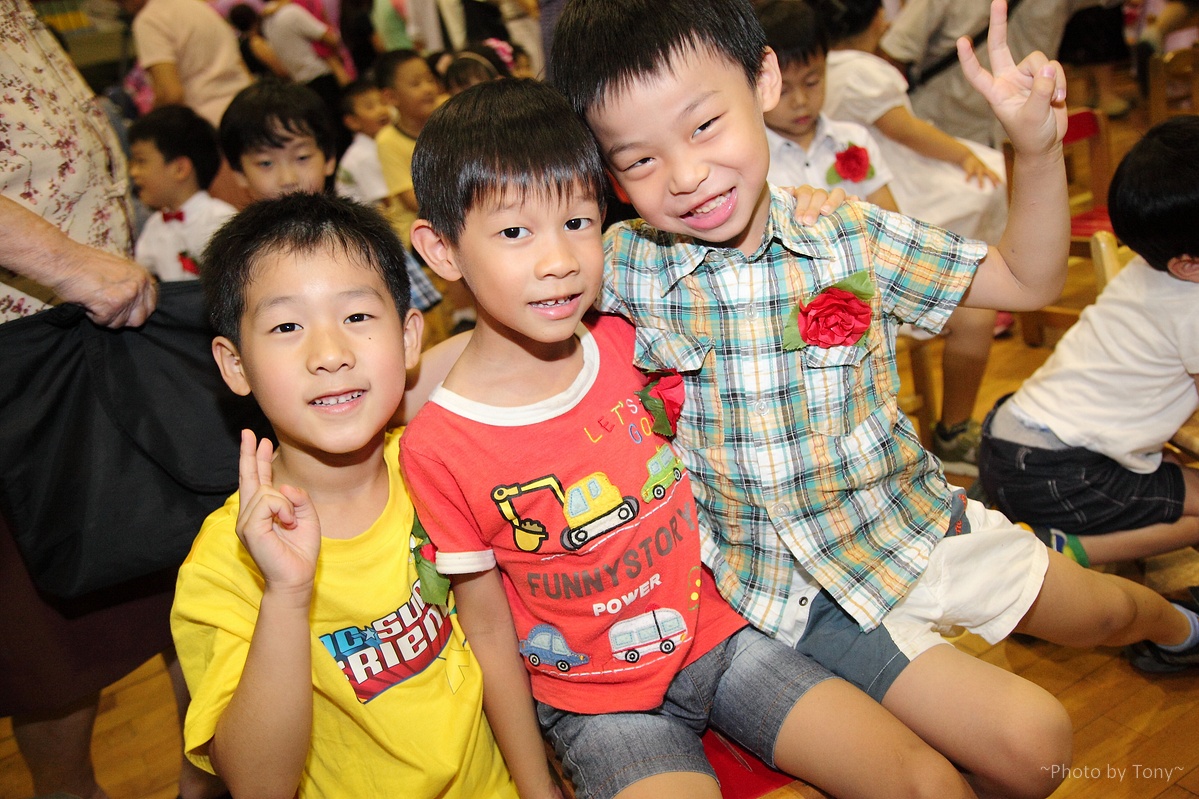 一轉眼小羊咩會跑會跳了~而小羊也畢業了!! 這個暑假後就要正式上一年級了.. 我安親班的費用也要更多了Orz(大班可以上到下午四點,小一反而只有星期二上到四點,真的很奇怪,是故意要給安親班賺的嗎??XDD) 才大班的小羊不知道畢業的感傷,這天顯得還特別興奮,他最喜歡的女生是不同校的,以後大概見不到了,不過當老爸的我有幫他拍了很多照片,以後可以好好回憶^^