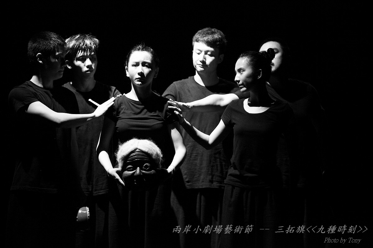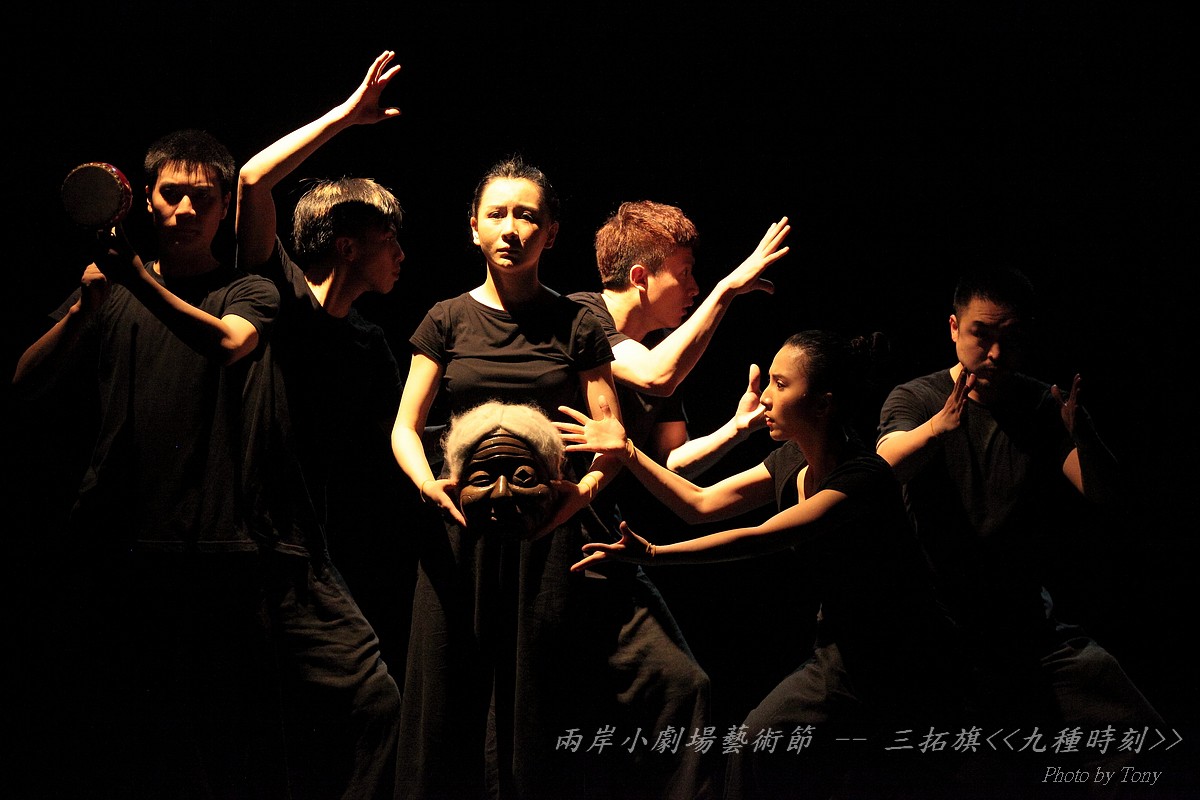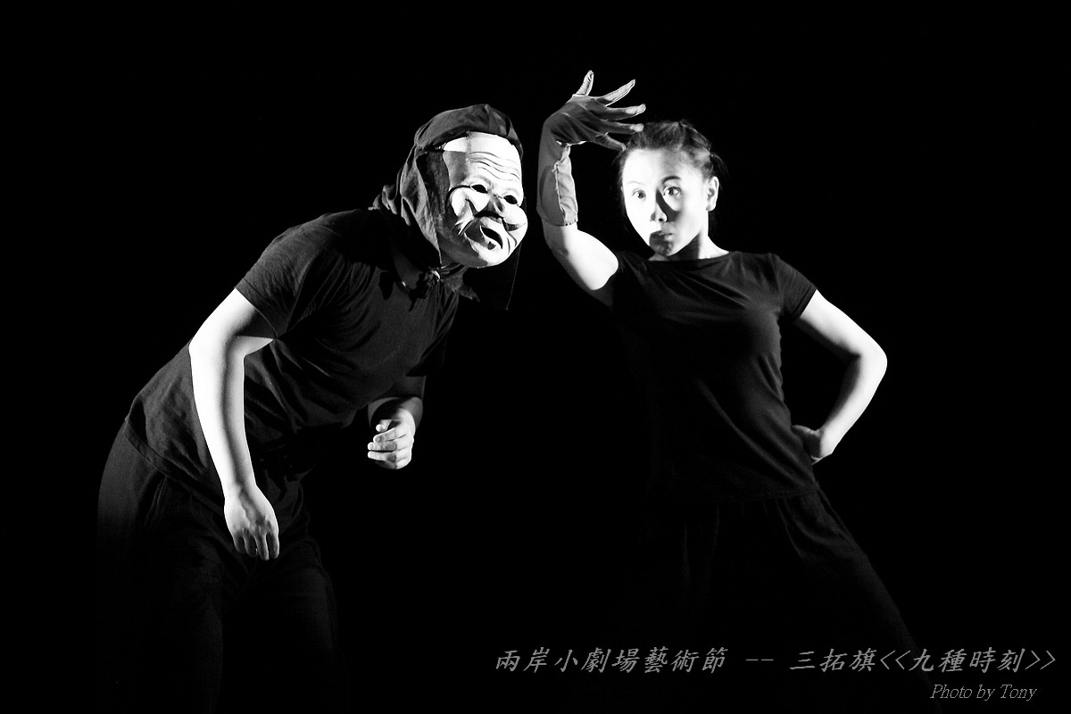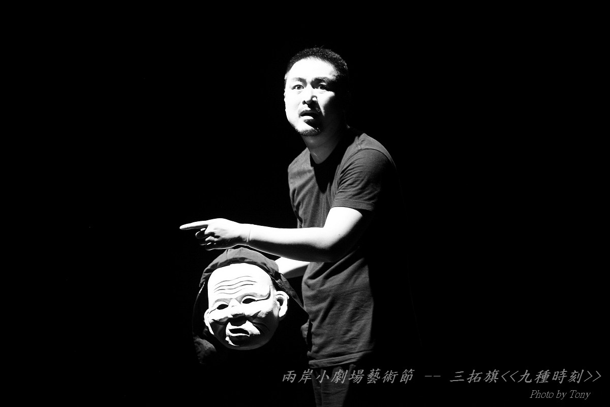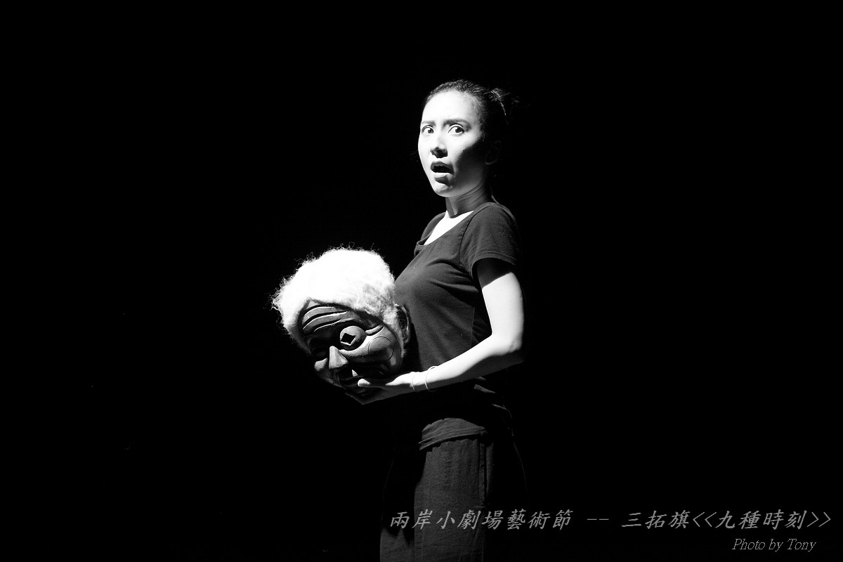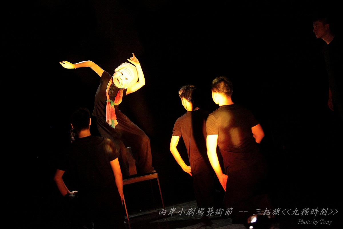 北京三拓旗在2013年來表演的「水生」令我印象十分深刻,所以今年再來台演出「九種時刻」時,就讓我十分期待~ 老實說拍攝這一場時,我...看不大懂,有點失落XDD 但對於幾幕影像和演員的肢體手法還是十分讚嘆! 隔天,我決定放下相機好好用心再看一次 而演出前透過PEGGY的介紹也和三拓旗的導演趙淼小聊了一下,他說這劇改編了很多次,以前較偏向「現代舞」的方式,而且以往演員們都沒有載面具,這次是第一次嚐試這樣的表演,每個故事的主角都戴上面具來詮釋。 「九種時刻」不像「水生」就是去描述一個完整的故事,他表達的是一種現象,所以我看到是什麼,就是什麼..,也不用特別去要了解或是懂得導演想要表達的意念,不拘泥一定看的多懂多了解後,吸收的反而更多!! 而戴上面具的主角和其它臉部表情生動的演員,呈現了強烈的對比,我覺得是一個很好的手法,也有很好的效果!! 劇後我問老婆說比較喜歡「水生」還是「九種時刻」,老婆說二齣戲很不一樣,很難比。 的確,很難比...,兩種類型不太一樣!! 但都好看!! PS:第一次心中有太多疑問,所以不少時間快門沒按下去,再看第二次時,覺得第一次拍的錯過不少畫面,採排想拍的好,事前還是得多了解過才能拍的比較好啊!! 裡面的演員中,我最喜歡史妍,肢體和臉部表情真的超棒,我想我現在是她的小粉絲了:P ------------------------------------------------------- 網路上搜尋到這篇心得我覺得說的很好,給大家參考看看!!(因為我很不會說心得XDD) 心得 三拓旗劇團《九種時刻》by Shinoro 節錄一小段 「「如果我們都正在逝去,如果這首詩就是我要失去的全部,我們豈不是都該感傷?」 戲結束後、和導演結束對話後,心底響起了鯨向海的這首詩句, 以「失去」為命題。 雖然我也得承認這齣劇我沒能百分百看懂。 直到整齣戲過了三分之一,我才找到對我而言最適合觀賞這齣劇的角度, 無須過於執著意義、無須過於勉強自己將所見的一切轉化為文字, 只要相信自己的直覺、相信自己想像與所接收到的,就夠了。 無須套用過去看戲的種種習慣, 因為這是完全不一樣的戲,跳脫語言的框架、融入有如現代舞般的意念,形體戲劇。」