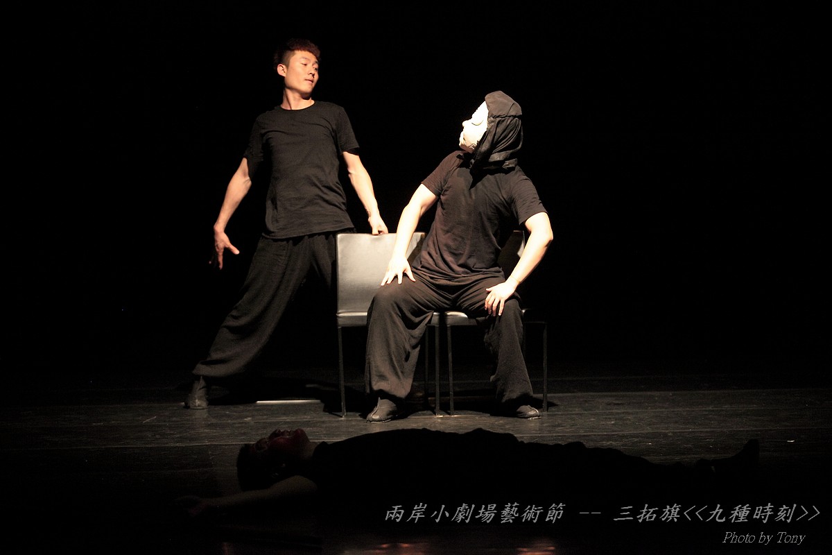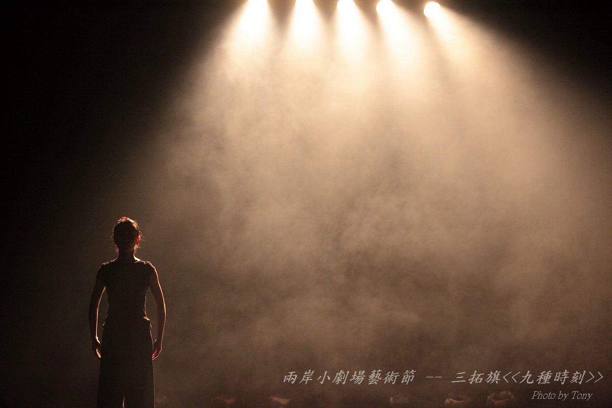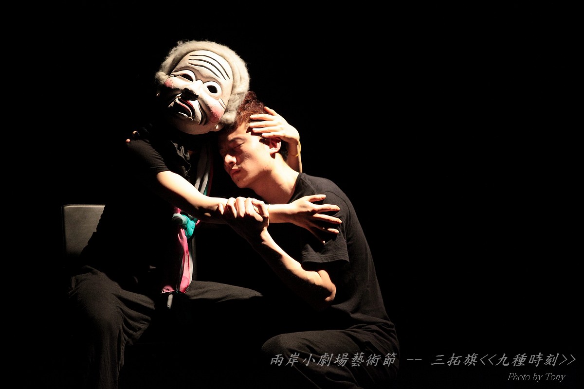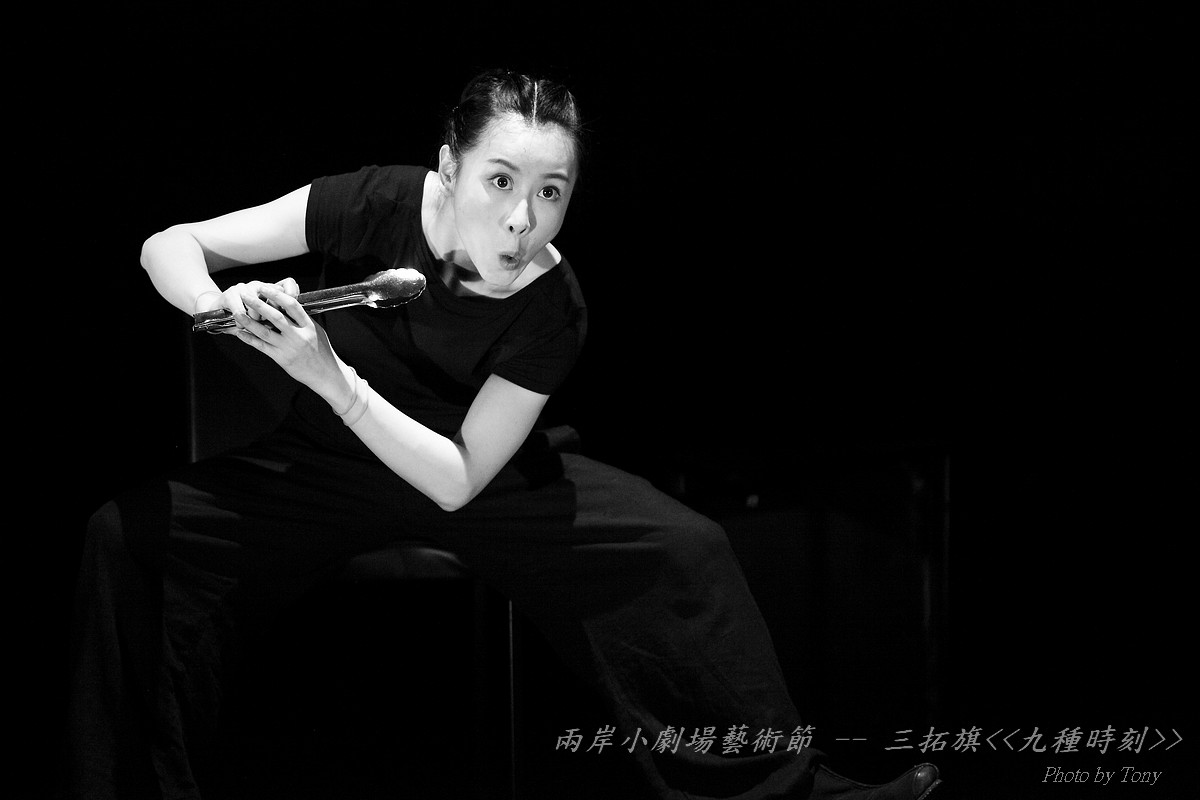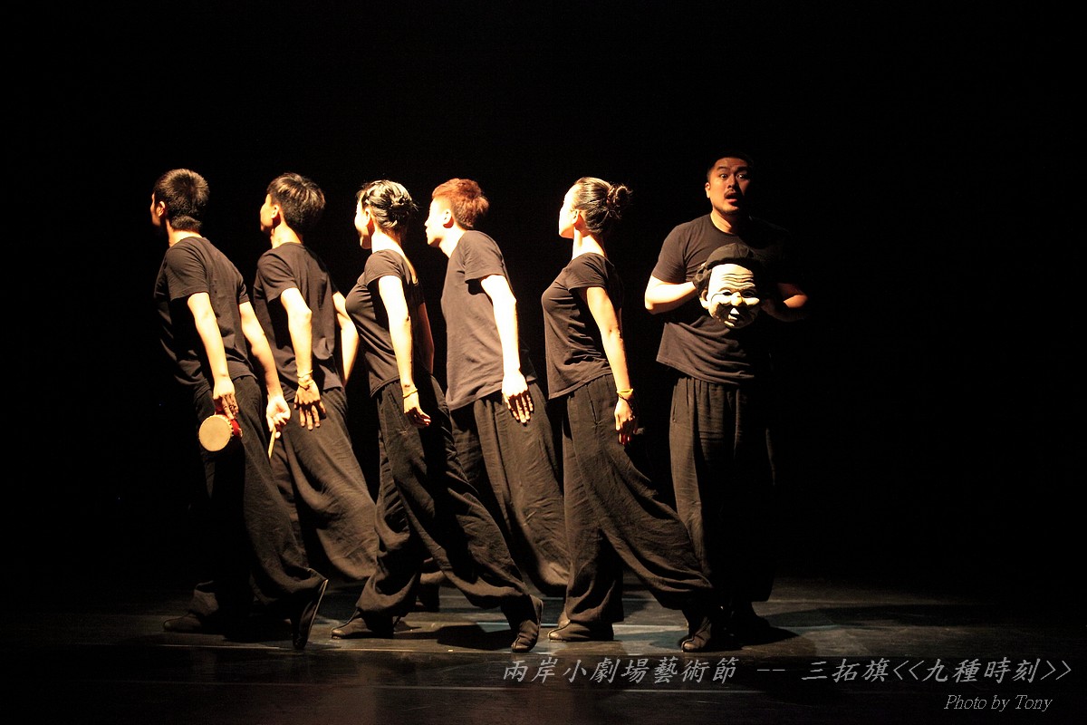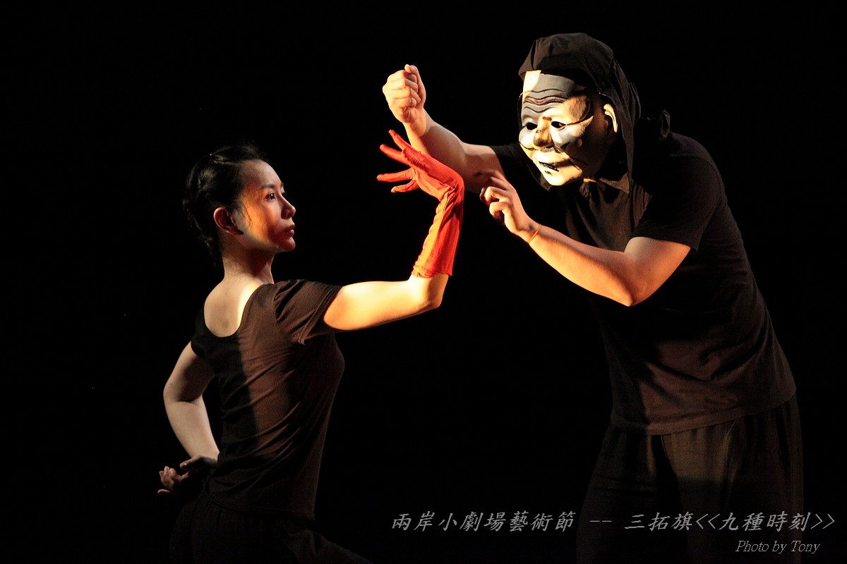 北京三拓旗在2013年來表演的「水生」令我印象十分深刻,所以今年再來台演出「九種時刻」時,就讓我十分期待~ 老實說拍攝這一場時,我...看不大懂,有點失落XDD 但對於幾幕影像和演員的肢體手法還是十分讚嘆! 隔天,我決定放下相機好好用心再看一次 而演出前透過PEGGY的介紹也和三拓旗的導演趙淼小聊了一下,他說這劇改編了很多次,以前較偏向「現代舞」的方式,而且以往演員們都沒有載面具,這次是第一次嚐試這樣的表演,每個故事的主角都戴上面具來詮釋。 「九種時刻」不像「水生」就是去描述一個完整的故事,他表達的是一種現象,所以我看到是什麼,就是什麼..,也不用特別去要了解或是懂得導演想要表達的意念,不拘泥一定看的多懂多了解後,吸收的反而更多!! 而戴上面具的主角和其它臉部表情生動的演員,呈現了強烈的對比,我覺得是一個很好的手法,也有很好的效果!! 劇後我問老婆說比較喜歡「水生」還是「九種時刻」,老婆說二齣戲很不一樣,很難比。 的確,很難比...,兩種類型不太一樣!! 但都好看!! PS:第一次心中有太多疑問,所以不少時間快門沒按下去,再看第二次時,覺得第一次拍的錯過不少畫面,採排想拍的好,事前還是得多了解過才能拍的比較好啊!! 裡面的演員中,我最喜歡史妍,肢體和臉部表情真的超棒,我想我現在是她的小粉絲了:P ------------------------------------------------------- 網路上搜尋到這篇心得我覺得說的很好,給大家參考看看!!(因為我很不會說心得XDD) 心得 三拓旗劇團《九種時刻》by Shinoro 節錄一小段 「「如果我們都正在逝去,如果這首詩就是我要失去的全部,我們豈不是都該感傷?」 戲結束後、和導演結束對話後,心底響起了鯨向海的這首詩句, 以「失去」為命題。 雖然我也得承認這齣劇我沒能百分百看懂。 直到整齣戲過了三分之一,我才找到對我而言最適合觀賞這齣劇的角度, 無須過於執著意義、無須過於勉強自己將所見的一切轉化為文字, 只要相信自己的直覺、相信自己想像與所接收到的,就夠了。 無須套用過去看戲的種種習慣, 因為這是完全不一樣的戲,跳脫語言的框架、融入有如現代舞般的意念,形體戲劇。」