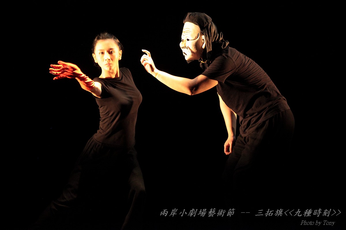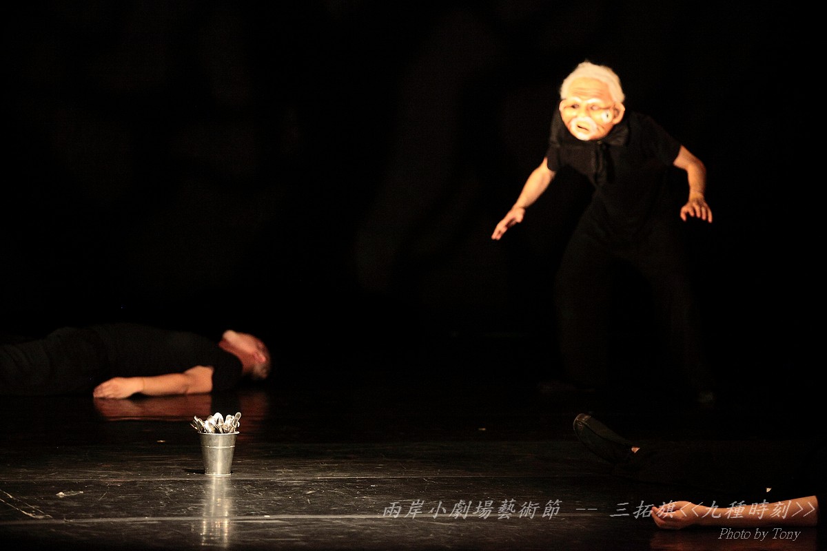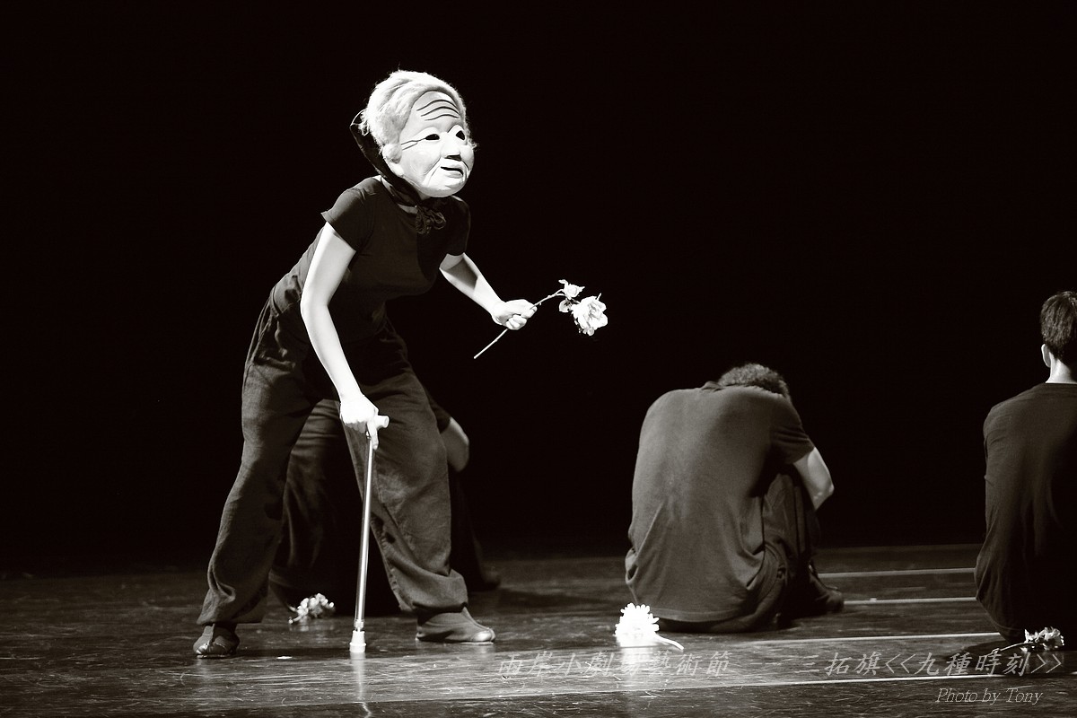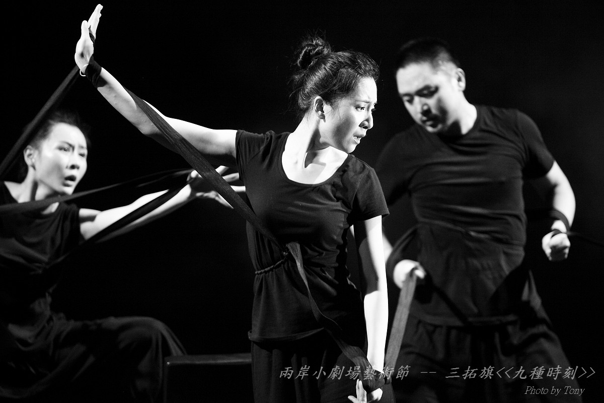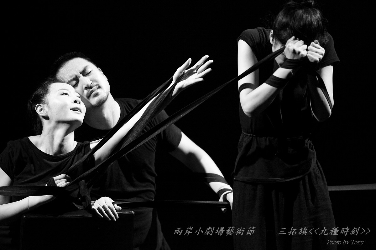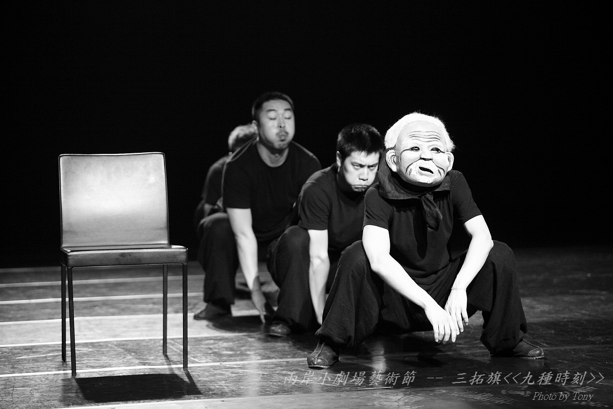 北京三拓旗在2013年來表演的「水生」令我印象十分深刻,所以今年再來台演出「九種時刻」時,就讓我十分期待~ 老實說拍攝這一場時,我...看不大懂,有點失落XDD 但對於幾幕影像和演員的肢體手法還是十分讚嘆! 隔天,我決定放下相機好好用心再看一次 而演出前透過PEGGY的介紹也和三拓旗的導演趙淼小聊了一下,他說這劇改編了很多次,以前較偏向「現代舞」的方式,而且以往演員們都沒有載面具,這次是第一次嚐試這樣的表演,每個故事的主角都戴上面具來詮釋。 「九種時刻」不像「水生」就是去描述一個完整的故事,他表達的是一種現象,所以我看到是什麼,就是什麼..,也不用特別去要了解或是懂得導演想要表達的意念,不拘泥一定看的多懂多了解後,吸收的反而更多!! 而戴上面具的主角和其它臉部表情生動的演員,呈現了強烈的對比,我覺得是一個很好的手法,也有很好的效果!! 劇後我問老婆說比較喜歡「水生」還是「九種時刻」,老婆說二齣戲很不一樣,很難比。 的確,很難比...,兩種類型不太一樣!! 但都好看!! PS:第一次心中有太多疑問,所以不少時間快門沒按下去,再看第二次時,覺得第一次拍的錯過不少畫面,採排想拍的好,事前還是得多了解過才能拍的比較好啊!! 裡面的演員中,我最喜歡史妍,肢體和臉部表情真的超棒,我想我現在是她的小粉絲了:P ------------------------------------------------------- 網路上搜尋到這篇心得我覺得說的很好,給大家參考看看!!(因為我很不會說心得XDD) 心得 三拓旗劇團《九種時刻》by Shinoro 節錄一小段 「「如果我們都正在逝去,如果這首詩就是我要失去的全部,我們豈不是都該感傷?」 戲結束後、和導演結束對話後,心底響起了鯨向海的這首詩句, 以「失去」為命題。 雖然我也得承認這齣劇我沒能百分百看懂。 直到整齣戲過了三分之一,我才找到對我而言最適合觀賞這齣劇的角度, 無須過於執著意義、無須過於勉強自己將所見的一切轉化為文字, 只要相信自己的直覺、相信自己想像與所接收到的,就夠了。 無須套用過去看戲的種種習慣, 因為這是完全不一樣的戲,跳脫語言的框架、融入有如現代舞般的意念,形體戲劇。」