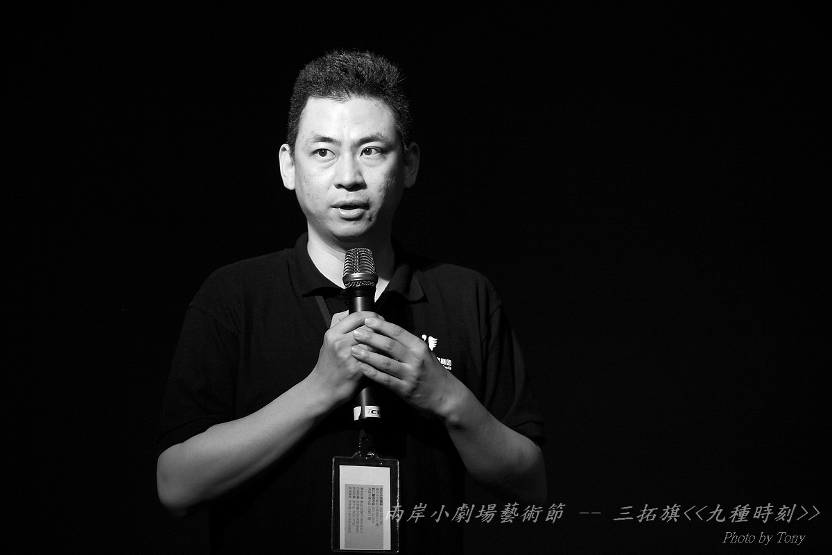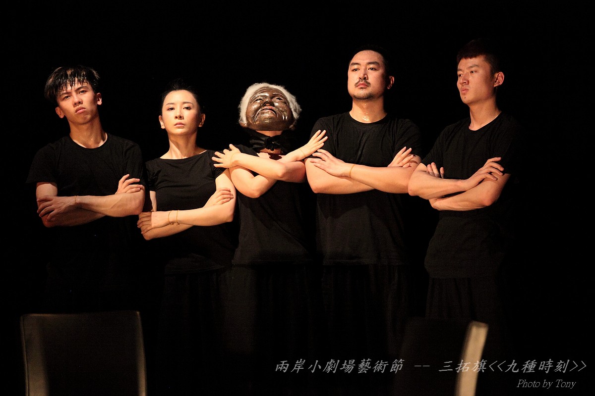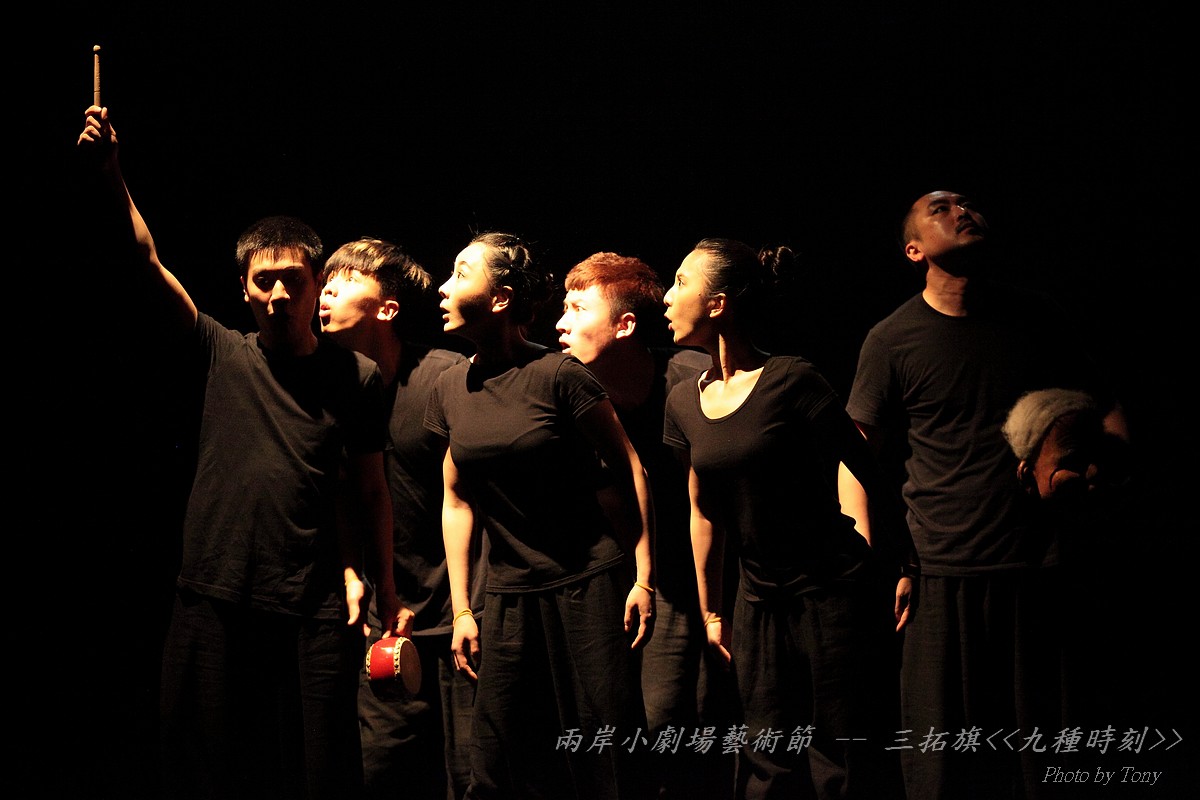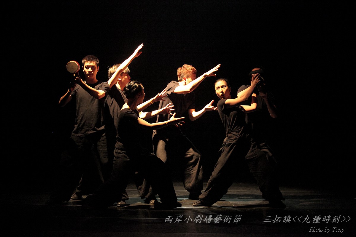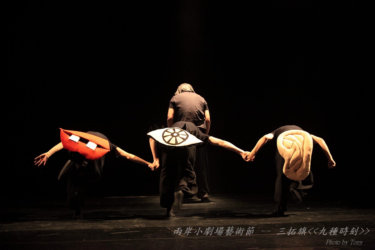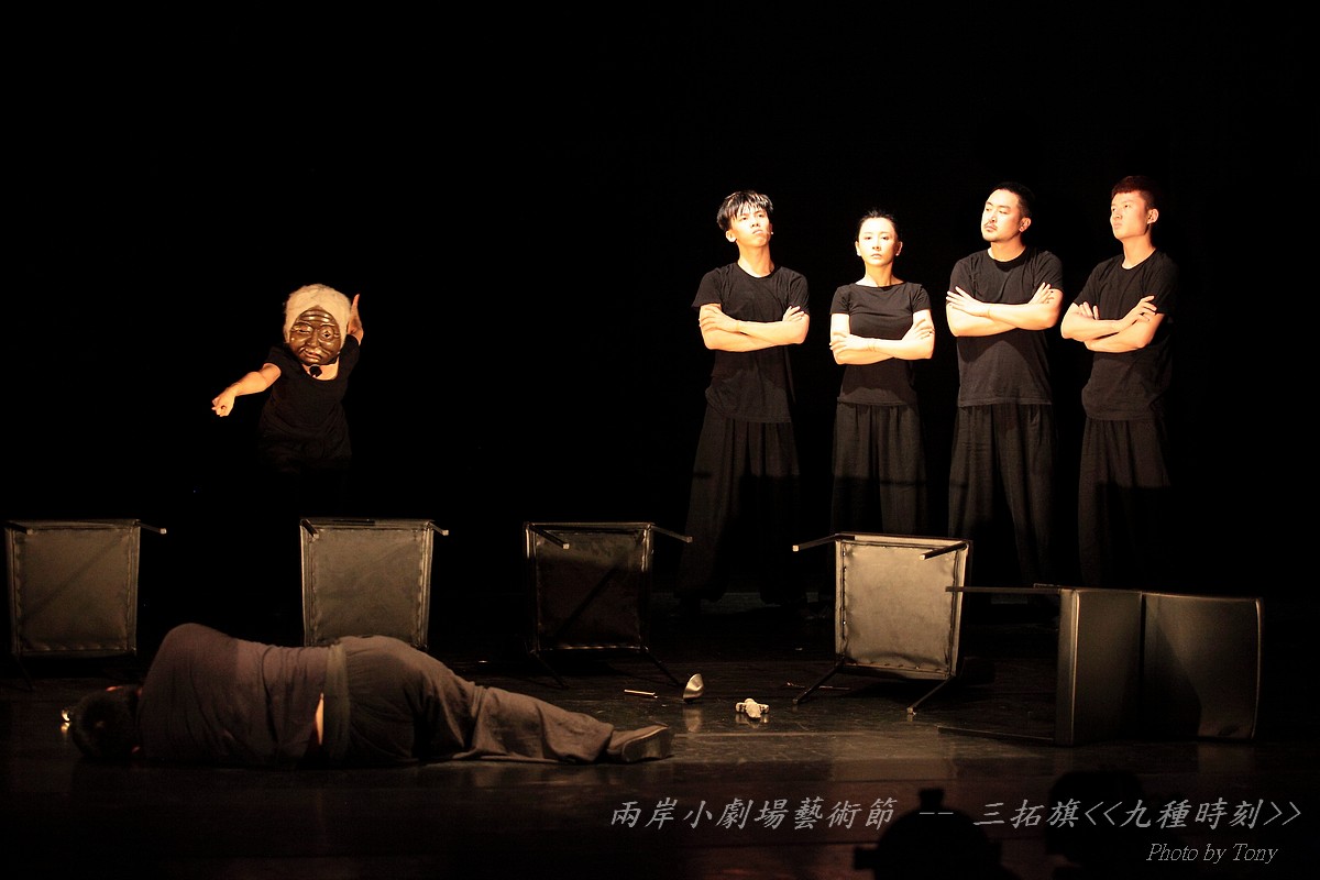 北京三拓旗在2013年來表演的「水生」令我印象十分深刻,所以今年再來台演出「九種時刻」時,就讓我十分期待~ 老實說拍攝這一場時,我...看不大懂,有點失落XDD 但對於幾幕影像和演員的肢體手法還是十分讚嘆! 隔天,我決定放下相機好好用心再看一次 而演出前透過PEGGY的介紹也和三拓旗的導演趙淼小聊了一下,他說這劇改編了很多次,以前較偏向「現代舞」的方式,而且以往演員們都沒有載面具,這次是第一次嚐試這樣的表演,每個故事的主角都戴上面具來詮釋。 「九種時刻」不像「水生」就是去描述一個完整的故事,他表達的是一種現象,所以我看到是什麼,就是什麼..,也不用特別去要了解或是懂得導演想要表達的意念,不拘泥一定看的多懂多了解後,吸收的反而更多!! 而戴上面具的主角和其它臉部表情生動的演員,呈現了強烈的對比,我覺得是一個很好的手法,也有很好的效果!! 劇後我問老婆說比較喜歡「水生」還是「九種時刻」,老婆說二齣戲很不一樣,很難比。 的確,很難比...,兩種類型不太一樣!! 但都好看!! PS:第一次心中有太多疑問,所以不少時間快門沒按下去,再看第二次時,覺得第一次拍的錯過不少畫面,採排想拍的好,事前還是得多了解過才能拍的比較好啊!! 裡面的演員中,我最喜歡史妍,肢體和臉部表情真的超棒,我想我現在是她的小粉絲了:P ------------------------------------------------------- 網路上搜尋到這篇心得我覺得說的很好,給大家參考看看!!(因為我很不會說心得XDD) 心得 三拓旗劇團《九種時刻》by Shinoro 節錄一小段 「「如果我們都正在逝去,如果這首詩就是我要失去的全部,我們豈不是都該感傷?」 戲結束後、和導演結束對話後,心底響起了鯨向海的這首詩句, 以「失去」為命題。 雖然我也得承認這齣劇我沒能百分百看懂。 直到整齣戲過了三分之一,我才找到對我而言最適合觀賞這齣劇的角度, 無須過於執著意義、無須過於勉強自己將所見的一切轉化為文字, 只要相信自己的直覺、相信自己想像與所接收到的,就夠了。 無須套用過去看戲的種種習慣, 因為這是完全不一樣的戲,跳脫語言的框架、融入有如現代舞般的意念,形體戲劇。」