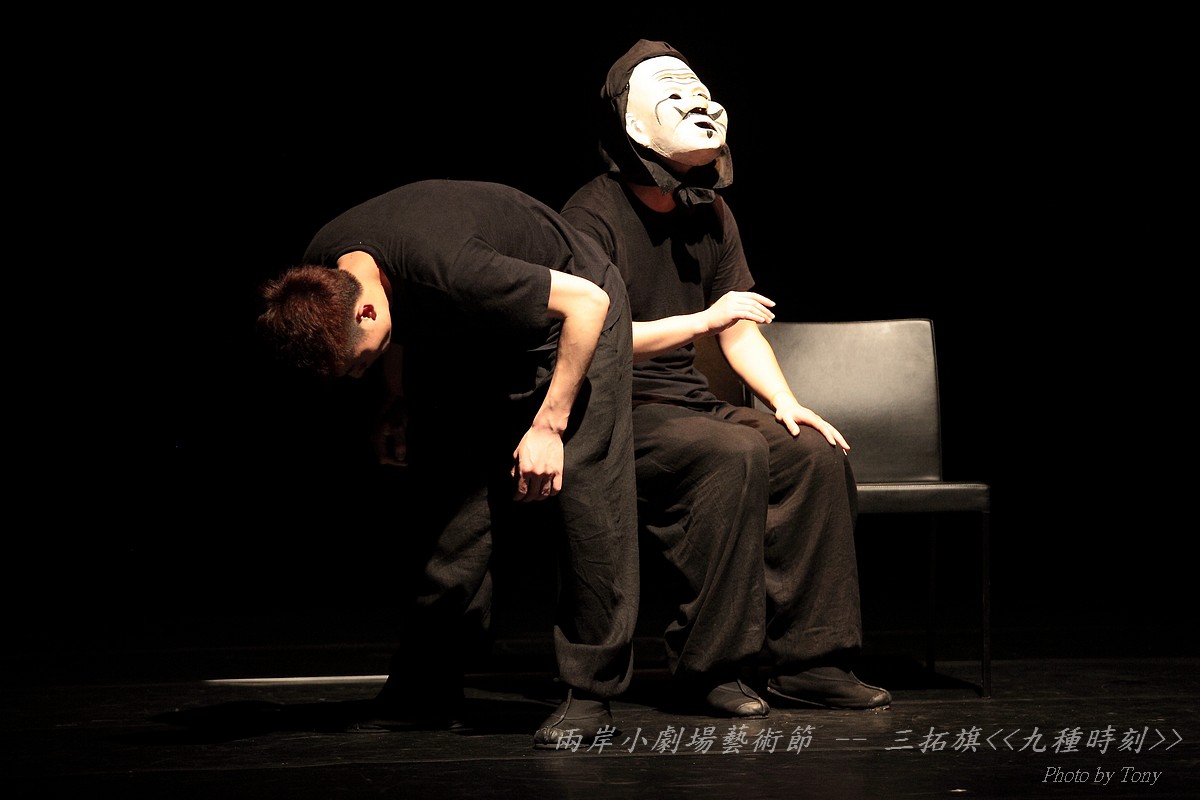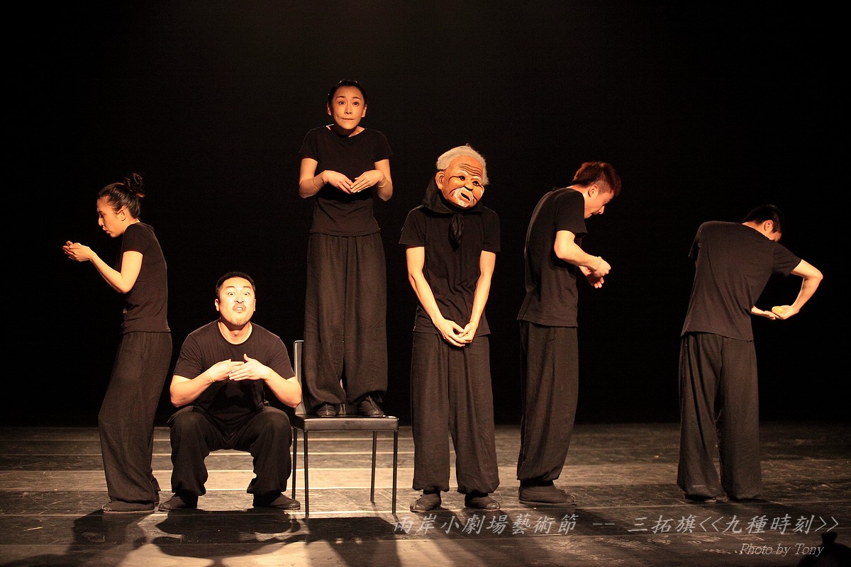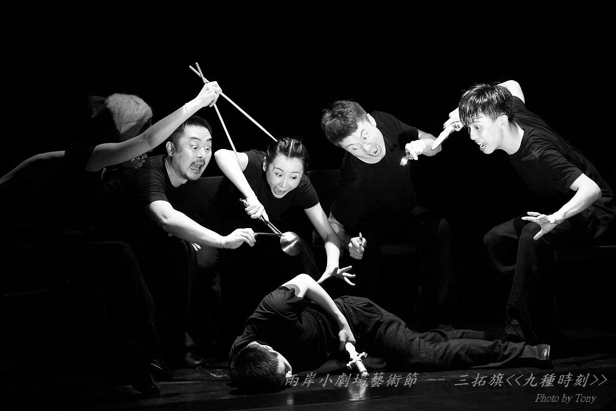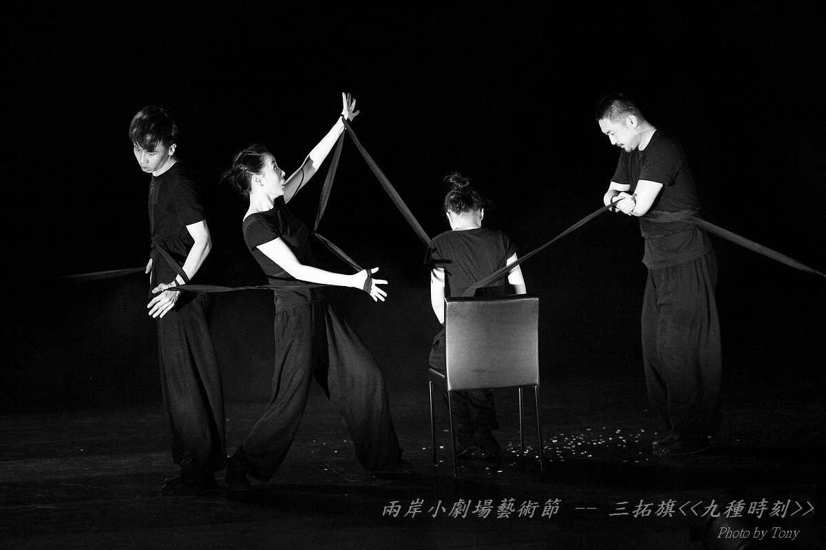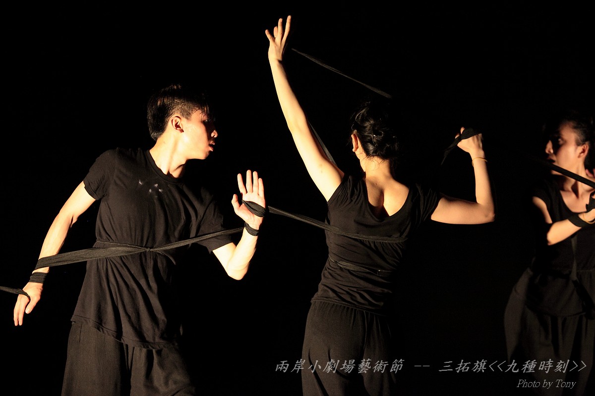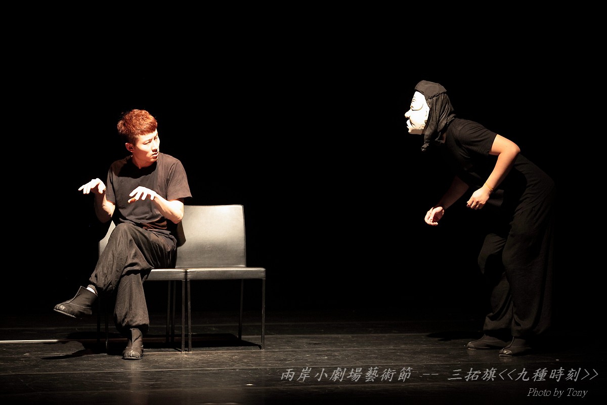 北京三拓旗在2013年來表演的「水生」令我印象十分深刻,所以今年再來台演出「九種時刻」時,就讓我十分期待~ 老實說拍攝這一場時,我...看不大懂,有點失落XDD 但對於幾幕影像和演員的肢體手法還是十分讚嘆! 隔天,我決定放下相機好好用心再看一次 而演出前透過PEGGY的介紹也和三拓旗的導演趙淼小聊了一下,他說這劇改編了很多次,以前較偏向「現代舞」的方式,而且以往演員們都沒有載面具,這次是第一次嚐試這樣的表演,每個故事的主角都戴上面具來詮釋。 「九種時刻」不像「水生」就是去描述一個完整的故事,他表達的是一種現象,所以我看到是什麼,就是什麼..,也不用特別去要了解或是懂得導演想要表達的意念,不拘泥一定看的多懂多了解後,吸收的反而更多!! 而戴上面具的主角和其它臉部表情生動的演員,呈現了強烈的對比,我覺得是一個很好的手法,也有很好的效果!! 劇後我問老婆說比較喜歡「水生」還是「九種時刻」,老婆說二齣戲很不一樣,很難比。 的確,很難比...,兩種類型不太一樣!! 但都好看!! PS:第一次心中有太多疑問,所以不少時間快門沒按下去,再看第二次時,覺得第一次拍的錯過不少畫面,採排想拍的好,事前還是得多了解過才能拍的比較好啊!! 裡面的演員中,我最喜歡史妍,肢體和臉部表情真的超棒,我想我現在是她的小粉絲了:P ------------------------------------------------------- 網路上搜尋到這篇心得我覺得說的很好,給大家參考看看!!(因為我很不會說心得XDD) 心得 三拓旗劇團《九種時刻》by Shinoro 節錄一小段 「「如果我們都正在逝去,如果這首詩就是我要失去的全部,我們豈不是都該感傷?」 戲結束後、和導演結束對話後,心底響起了鯨向海的這首詩句, 以「失去」為命題。 雖然我也得承認這齣劇我沒能百分百看懂。 直到整齣戲過了三分之一,我才找到對我而言最適合觀賞這齣劇的角度, 無須過於執著意義、無須過於勉強自己將所見的一切轉化為文字, 只要相信自己的直覺、相信自己想像與所接收到的,就夠了。 無須套用過去看戲的種種習慣, 因為這是完全不一樣的戲,跳脫語言的框架、融入有如現代舞般的意念,形體戲劇。」