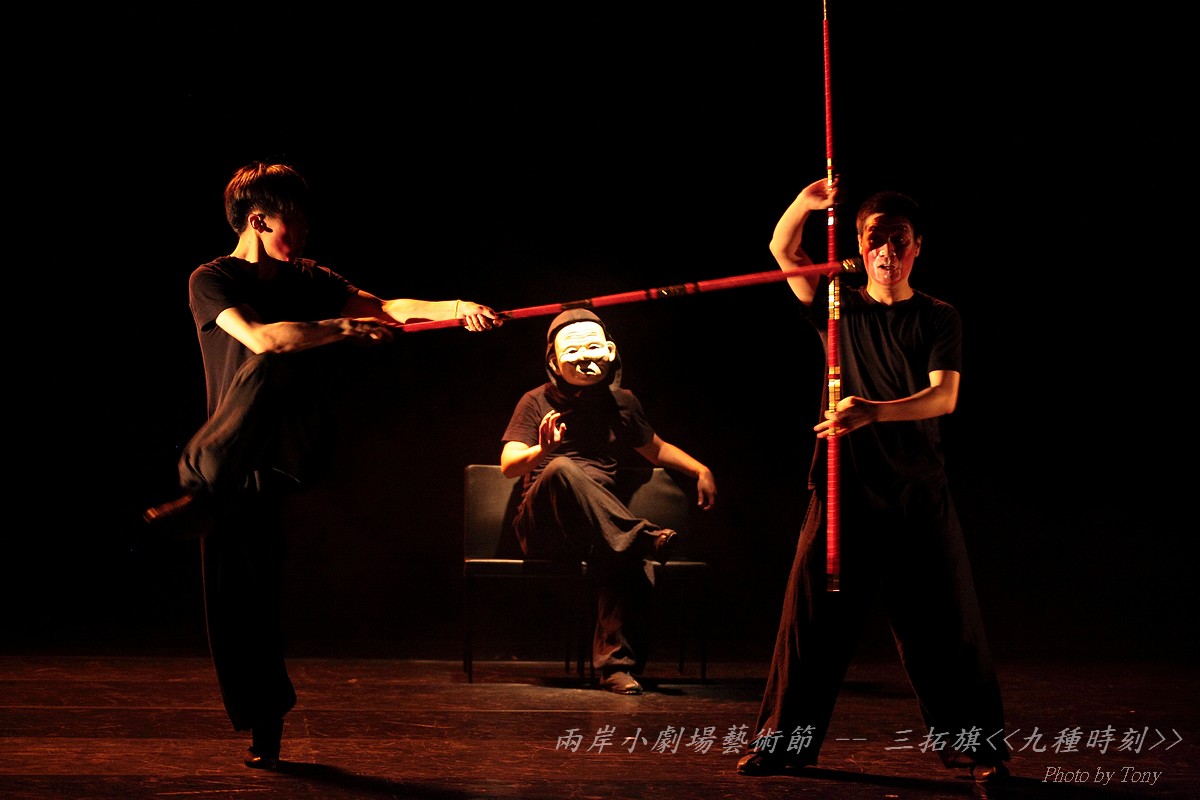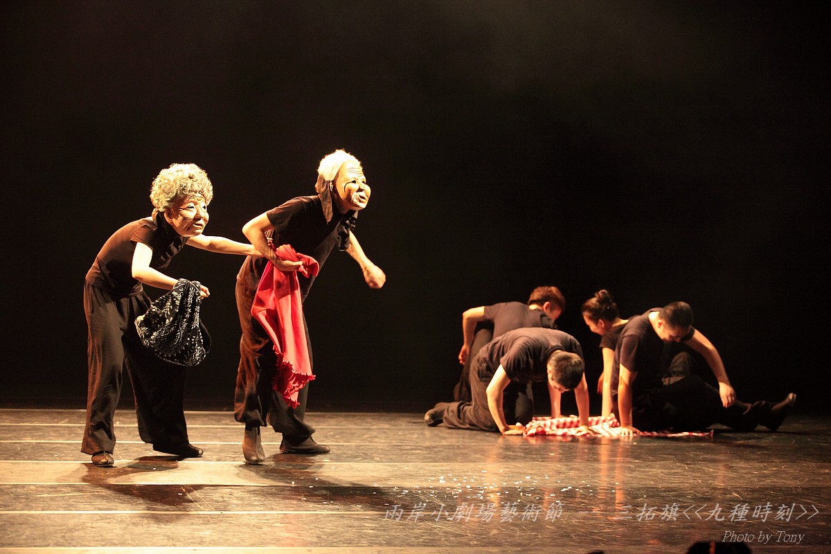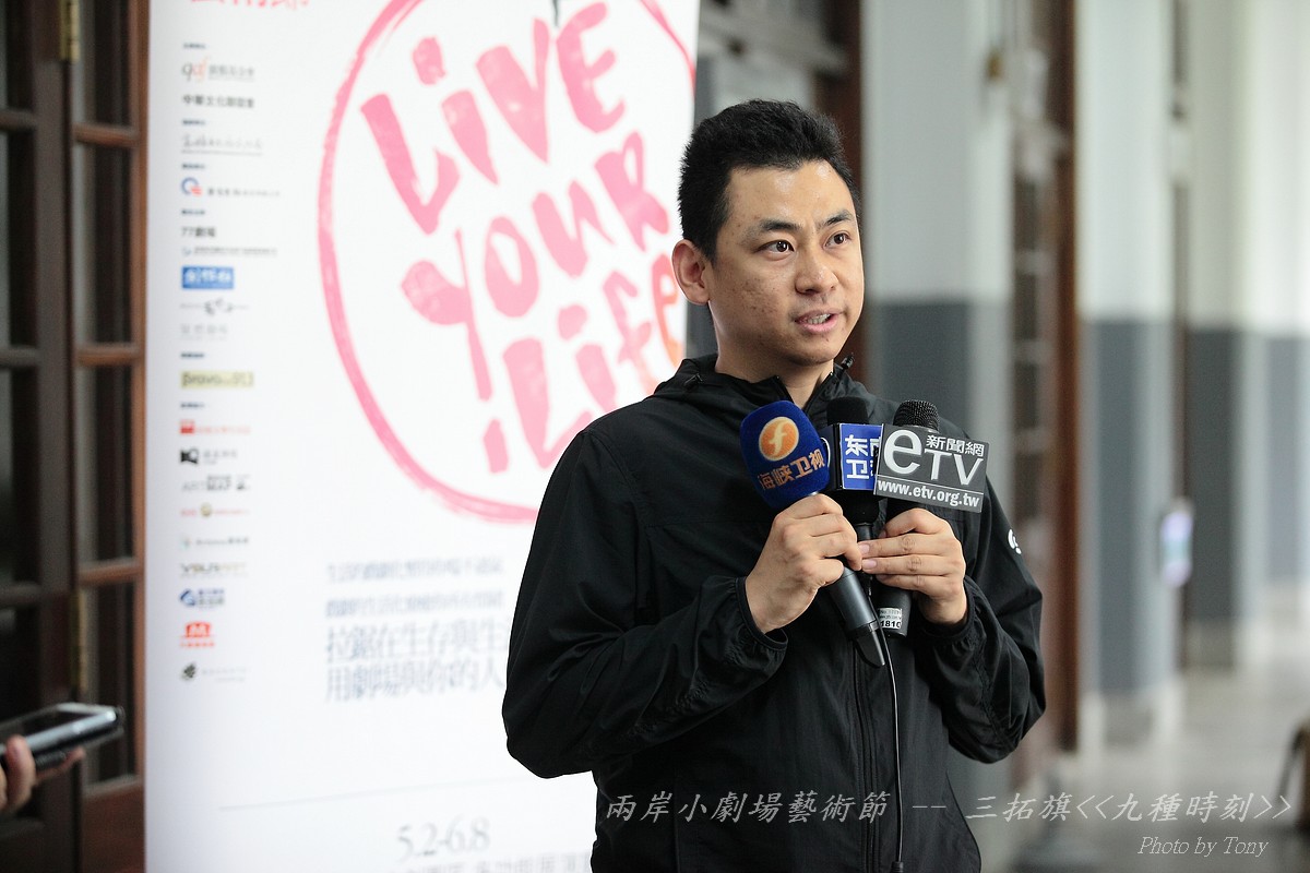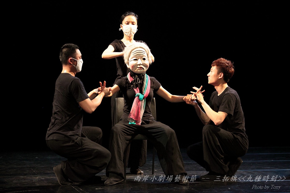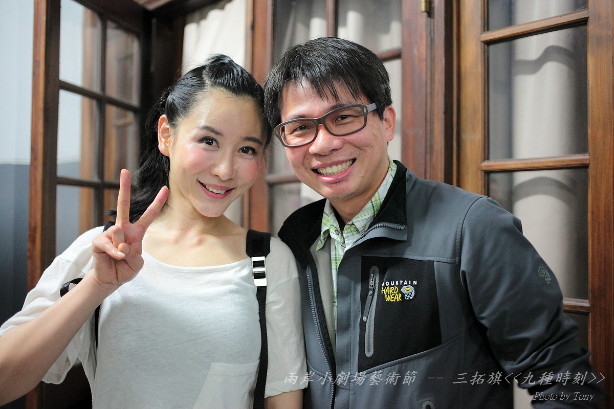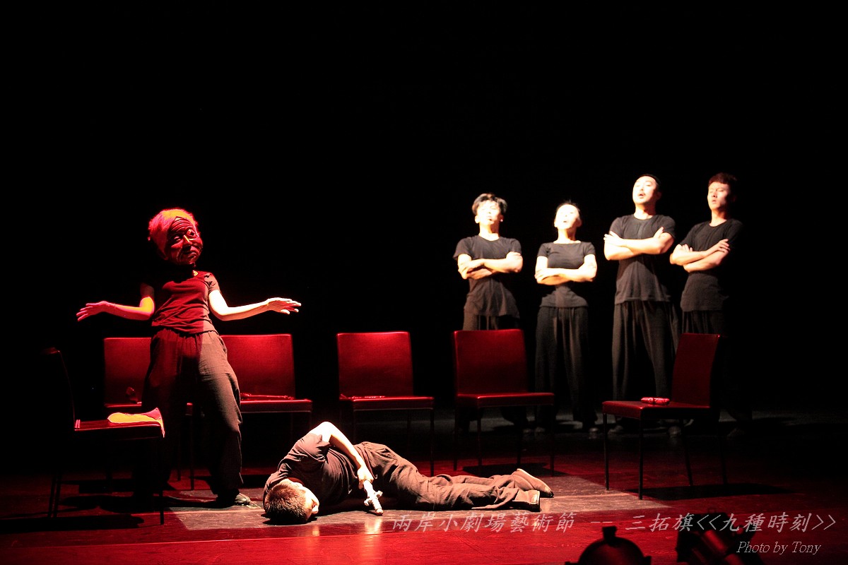 北京三拓旗在2013年來表演的「水生」令我印象十分深刻,所以今年再來台演出「九種時刻」時,就讓我十分期待~ 老實說拍攝這一場時,我...看不大懂,有點失落XDD 但對於幾幕影像和演員的肢體手法還是十分讚嘆! 隔天,我決定放下相機好好用心再看一次 而演出前透過PEGGY的介紹也和三拓旗的導演趙淼小聊了一下,他說這劇改編了很多次,以前較偏向「現代舞」的方式,而且以往演員們都沒有載面具,這次是第一次嚐試這樣的表演,每個故事的主角都戴上面具來詮釋。 「九種時刻」不像「水生」就是去描述一個完整的故事,他表達的是一種現象,所以我看到是什麼,就是什麼..,也不用特別去要了解或是懂得導演想要表達的意念,不拘泥一定看的多懂多了解後,吸收的反而更多!! 而戴上面具的主角和其它臉部表情生動的演員,呈現了強烈的對比,我覺得是一個很好的手法,也有很好的效果!! 劇後我問老婆說比較喜歡「水生」還是「九種時刻」,老婆說二齣戲很不一樣,很難比。 的確,很難比...,兩種類型不太一樣!! 但都好看!! PS:第一次心中有太多疑問,所以不少時間快門沒按下去,再看第二次時,覺得第一次拍的錯過不少畫面,採排想拍的好,事前還是得多了解過才能拍的比較好啊!! 裡面的演員中,我最喜歡史妍,肢體和臉部表情真的超棒,我想我現在是她的小粉絲了:P ------------------------------------------------------- 網路上搜尋到這篇心得我覺得說的很好,給大家參考看看!!(因為我很不會說心得XDD) 心得 三拓旗劇團《九種時刻》by Shinoro 節錄一小段 「「如果我們都正在逝去,如果這首詩就是我要失去的全部,我們豈不是都該感傷?」 戲結束後、和導演結束對話後,心底響起了鯨向海的這首詩句, 以「失去」為命題。 雖然我也得承認這齣劇我沒能百分百看懂。 直到整齣戲過了三分之一,我才找到對我而言最適合觀賞這齣劇的角度, 無須過於執著意義、無須過於勉強自己將所見的一切轉化為文字, 只要相信自己的直覺、相信自己想像與所接收到的,就夠了。 無須套用過去看戲的種種習慣, 因為這是完全不一樣的戲,跳脫語言的框架、融入有如現代舞般的意念,形體戲劇。」