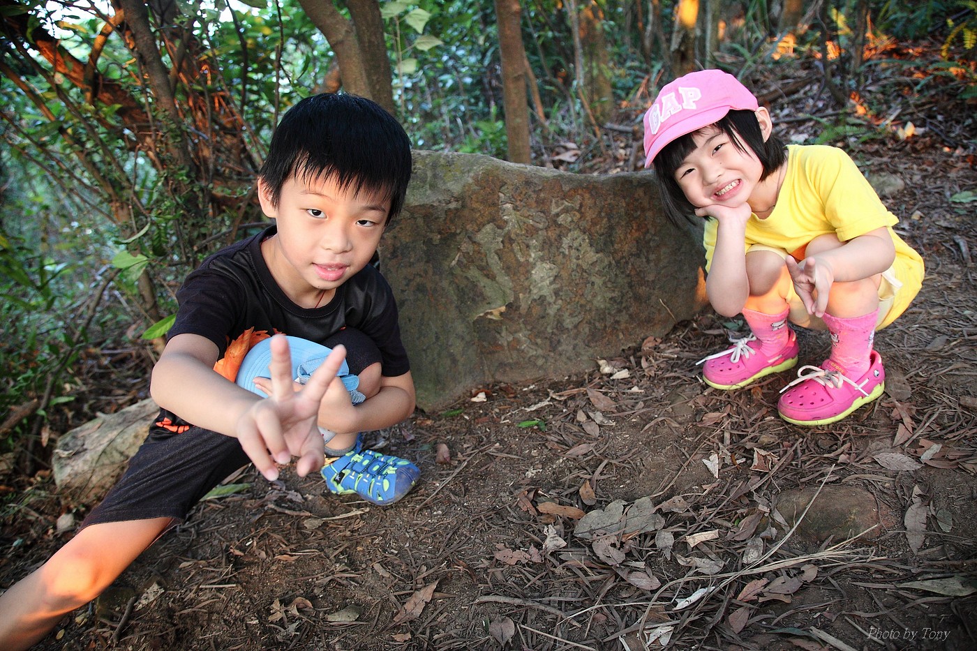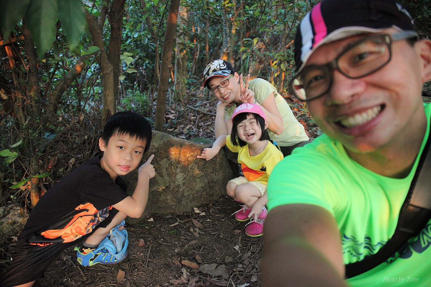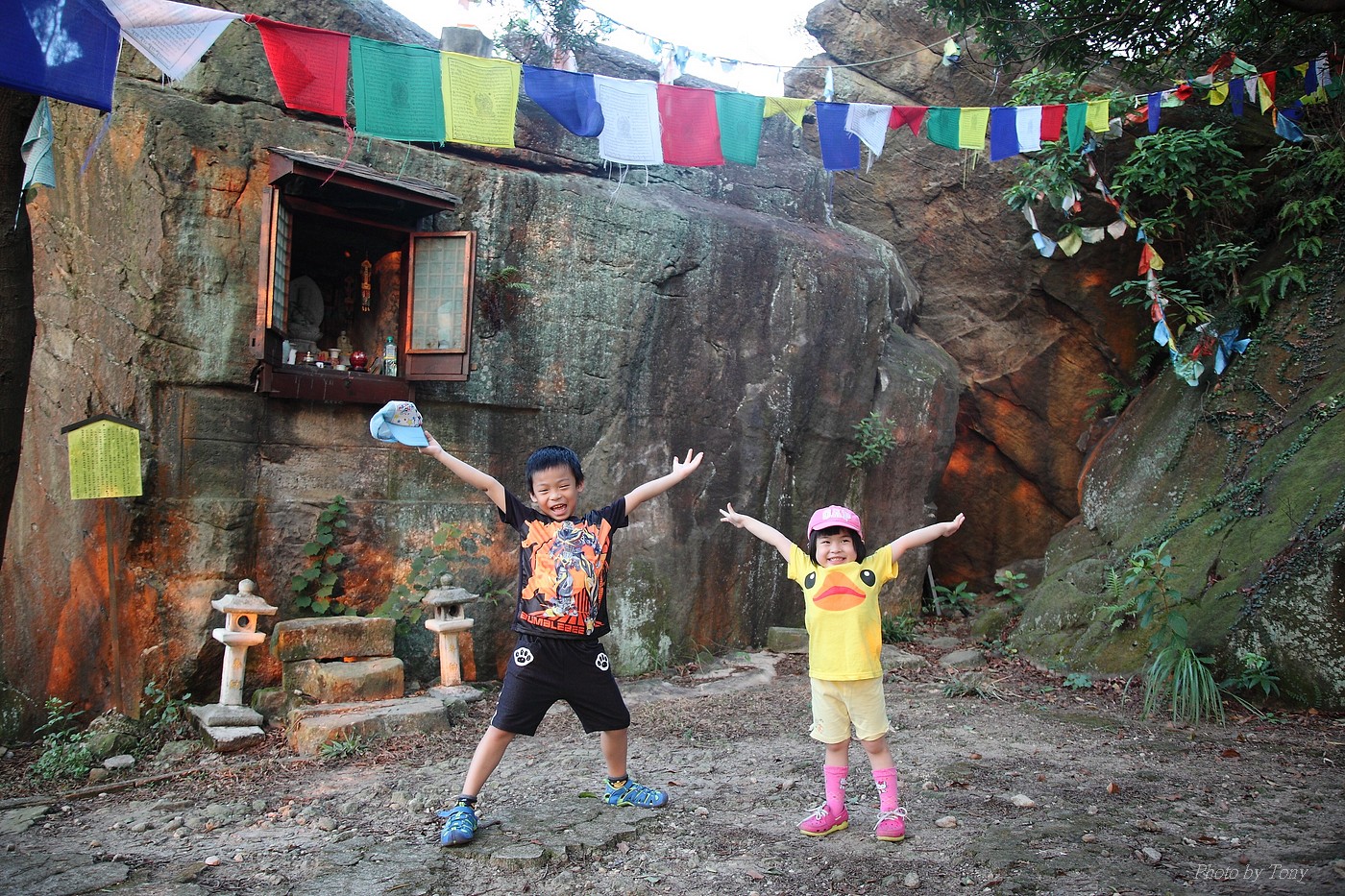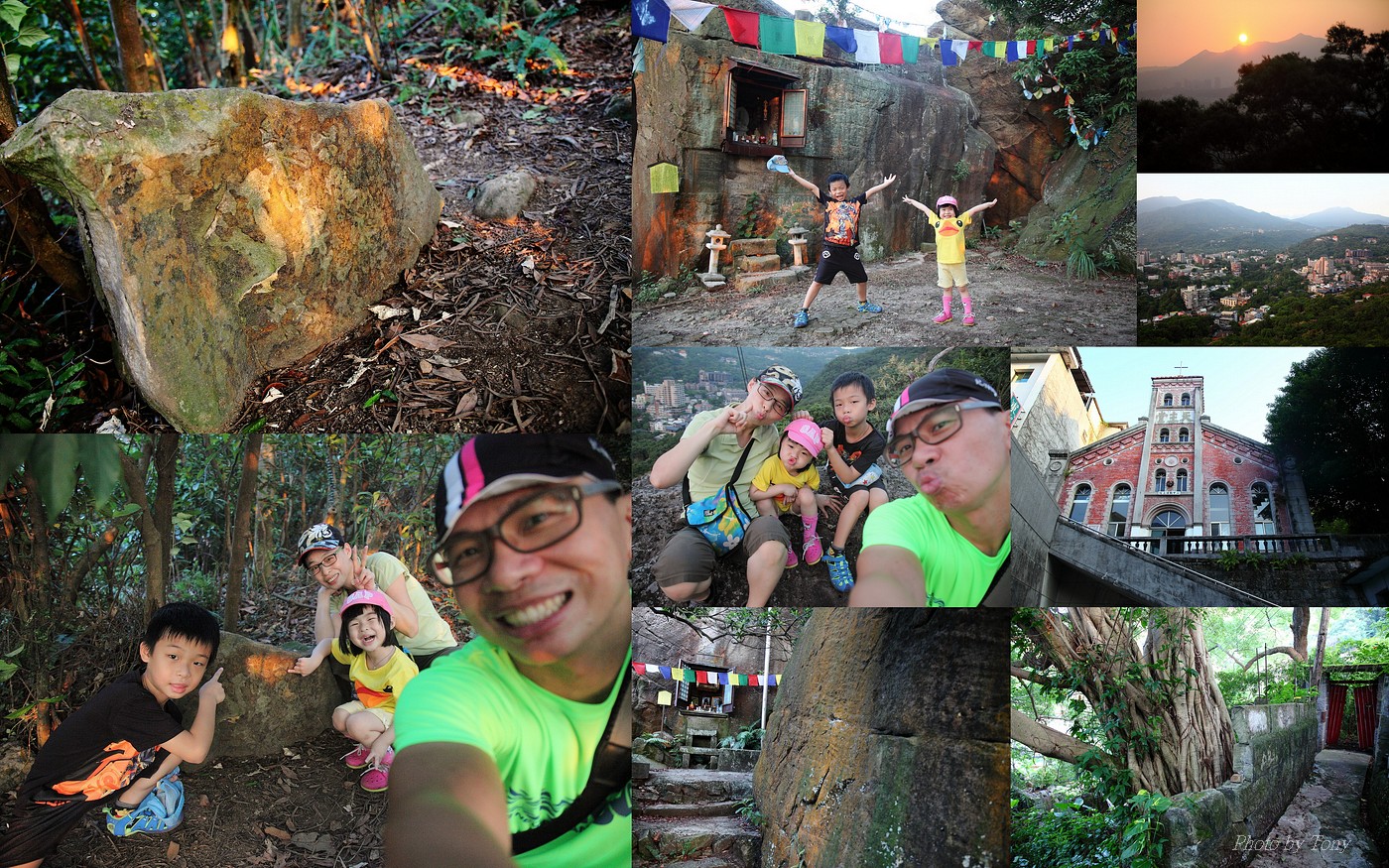 前陣子看到健行筆記上刊出一篇走郊山的文章,主要是說是一顆在山徑旁不起眼的石頭,上面卻用日文刻了「台灣啊!要永遠幸福」的字樣.. 小小的石頭,卻觸動了想去的心!! 記得以前瘋攝影時,看到美麗的景點,都會迫不及待想去走走拍拍 但隨著去的點愈多,年紀愈大,好像也愈來愈懶XDD 前二週好友老王揪團要去,卻因為有事不能跟 這天天氣很好,問了老王能不能再帶一程...,沒想到她有事!!!!Orz 好險健行筆記這篇文章把路徑拍的很清楚,所以我自己就很順利的找到了!!^+++++++^ 也是因為拍的太清楚,讓我一開始以為要走很久 沒想到老王說..從登山口上去只要5分鐘!!!(帶小孩要10分鐘以上啦~~) 不過這條山徑還真是很少人走,也沒什麼人維護 所以雜草,蚊子很多很多 要去的朋友一定做好防蚊準備!! 如老王說的,路程真的不遠,走沒很久就在路徑旁發現了這顆石頭 真是太高興了!! 小羊問我說,找到幸福石會怎樣?? 幸福石不是魔法石,不是找到了就可以許個願變幸福! 但可以一家人一同做一件開心的事,就是幸福!! 這段話我沒說..,不知小小的他什麼時侯可以體會! 也趁著這兩隻年紀小,能多帶他們四處走走.. 不知幾年後,就不願和我們同行了!!>"< 能把握住的~就趕緊珍惜。 從幸福石往上走一點就到了「弘法大師岩」,這個景點很久以前就看過想來,卻一直沒來 沒想到是這個契機讓我來了!! 從大師岩後方可以繞上岩石頂,上方有一個基點,視野相當棒,有來探訪的朋友不要忘了爬上來看看:D 我想未來要多增加一些親子郊山的行程了!!(加油~加油~~) 此次參考網頁 健行筆記 -- 台灣啊!要永遠幸福 六肆零的寫作信念 -- 「台灣啊,要永遠幸福」埋沒北投山區的日文石碑。台灣最感人肺腑的百年遺跡