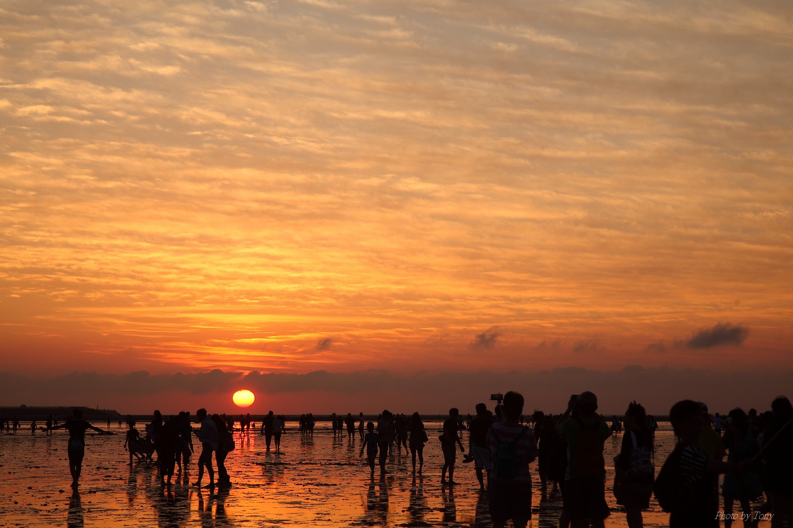 趁著連假來中部走走 好久沒來高美溼地 這次和HO董、P董還有狗腿一家人來這走走.. 小朋友可以玩水玩沙 而大人可以看風景 今天的天氣真的是一級棒 看著紅澄澄的鵝蛋太陽從海平面落下去.. 真是美到不知要怎麼拍好~ 廣角美,拉近也美,天空也美.... 怎麼拍都美啊~~ 所以搞到七點多才離開 去到清水米糕店時都已經賣完了XDDD 沒關係,有機會下次一定還要再來~:D