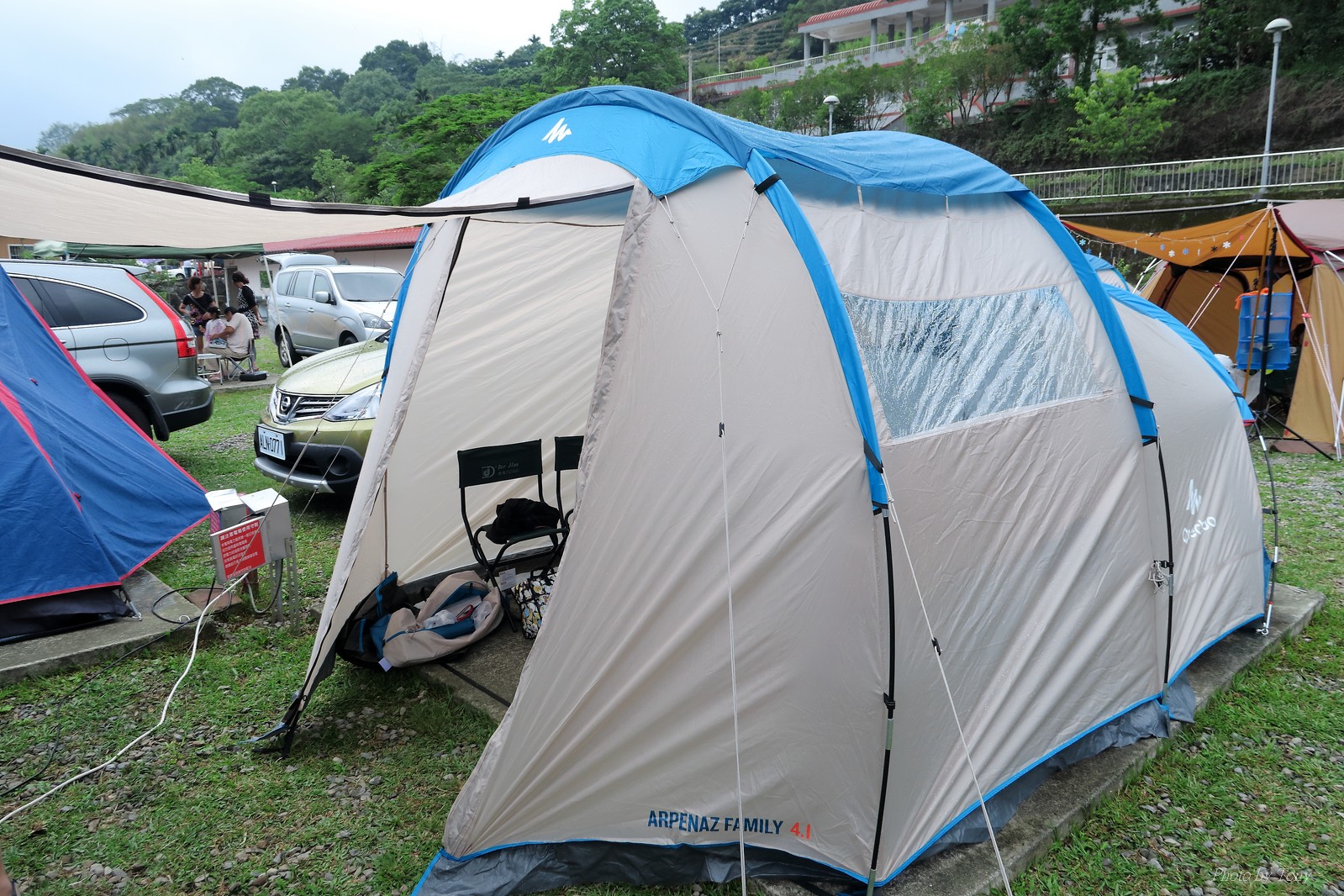 PS2:迪卡儂 ARPENAZ FAMILY 4.1好用嗎??我覺得4000元很對的起他的品質,前一天有大雨,但帳篷內並沒有進水,反潮的現象,睡覺的地方為240*210CM,二大二小睡還很寬敞,前庭也夠寛大,下雨時是躲雨的好地方,但也是設計的關係,相對起來是比較悶熱的(有很通風又防水的帳篷嗎??),這一點倒是在想要如何增進他帳內對流的能力..,留在下次再想想:P