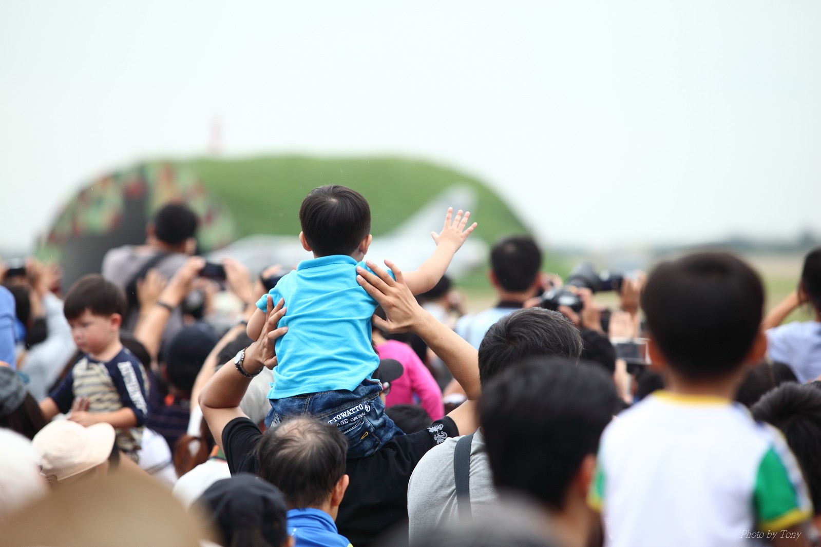 幾年前曾帶小羊來參觀過一次 印象中他還挺開心的 這次趁著再開放的時侯,再來一次.. 只是這次營區沒開放停車,停到一公里外的停車場 走一公里到大門還好,只是進了大門還要再走一公里啊~ 還好我們有自備二張椅子,等待時可以有的坐~ 表演時,小朋友可以站在椅子上看,一舉兩得:p 可能是第三次看了..所以感覺沒那麼興奮 小羊咩說...飛機好吵XDD 女生和男生果然是不同的!! 看來下次要看,得再等幾年了:P