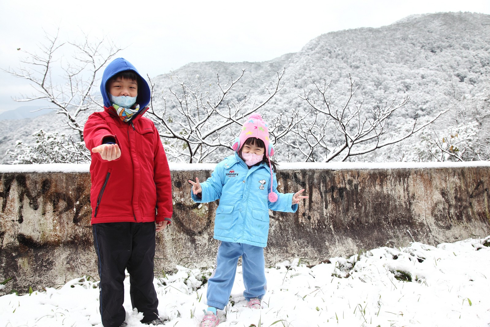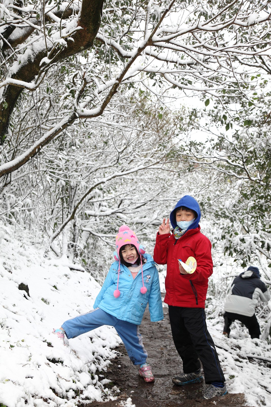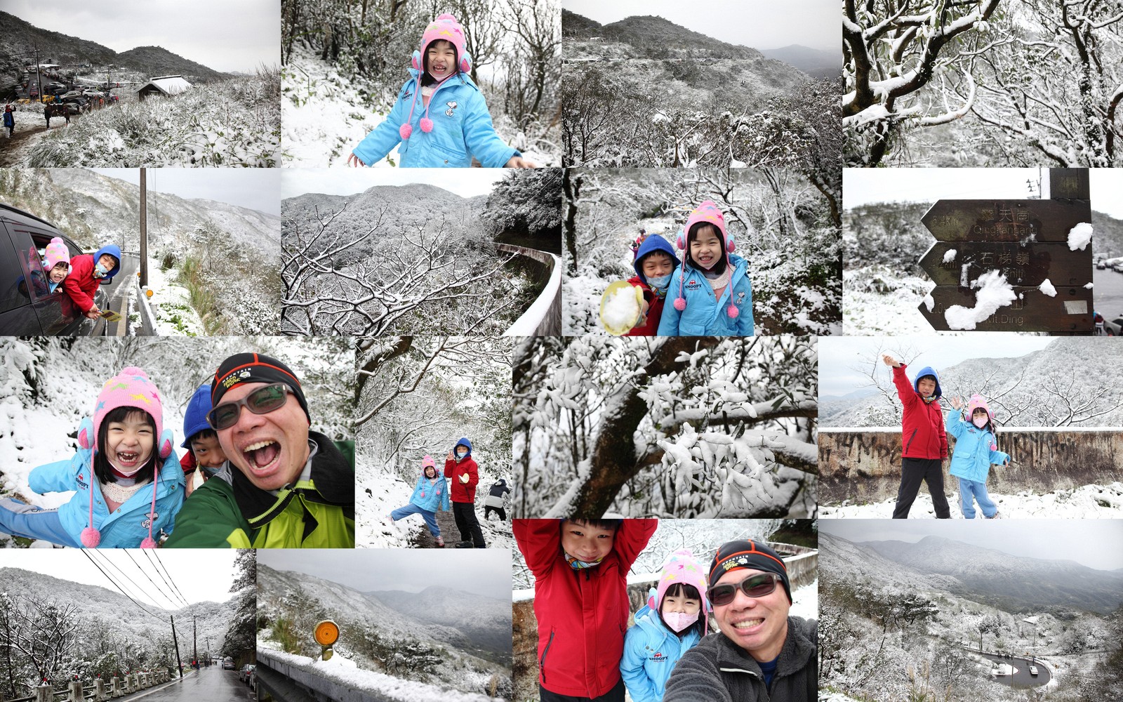 超級寒流來襲,怎麼可以不去湊個熱鬧了 探子陳大鼓來報,風櫃嘴一片雪白世界 且車少又不用上雪鍊~ 趕緊把二隻小鬼從溫暖的被窩挖起來 囑咐二個要上山賞雪,要多穿一點~~ 上山前,遠遠的可以看到白白的山頭 隨著高度的上升,路邊開始出珼零星的積雪 上到海拔500公尺時,已經到了雪白世界了 小羊說..感覺好像假的!!哈哈哈~~ 下車讓二個小鬼走一下步道 小小玩一下雪 這是他們第一次看到雪 真的很興奮 我長這大,也第一次在台北市看到雪景 不衝上來真的會被人洗版洗的很不甘願啊!!:D 今天~~有開心啦!!