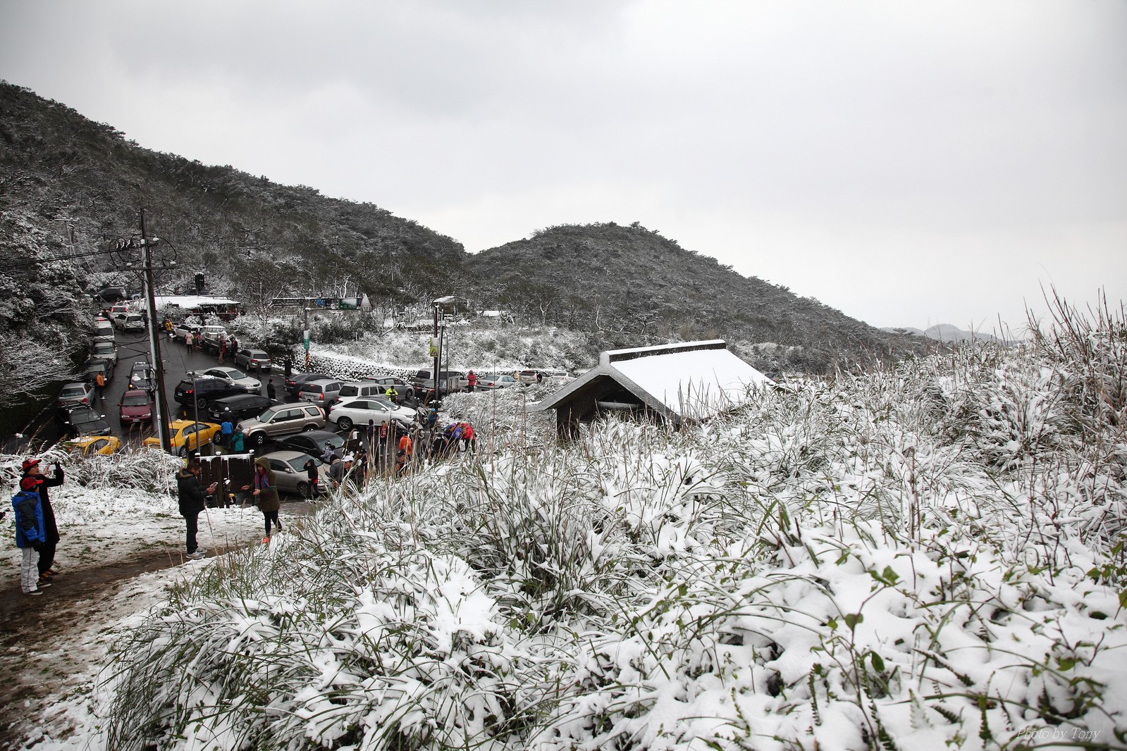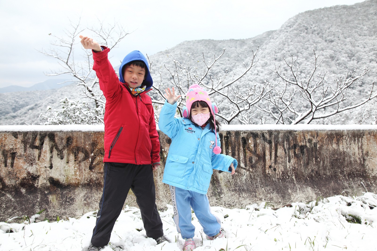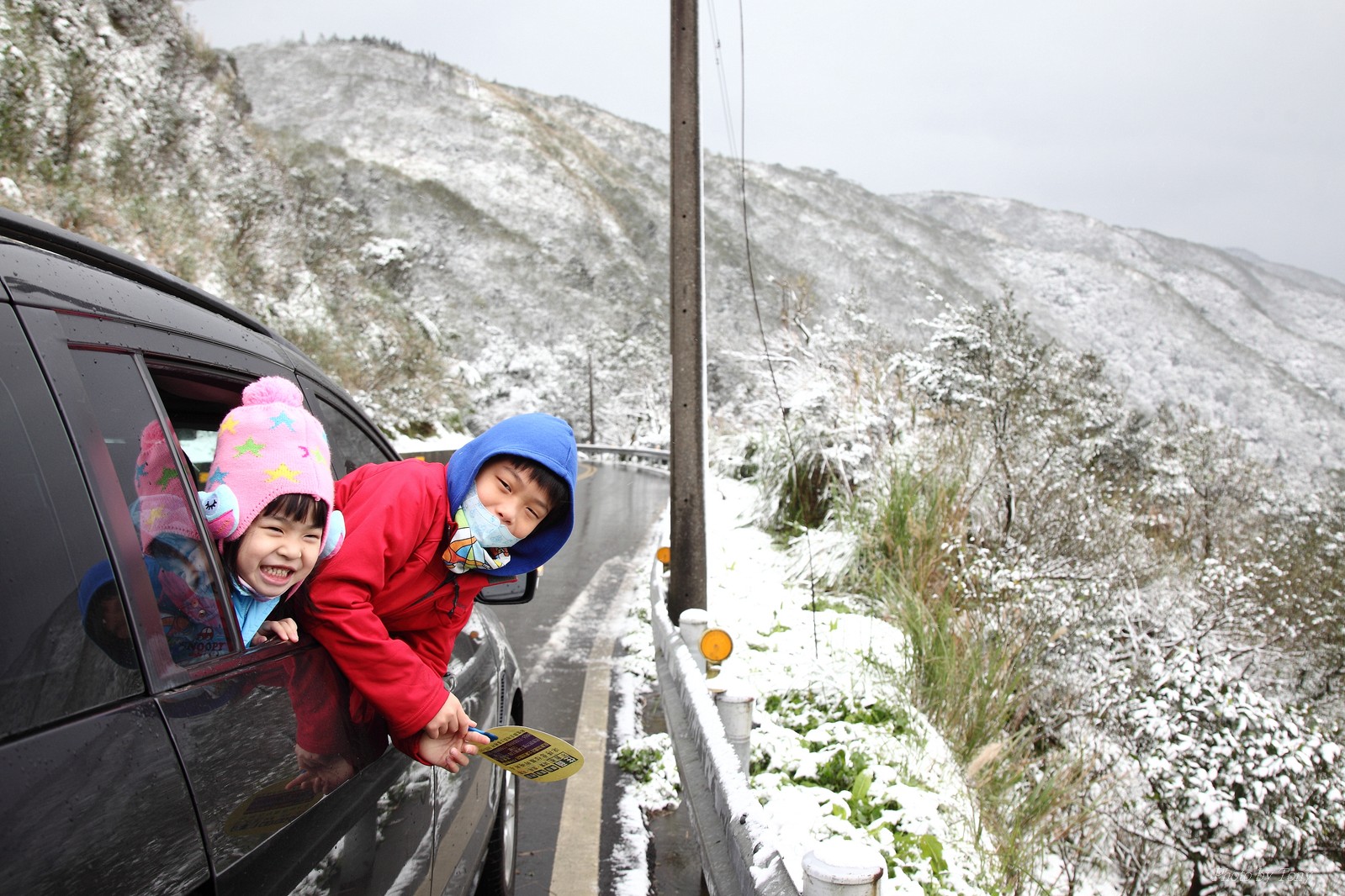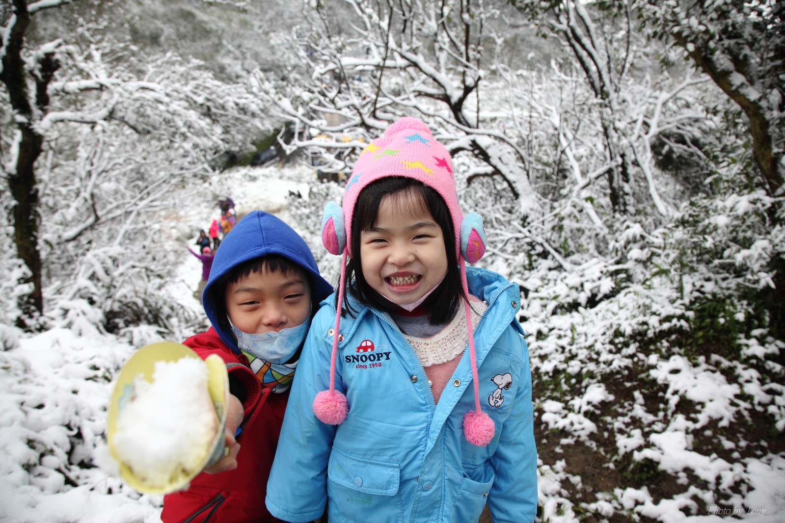 超級寒流來襲,怎麼可以不去湊個熱鬧了 探子陳大鼓來報,風櫃嘴一片雪白世界 且車少又不用上雪鍊~ 趕緊把二隻小鬼從溫暖的被窩挖起來 囑咐二個要上山賞雪,要多穿一點~~ 上山前,遠遠的可以看到白白的山頭 隨著高度的上升,路邊開始出珼零星的積雪 上到海拔500公尺時,已經到了雪白世界了 小羊說..感覺好像假的!!哈哈哈~~ 下車讓二個小鬼走一下步道 小小玩一下雪 這是他們第一次看到雪 真的很興奮 我長這大,也第一次在台北市看到雪景 不衝上來真的會被人洗版洗的很不甘願啊!!:D 今天~~有開心啦!!