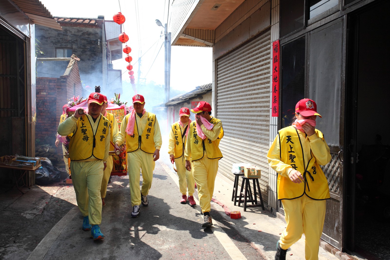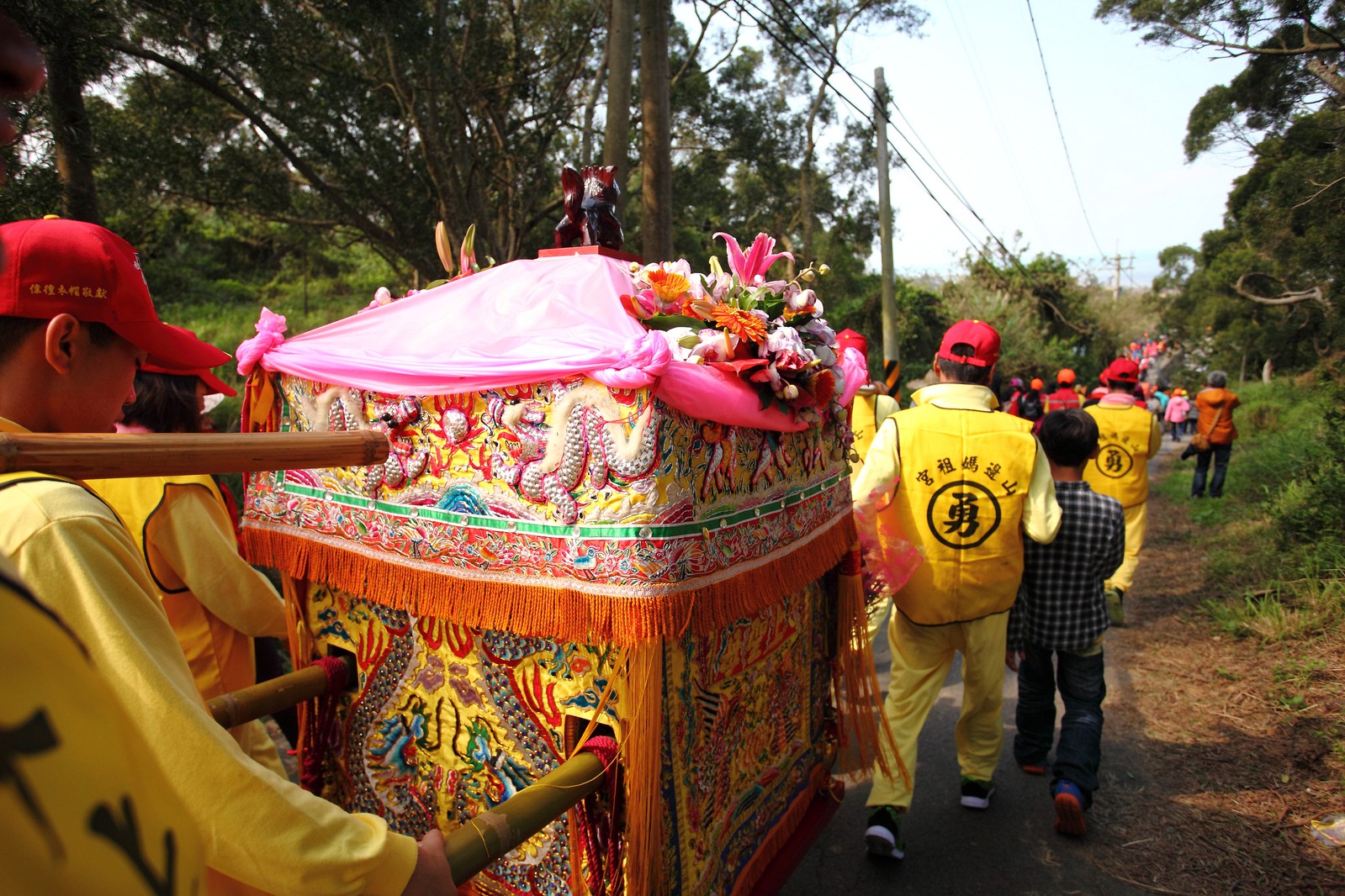 和白沙屯媽的相遇,是一種緣份 7年前曾和小V一起從白沙屯出發,跟著媽祖的鑾轎回北港(但我只到彰化伸港的福安宮就沒力了XDD) 後來心裡有念著有機會還要再去.. 沒想到這一晃就是7年多,都未曾再去 星期六一早看到阿貝和阿季要去接媽祖回白沙屯,心裡才又響起...,對吼..又錯過了! 錯過了媽祖的回鑾 沒關係,隔天一早7點還有遊庄..(記得看過小V的文章,陪媽祖遊庄也是很有趣的:D) 7點出發,那我5點初就要從中壢出發,雖然前一天很晚睡,但很自然的,我就是醒來了 不到7點就和阿貝、阿寄和小V會合.. 遊庄其實就是繞境,平時都是大家來廟裡,這天媽祖要坐著轎子到各村去繞繞 原以為今天是輕鬆健行,沒想到這天外地一起參加遊庄的也不少,媽姐可能也特別開心 常常突然就快速度暴走,不小跑步還跟不上XDD 另外許多地方因人多巷弄小,也不是太好走.. 走啊走...不知不覺就走到山邊媽旁..,突然覺得香客較少,也好走多了.. 後來也就常陪在山邊媽旁走,拍了很多山邊媽鑾轎的照片(不過我都不好意思去拍山邊媽的照片,不知山邊媽長什麼樣子,回來才看到小V拍的,真的是一副親切又可愛的樣子啊!!:P) 不知為什麼,就覺得山邊媽對我比較親切吧:P(明明都是林小姐~) 不過快走到山邊媽的家時,鞭炮特別多,真是被鞭炮逼著百米衝刺,不然這天身上沒有準備防護措施,陷入炮陣,不是嗆昏就是被炮打到痛死吧XDD 中午吃完村民提供的油飯、麵包和酸菜湯,大家就先和媽姐說881了~~ 今天真的很開心能跟著媽祖遊庄,也希望媽祖婆能保祐我全家健康、平安!! PS:原本星期六是要去磺嘴山的,因為天氣預報天氣不好而取消,沒想到六日卻是大好天氣,但若前一天去爬山,星期天應該就沒法跟媽姐婆去遊庄了,原本計畫的沒去成,反而去了原來都沒在計畫中的活動,我想冥冥之中真的都有定數吧~,緣份啊~~緣份!!!