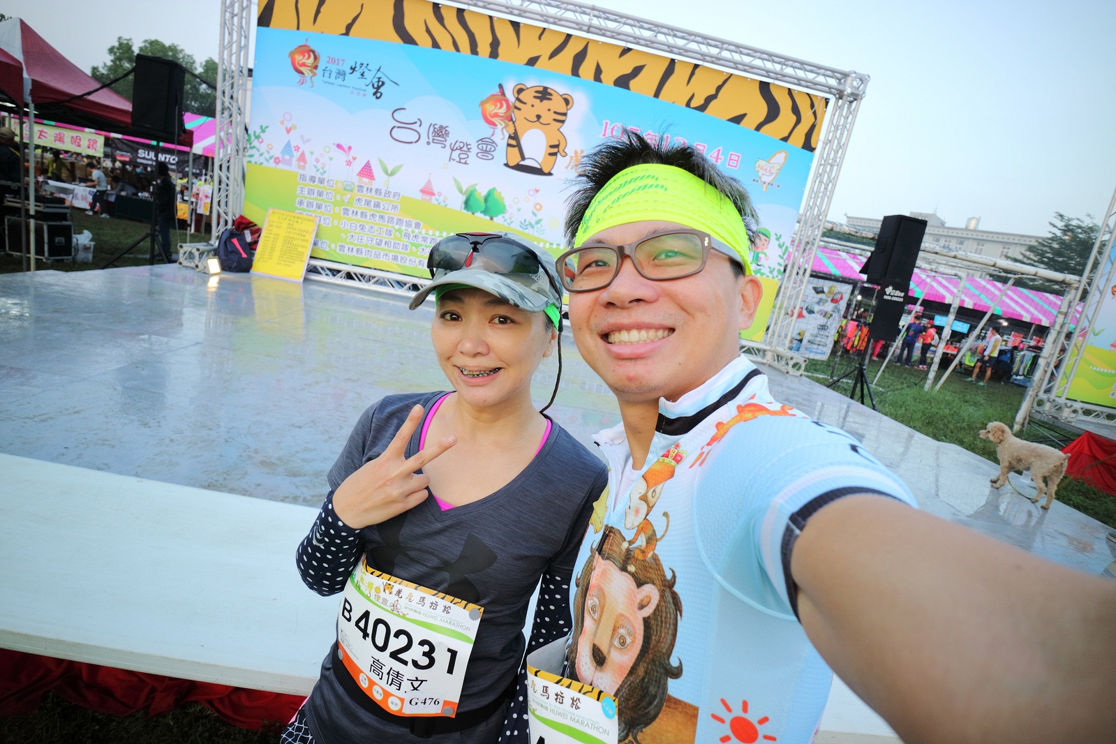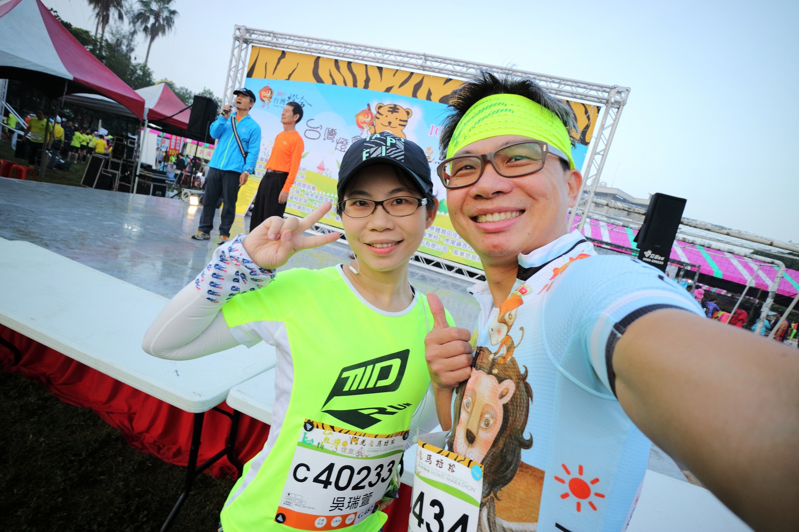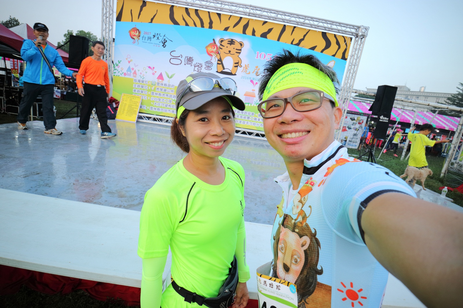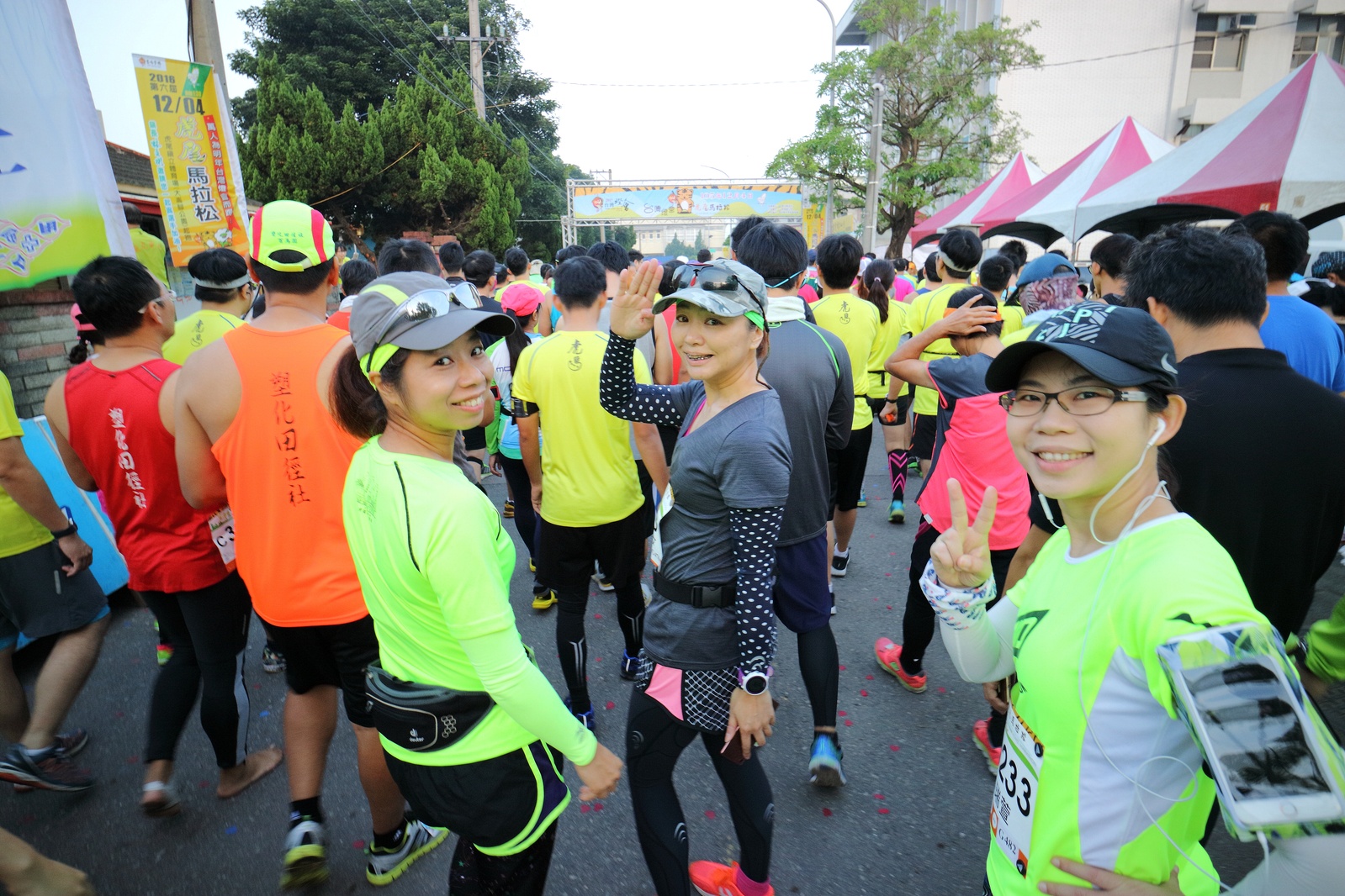 雲林的馬拉松還沒來跑過 阿貝說好玩,就跟著來了~ 不過這次虎尾馬的路線有改,除了一開始還有跑在田邊 後來幾乎都是小鎮裡,就有點小無聊~ 因為天氣好,大家怕熱,所以一開始阿貝、姐夫和RS都先跑出去了.. 我心想不急,先陪先陪阿寄慢慢跑個5K 才7分多速,阿寄就說他有點喘XDD 可能我陪在旁邊,阿寄覺得壓力大 3K後就催促我趕快往前跑,不要等她~ 所以3K後我就恢復自己正常5:30上下的速度前進 不過人好多..,心想不知遇不遇的到其它人~ 沒想到在第2還第3個水站居然看到阿貝~ 那就跟著阿貝跑吧~ 阿貝說看看能不能在2"20分以內跑完 23K要跑2"20分,那大概就是5分尾.. 阿貝直說今天心跳一直拉不起來,心跳比我還低 不得不說最近阿貝練的頗勤勞,實力已提升非常多 不過二個邊跑邊玩,後面的補給站都努力的吃喝玩樂,耗了不少時間~,太陽愈來愈大,阿貝直說幸好有先跑,不然會熱死XDD 最後2K,阿貝叫我先走,我很聽話的就用5分初的速度跑出去了 不過回頭一看,阿貝也沒在身後沒多遠..,我就頭也不回的努力往前跑 最後300公尺,聽到後面有卻步聲上來 想說..這成績,應該很少人會有這種速度 回頭一看,居然是阿貝啊~ 媽呀,阿貝比我晚起步,我又都跑5分初~ 居然追上來,真是太可怕了 最後50公尺,還和我說不衝刺要超過我了 害我也得卯起來跑~ 二人最後同時衝線~ 哈哈~好險好險~ 不過,因為起跑時我站在後面幫大家拍照 所以個人成績小贏2秒:P 隨後姐夫,RS和阿寄也陸續回來 大家都成功完賽.. 成績嘛... 就不要太在意,好玩就好:P