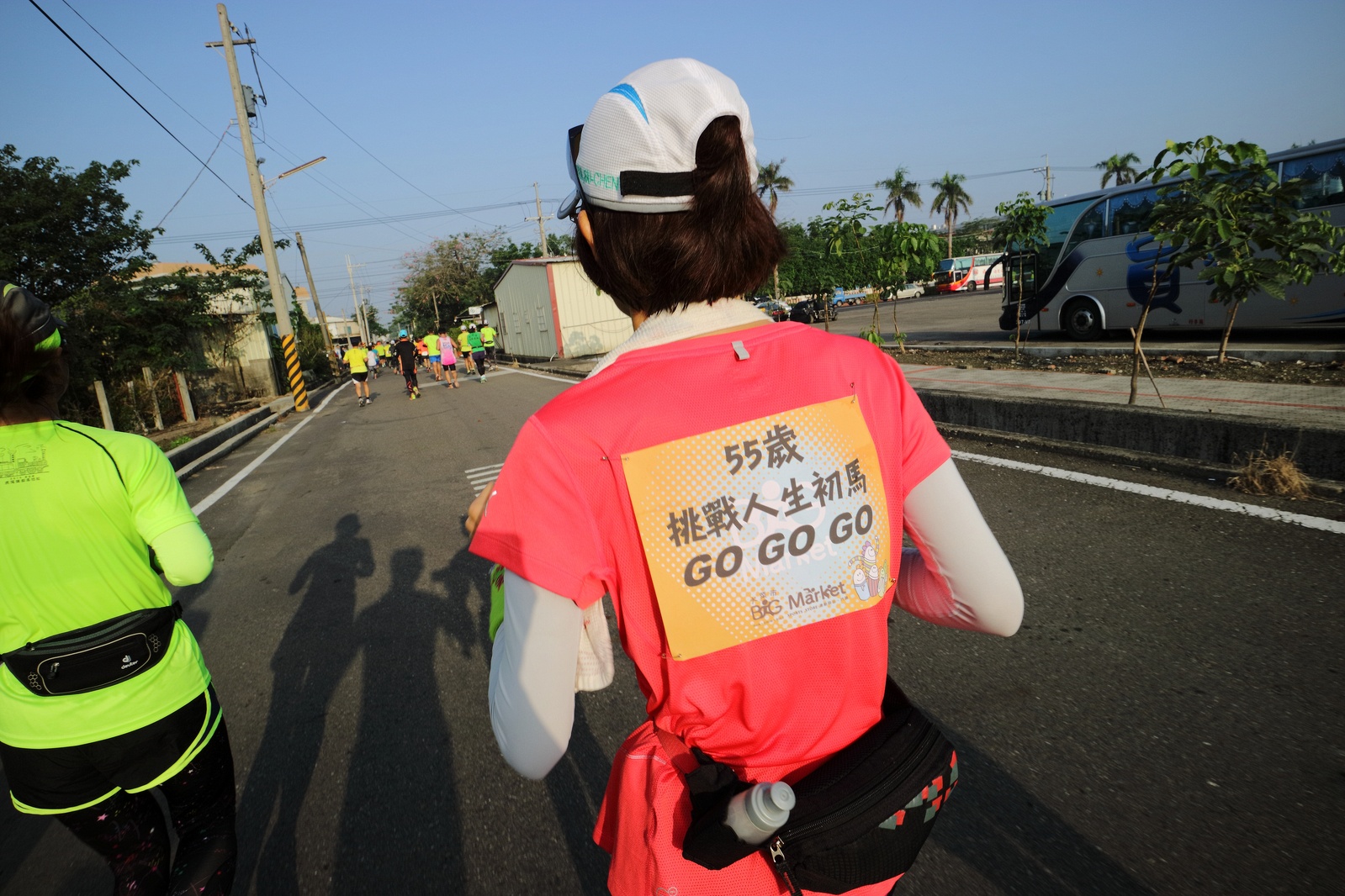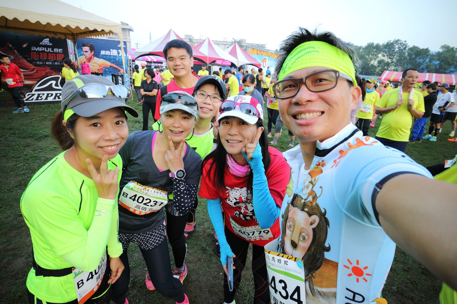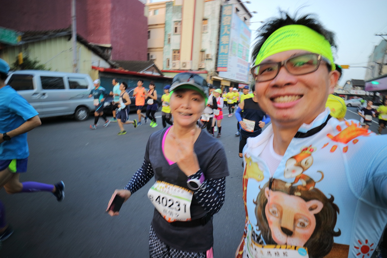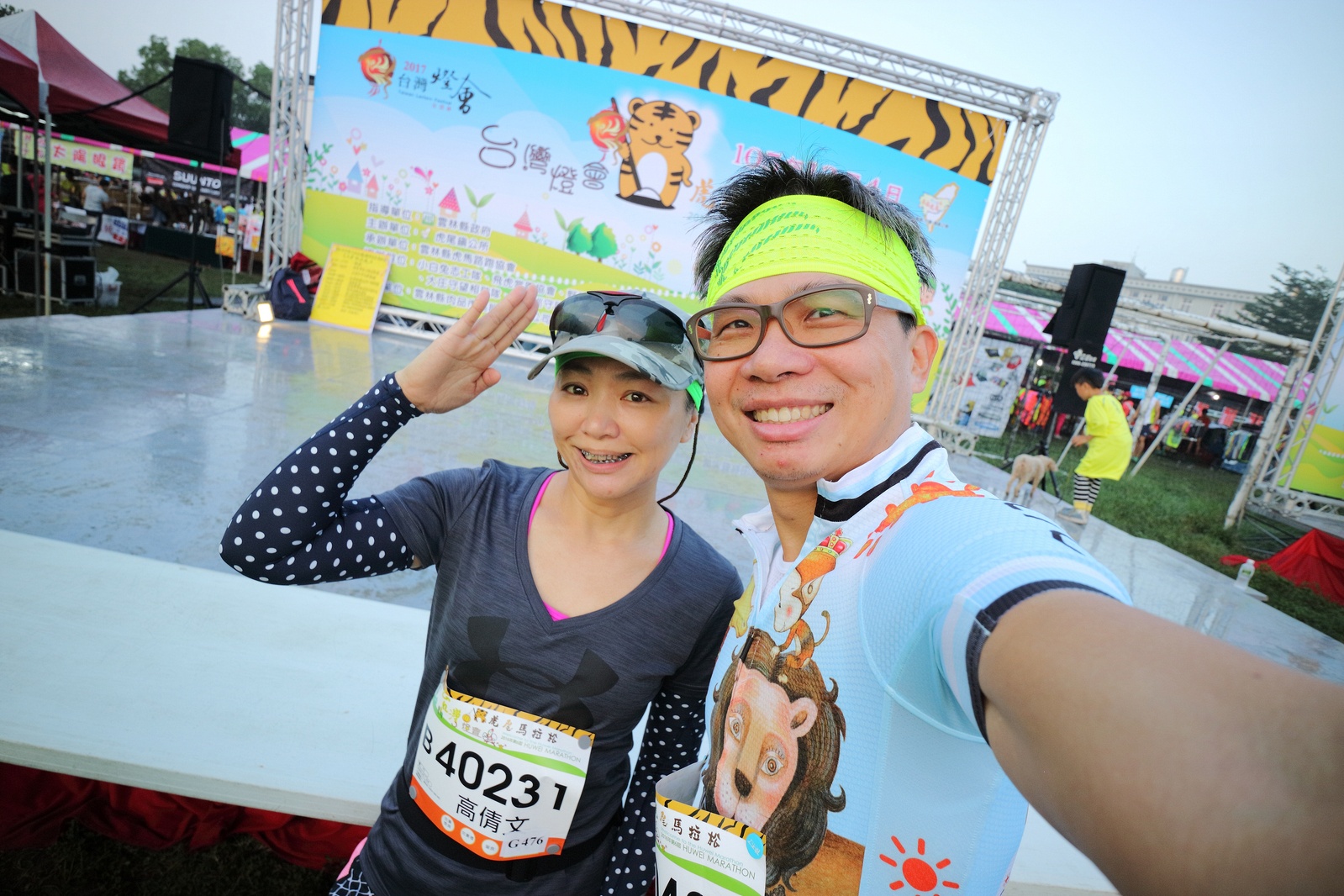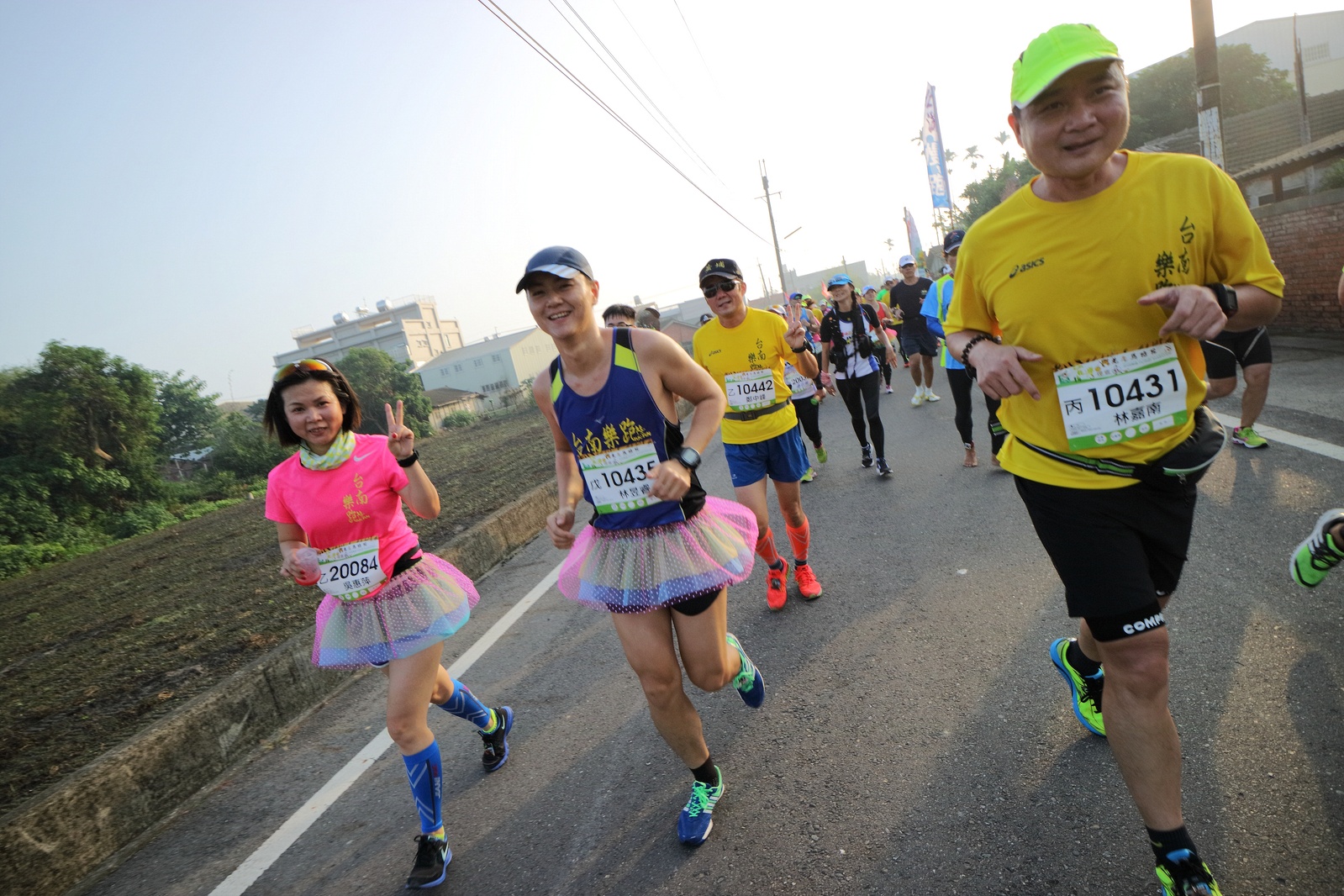 雲林的馬拉松還沒來跑過 阿貝說好玩,就跟著來了~ 不過這次虎尾馬的路線有改,除了一開始還有跑在田邊 後來幾乎都是小鎮裡,就有點小無聊~ 因為天氣好,大家怕熱,所以一開始阿貝、姐夫和RS都先跑出去了.. 我心想不急,先陪先陪阿寄慢慢跑個5K 才7分多速,阿寄就說他有點喘XDD 可能我陪在旁邊,阿寄覺得壓力大 3K後就催促我趕快往前跑,不要等她~ 所以3K後我就恢復自己正常5:30上下的速度前進 不過人好多..,心想不知遇不遇的到其它人~ 沒想到在第2還第3個水站居然看到阿貝~ 那就跟著阿貝跑吧~ 阿貝說看看能不能在2"20分以內跑完 23K要跑2"20分,那大概就是5分尾.. 阿貝直說今天心跳一直拉不起來,心跳比我還低 不得不說最近阿貝練的頗勤勞,實力已提升非常多 不過二個邊跑邊玩,後面的補給站都努力的吃喝玩樂,耗了不少時間~,太陽愈來愈大,阿貝直說幸好有先跑,不然會熱死XDD 最後2K,阿貝叫我先走,我很聽話的就用5分初的速度跑出去了 不過回頭一看,阿貝也沒在身後沒多遠..,我就頭也不回的努力往前跑 最後300公尺,聽到後面有卻步聲上來 想說..這成績,應該很少人會有這種速度 回頭一看,居然是阿貝啊~ 媽呀,阿貝比我晚起步,我又都跑5分初~ 居然追上來,真是太可怕了 最後50公尺,還和我說不衝刺要超過我了 害我也得卯起來跑~ 二人最後同時衝線~ 哈哈~好險好險~ 不過,因為起跑時我站在後面幫大家拍照 所以個人成績小贏2秒:P 隨後姐夫,RS和阿寄也陸續回來 大家都成功完賽.. 成績嘛... 就不要太在意,好玩就好:P