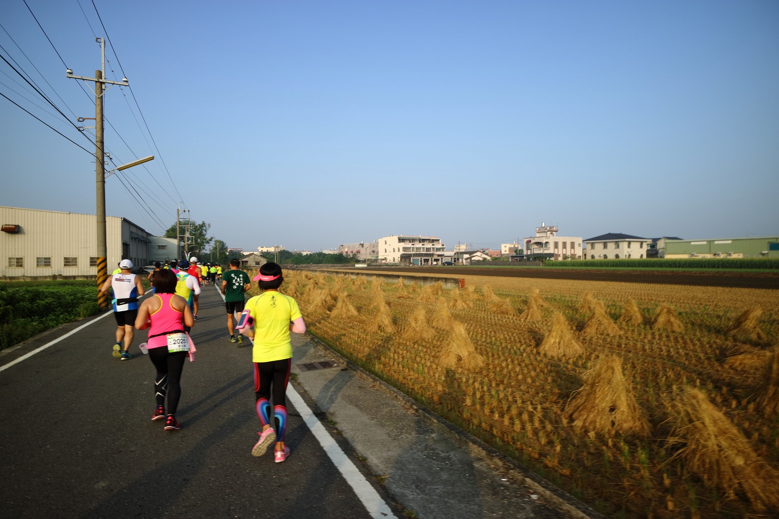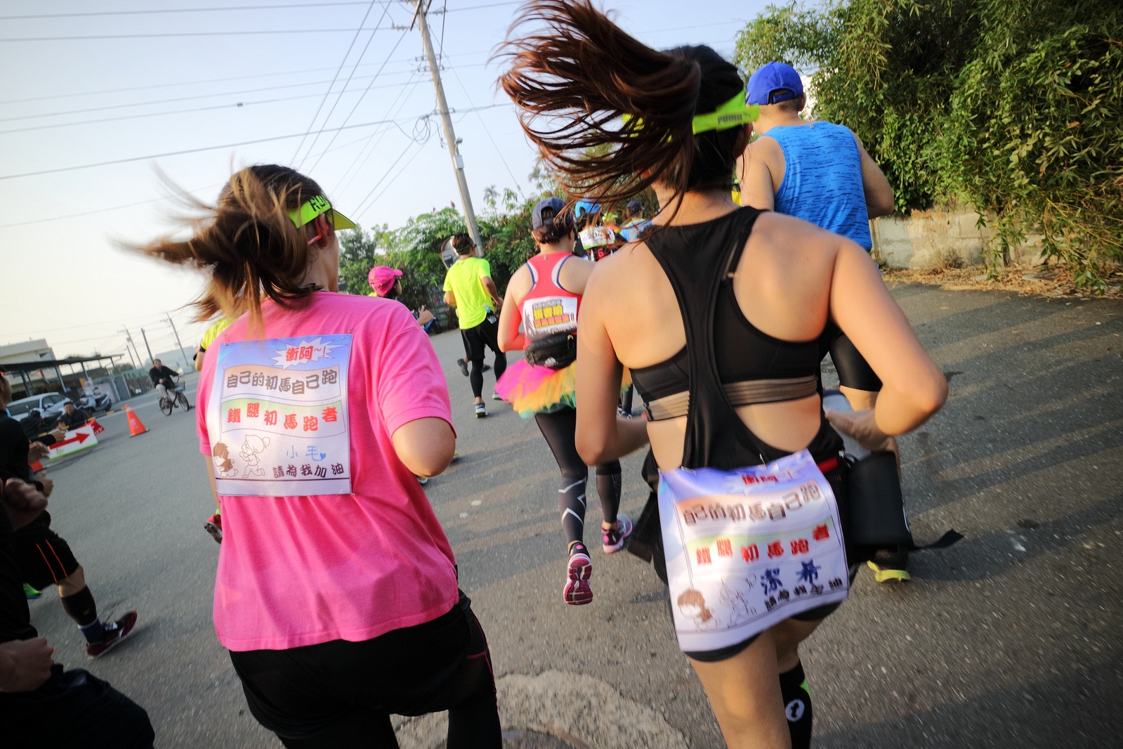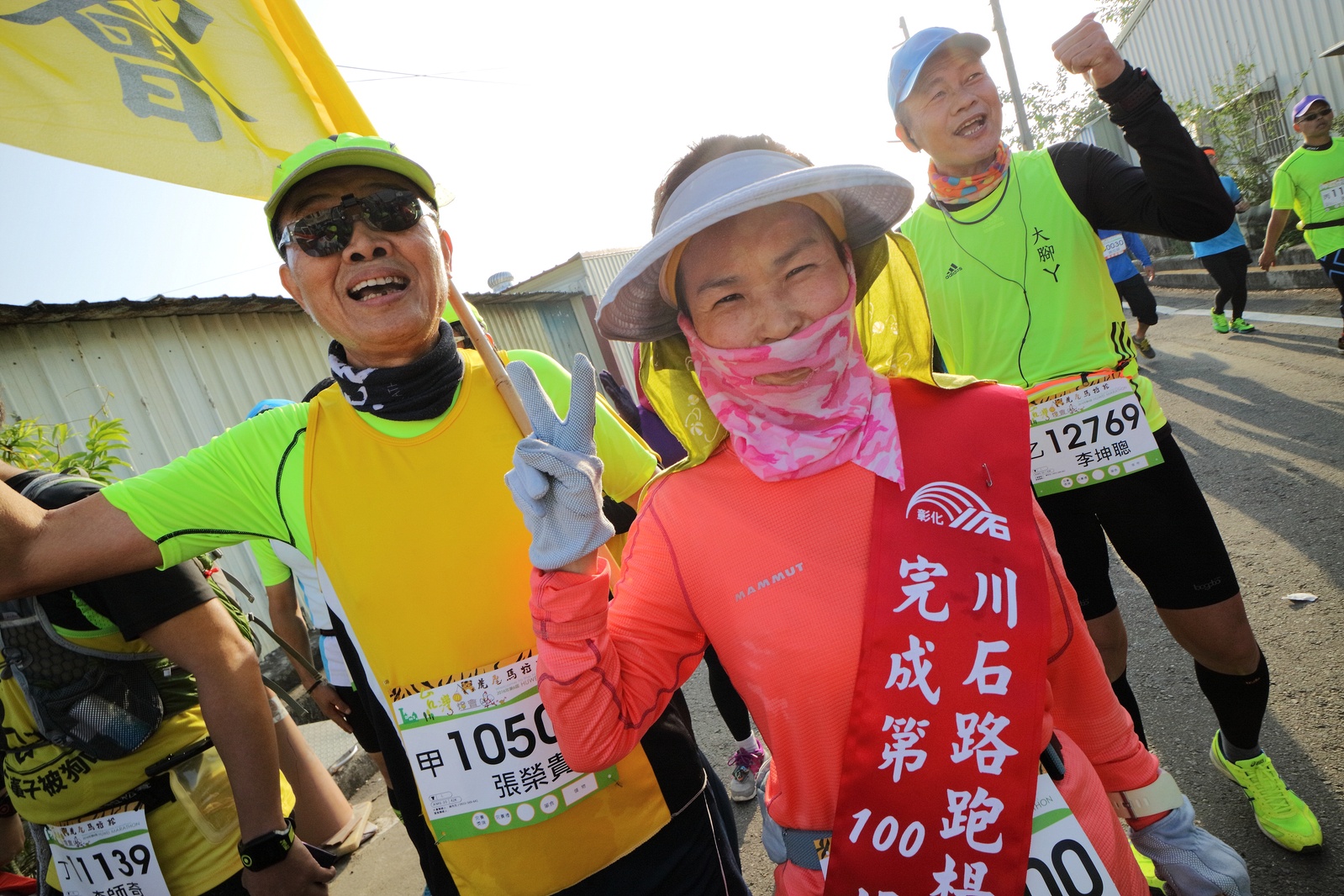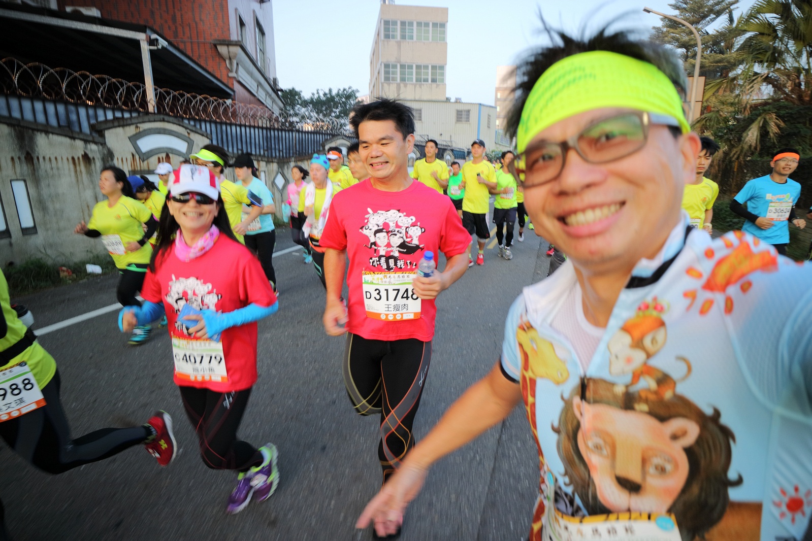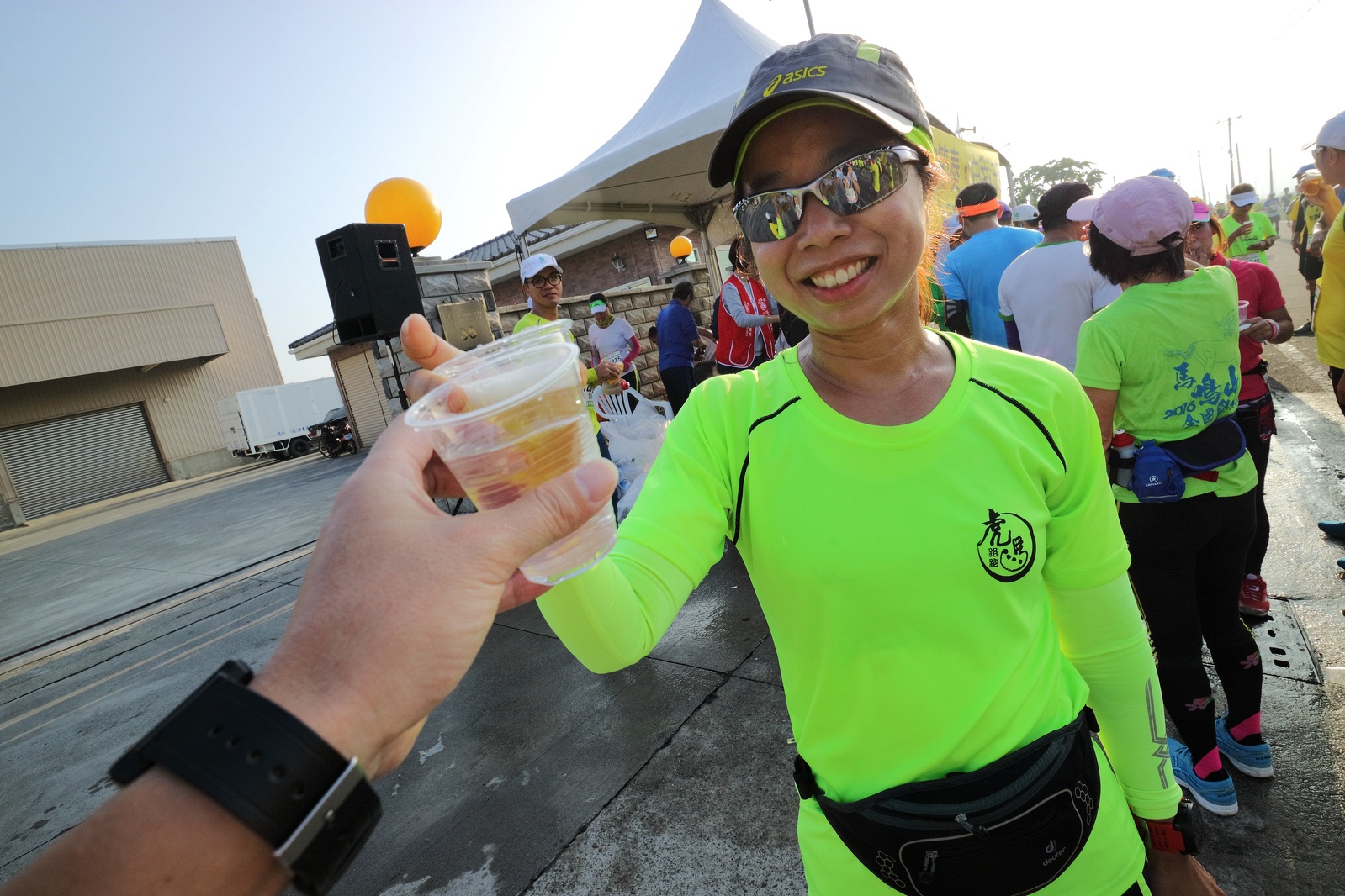 雲林的馬拉松還沒來跑過 阿貝說好玩,就跟著來了~ 不過這次虎尾馬的路線有改,除了一開始還有跑在田邊 後來幾乎都是小鎮裡,就有點小無聊~ 因為天氣好,大家怕熱,所以一開始阿貝、姐夫和RS都先跑出去了.. 我心想不急,先陪先陪阿寄慢慢跑個5K 才7分多速,阿寄就說他有點喘XDD 可能我陪在旁邊,阿寄覺得壓力大 3K後就催促我趕快往前跑,不要等她~ 所以3K後我就恢復自己正常5:30上下的速度前進 不過人好多..,心想不知遇不遇的到其它人~ 沒想到在第2還第3個水站居然看到阿貝~ 那就跟著阿貝跑吧~ 阿貝說看看能不能在2"20分以內跑完 23K要跑2"20分,那大概就是5分尾.. 阿貝直說今天心跳一直拉不起來,心跳比我還低 不得不說最近阿貝練的頗勤勞,實力已提升非常多 不過二個邊跑邊玩,後面的補給站都努力的吃喝玩樂,耗了不少時間~,太陽愈來愈大,阿貝直說幸好有先跑,不然會熱死XDD 最後2K,阿貝叫我先走,我很聽話的就用5分初的速度跑出去了 不過回頭一看,阿貝也沒在身後沒多遠..,我就頭也不回的努力往前跑 最後300公尺,聽到後面有卻步聲上來 想說..這成績,應該很少人會有這種速度 回頭一看,居然是阿貝啊~ 媽呀,阿貝比我晚起步,我又都跑5分初~ 居然追上來,真是太可怕了 最後50公尺,還和我說不衝刺要超過我了 害我也得卯起來跑~ 二人最後同時衝線~ 哈哈~好險好險~ 不過,因為起跑時我站在後面幫大家拍照 所以個人成績小贏2秒:P 隨後姐夫,RS和阿寄也陸續回來 大家都成功完賽.. 成績嘛... 就不要太在意,好玩就好:P