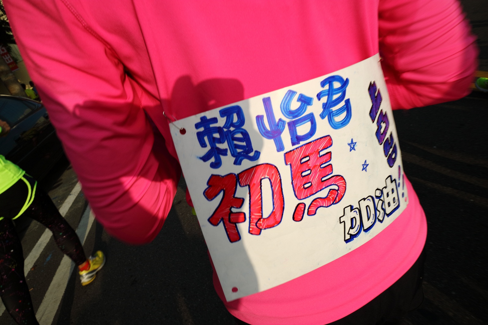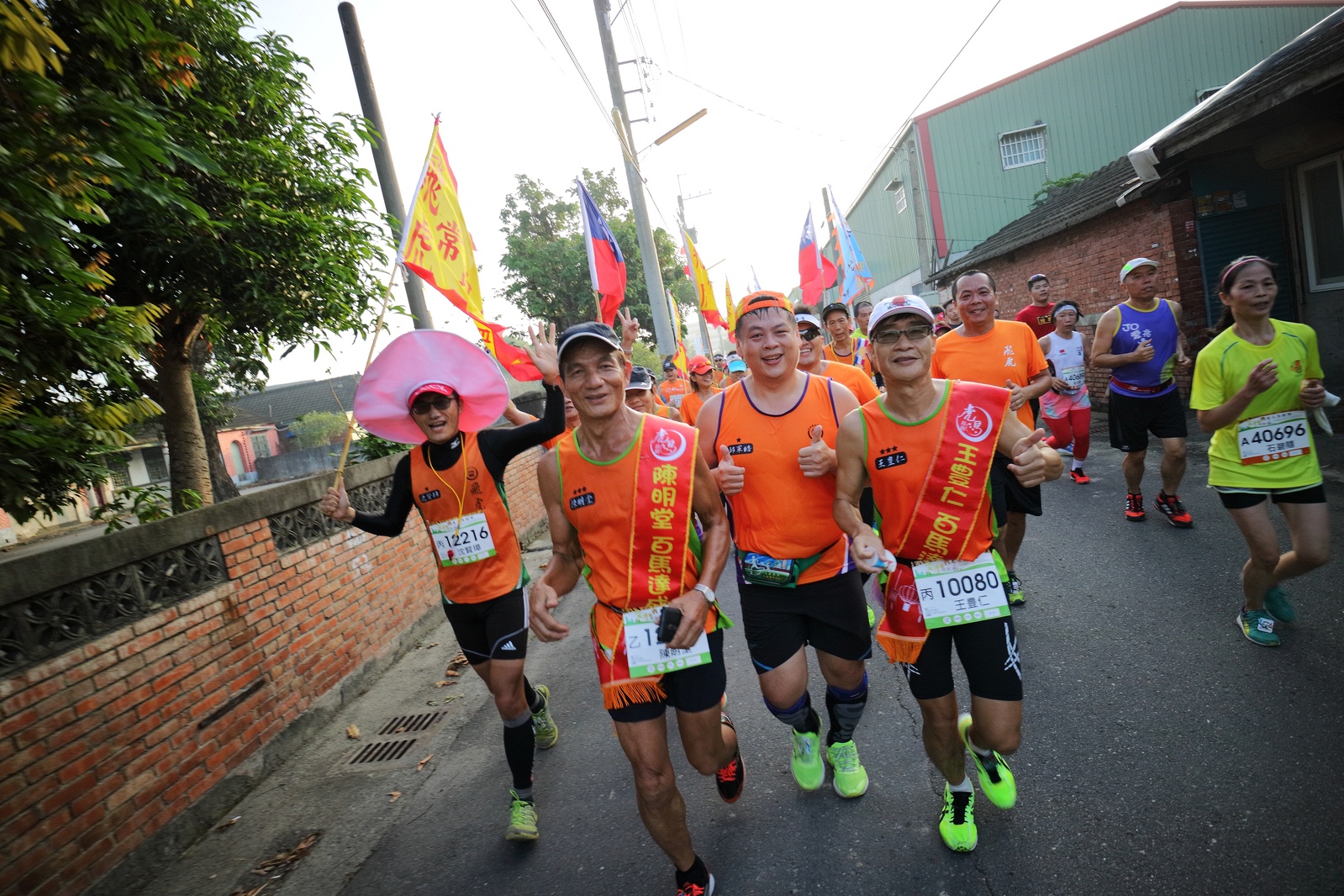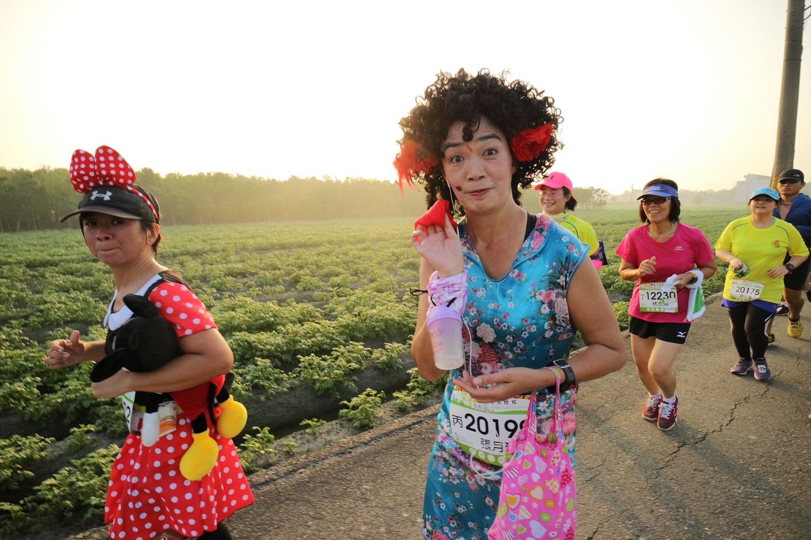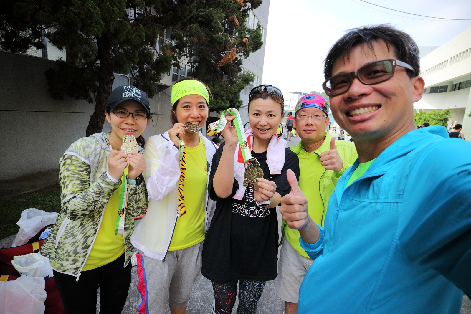雲林的馬拉松還沒來跑過 阿貝說好玩,就跟著來了~ 不過這次虎尾馬的路線有改,除了一開始還有跑在田邊 後來幾乎都是小鎮裡,就有點小無聊~ 因為天氣好,大家怕熱,所以一開始阿貝、姐夫和RS都先跑出去了.. 我心想不急,先陪先陪阿寄慢慢跑個5K 才7分多速,阿寄就說他有點喘XDD 可能我陪在旁邊,阿寄覺得壓力大 3K後就催促我趕快往前跑,不要等她~ 所以3K後我就恢復自己正常5:30上下的速度前進 不過人好多..,心想不知遇不遇的到其它人~ 沒想到在第2還第3個水站居然看到阿貝~ 那就跟著阿貝跑吧~ 阿貝說看看能不能在2"20分以內跑完 23K要跑2"20分,那大概就是5分尾.. 阿貝直說今天心跳一直拉不起來,心跳比我還低 不得不說最近阿貝練的頗勤勞,實力已提升非常多 不過二個邊跑邊玩,後面的補給站都努力的吃喝玩樂,耗了不少時間~,太陽愈來愈大,阿貝直說幸好有先跑,不然會熱死XDD 最後2K,阿貝叫我先走,我很聽話的就用5分初的速度跑出去了 不過回頭一看,阿貝也沒在身後沒多遠..,我就頭也不回的努力往前跑 最後300公尺,聽到後面有卻步聲上來 想說..這成績,應該很少人會有這種速度 回頭一看,居然是阿貝啊~ 媽呀,阿貝比我晚起步,我又都跑5分初~ 居然追上來,真是太可怕了 最後50公尺,還和我說不衝刺要超過我了 害我也得卯起來跑~ 二人最後同時衝線~ 哈哈~好險好險~ 不過,因為起跑時我站在後面幫大家拍照 所以個人成績小贏2秒:P 隨後姐夫,RS和阿寄也陸續回來 大家都成功完賽.. 成績嘛... 就不要太在意,好玩就好:P