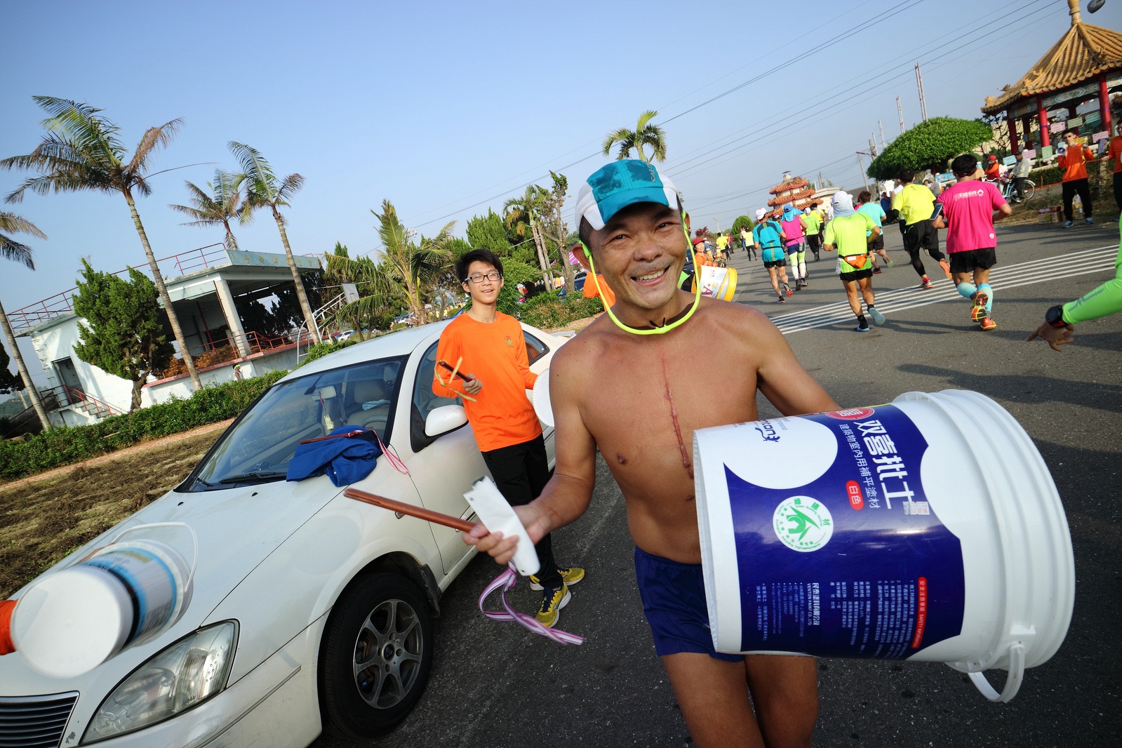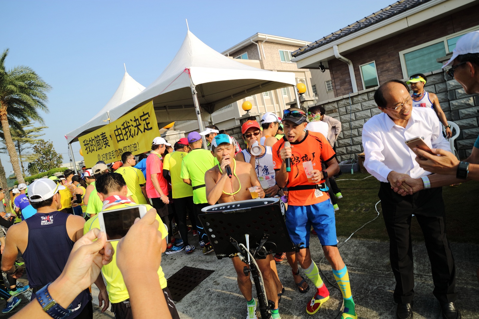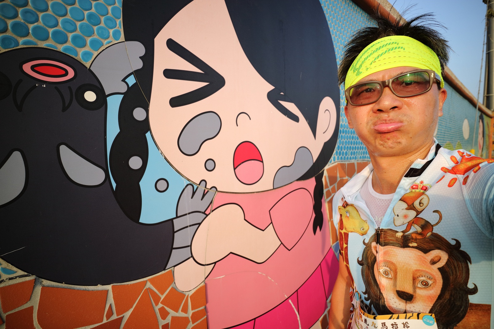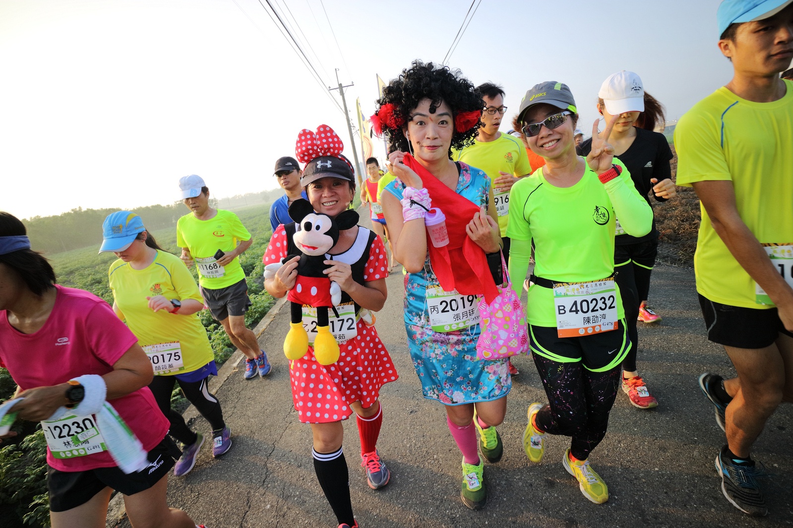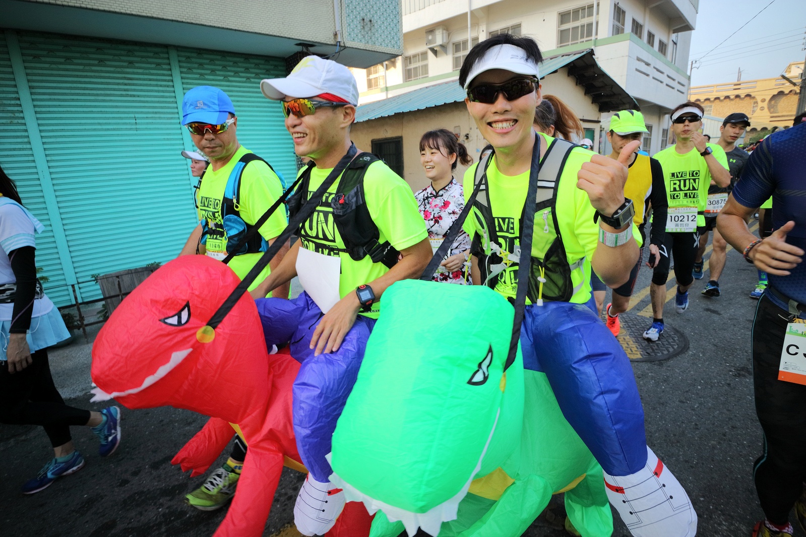 雲林的馬拉松還沒來跑過 阿貝說好玩,就跟著來了~ 不過這次虎尾馬的路線有改,除了一開始還有跑在田邊 後來幾乎都是小鎮裡,就有點小無聊~ 因為天氣好,大家怕熱,所以一開始阿貝、姐夫和RS都先跑出去了.. 我心想不急,先陪先陪阿寄慢慢跑個5K 才7分多速,阿寄就說他有點喘XDD 可能我陪在旁邊,阿寄覺得壓力大 3K後就催促我趕快往前跑,不要等她~ 所以3K後我就恢復自己正常5:30上下的速度前進 不過人好多..,心想不知遇不遇的到其它人~ 沒想到在第2還第3個水站居然看到阿貝~ 那就跟著阿貝跑吧~ 阿貝說看看能不能在2"20分以內跑完 23K要跑2"20分,那大概就是5分尾.. 阿貝直說今天心跳一直拉不起來,心跳比我還低 不得不說最近阿貝練的頗勤勞,實力已提升非常多 不過二個邊跑邊玩,後面的補給站都努力的吃喝玩樂,耗了不少時間~,太陽愈來愈大,阿貝直說幸好有先跑,不然會熱死XDD 最後2K,阿貝叫我先走,我很聽話的就用5分初的速度跑出去了 不過回頭一看,阿貝也沒在身後沒多遠..,我就頭也不回的努力往前跑 最後300公尺,聽到後面有卻步聲上來 想說..這成績,應該很少人會有這種速度 回頭一看,居然是阿貝啊~ 媽呀,阿貝比我晚起步,我又都跑5分初~ 居然追上來,真是太可怕了 最後50公尺,還和我說不衝刺要超過我了 害我也得卯起來跑~ 二人最後同時衝線~ 哈哈~好險好險~ 不過,因為起跑時我站在後面幫大家拍照 所以個人成績小贏2秒:P 隨後姐夫,RS和阿寄也陸續回來 大家都成功完賽.. 成績嘛... 就不要太在意,好玩就好:P