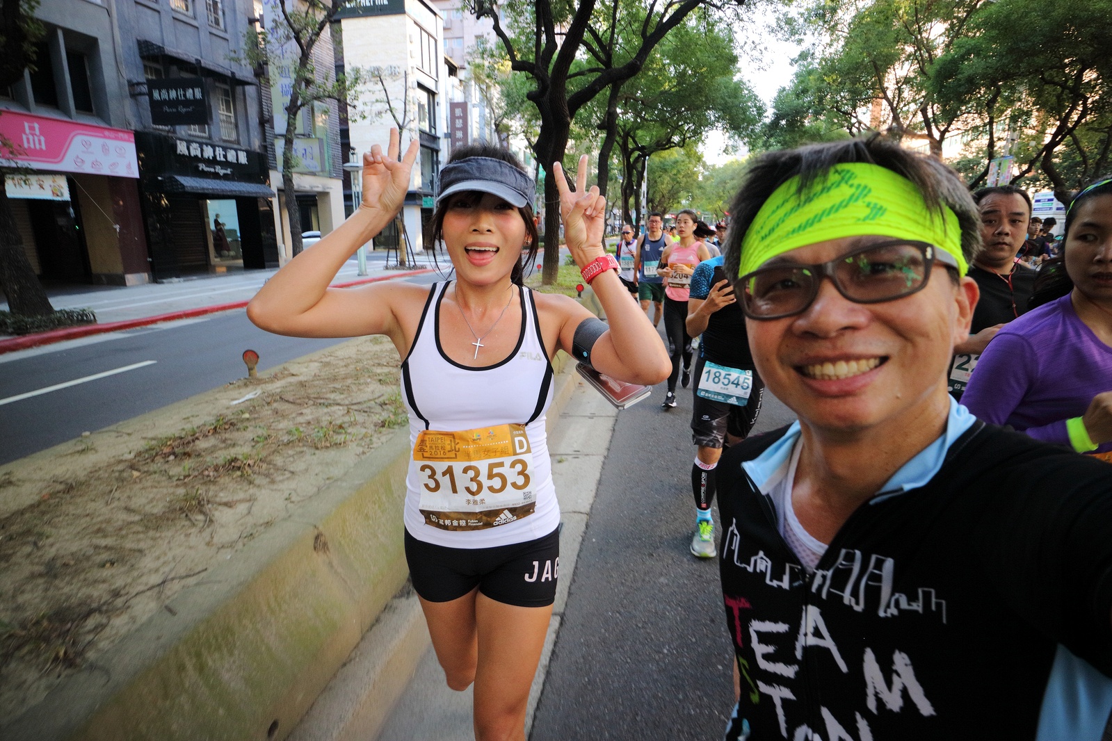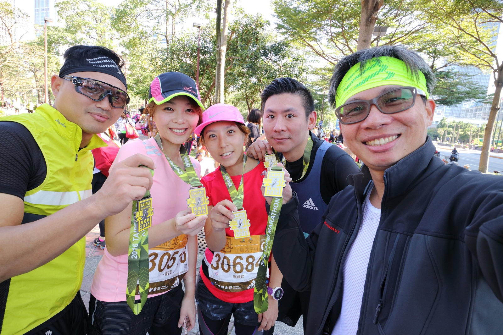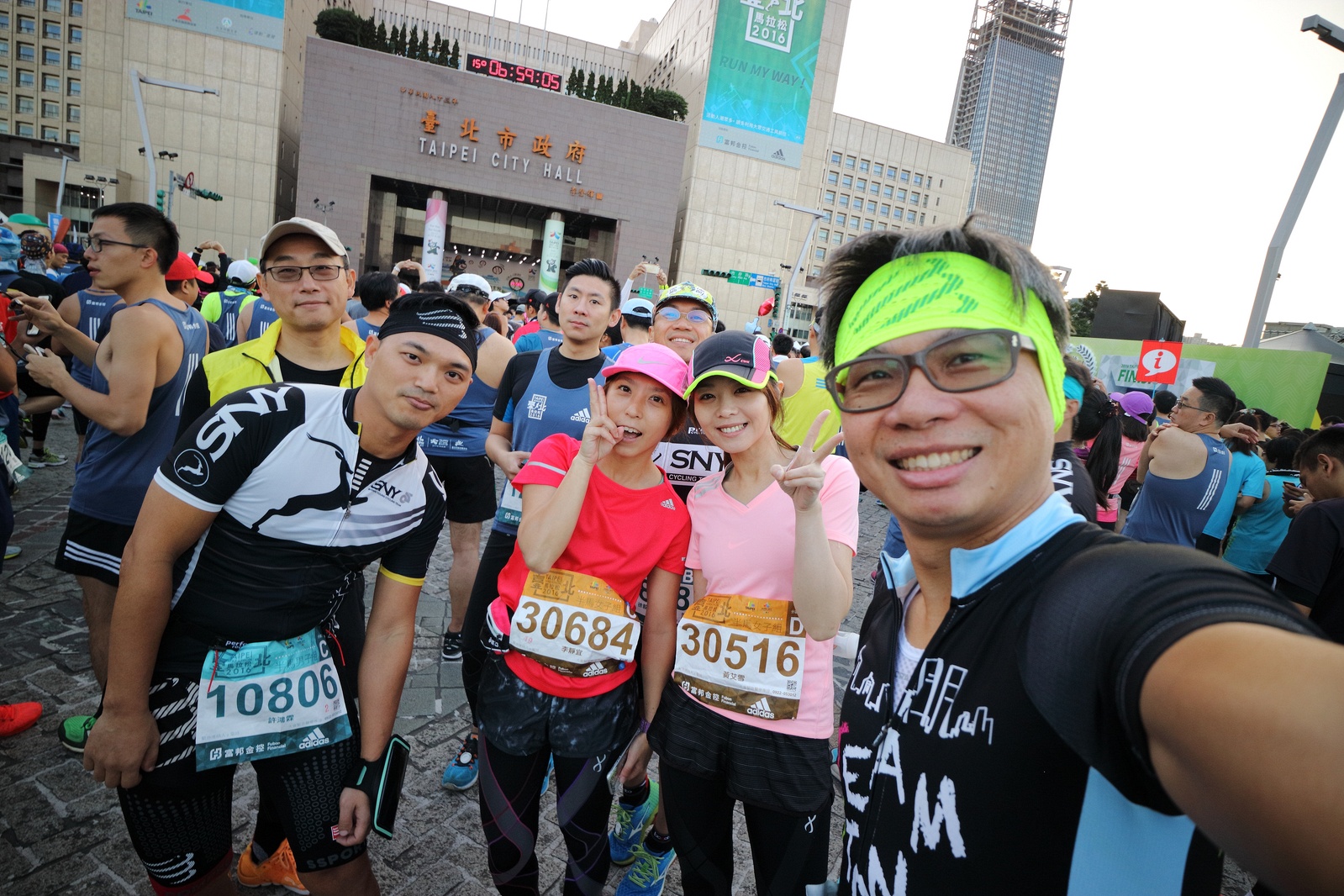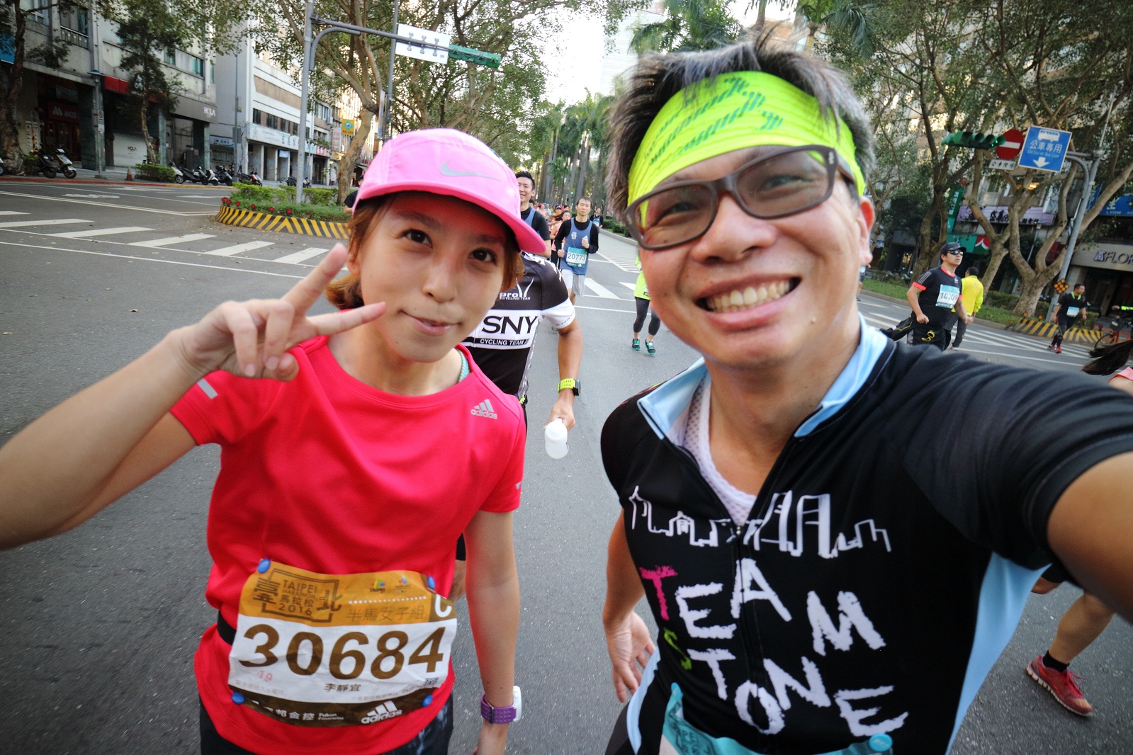 台北馬離家裡近,幾乎是每年都會參加的 不過去年忘了報,就缺席一次!! 今年艾雪在揪,那就大家一起去玩吧~ 艾雪要和我賭讓半小時,不過她的PB大約是2:30 我的PB是1:59.. 但她目前的實力大概是3小時..,所以我幾乎是勝券在握 後來我和她說..不要賭贏半小時,只要她跑進2:20,我就請吃燒肉 不過隨著窴事愈來愈接近,沒想到她一點都不認真 我為了激勵她,把標準放寬到2:30.. 這次和大家一起跑~ 反正沒有要破PB的壓力(沒練是要怎麼破XD) 帶著CANON M3跑~(有點小重,但還可以接受) 本想一起跑到總統府 但..艾雪速度實在太慢Orz 到了復興南路口後就和大家說BYEBYE~ 自己先恢復正常的速度向前跑了 要不是遇上SUBWAY和北安路的補給站妹妹,還真以為台北只有住阿姨..出來加油的都是阿姨輩的XDD(不過還是非常感謝她們啦:P) 就這樣跑了2"13分..(一年比一年退步,記得第一次好像跑了2"08) 我心想,我這樣都才勉強進入2"20.. 艾雪能跑2"30根本是天方夜譚.. 結果她跑了3個多小時,正確來說..是〞走"了3個多小時,騙了很多照片XDD 有人認真跑,有人歡樂跑~ 反正都是為自己而跑就好 沒什麼對與錯,自己開心就好:D PS:M3真的比G7X強悍,可以多拍很多照片~:P PS2:台北馬的風景比環湖風景好, Eason Chung 你說對不對~ PS3:人好多...從最後開始超車,實在有困難XD