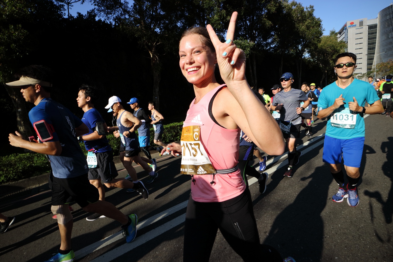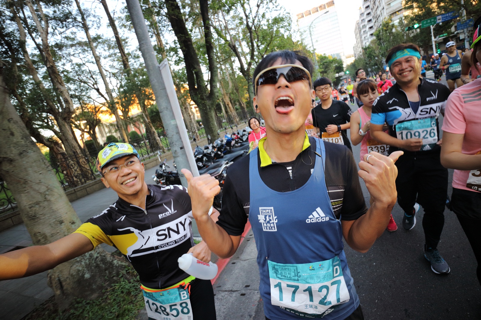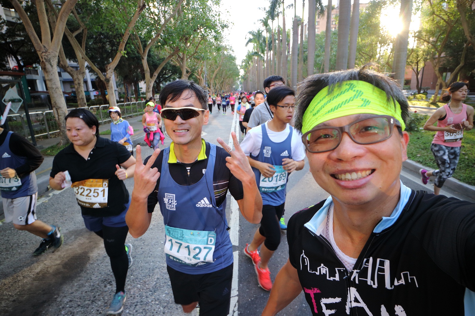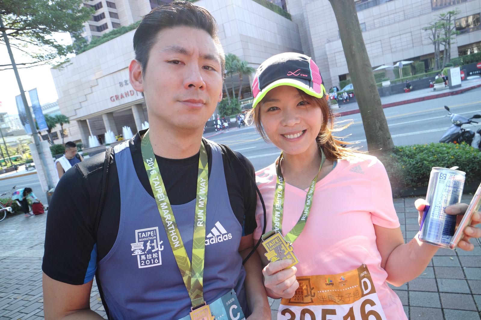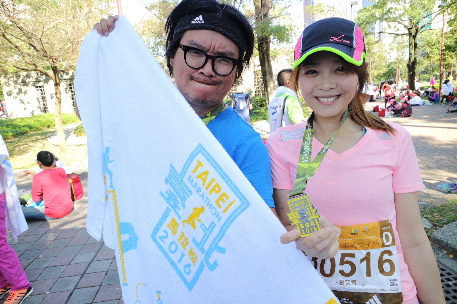 台北馬離家裡近,幾乎是每年都會參加的 不過去年忘了報,就缺席一次!! 今年艾雪在揪,那就大家一起去玩吧~ 艾雪要和我賭讓半小時,不過她的PB大約是2:30 我的PB是1:59.. 但她目前的實力大概是3小時..,所以我幾乎是勝券在握 後來我和她說..不要賭贏半小時,只要她跑進2:20,我就請吃燒肉 不過隨著窴事愈來愈接近,沒想到她一點都不認真 我為了激勵她,把標準放寬到2:30.. 這次和大家一起跑~ 反正沒有要破PB的壓力(沒練是要怎麼破XD) 帶著CANON M3跑~(有點小重,但還可以接受) 本想一起跑到總統府 但..艾雪速度實在太慢Orz 到了復興南路口後就和大家說BYEBYE~ 自己先恢復正常的速度向前跑了 要不是遇上SUBWAY和北安路的補給站妹妹,還真以為台北只有住阿姨..出來加油的都是阿姨輩的XDD(不過還是非常感謝她們啦:P) 就這樣跑了2"13分..(一年比一年退步,記得第一次好像跑了2"08) 我心想,我這樣都才勉強進入2"20.. 艾雪能跑2"30根本是天方夜譚.. 結果她跑了3個多小時,正確來說..是〞走"了3個多小時,騙了很多照片XDD 有人認真跑,有人歡樂跑~ 反正都是為自己而跑就好 沒什麼對與錯,自己開心就好:D PS:M3真的比G7X強悍,可以多拍很多照片~:P PS2:台北馬的風景比環湖風景好, Eason Chung 你說對不對~ PS3:人好多...從最後開始超車,實在有困難XD