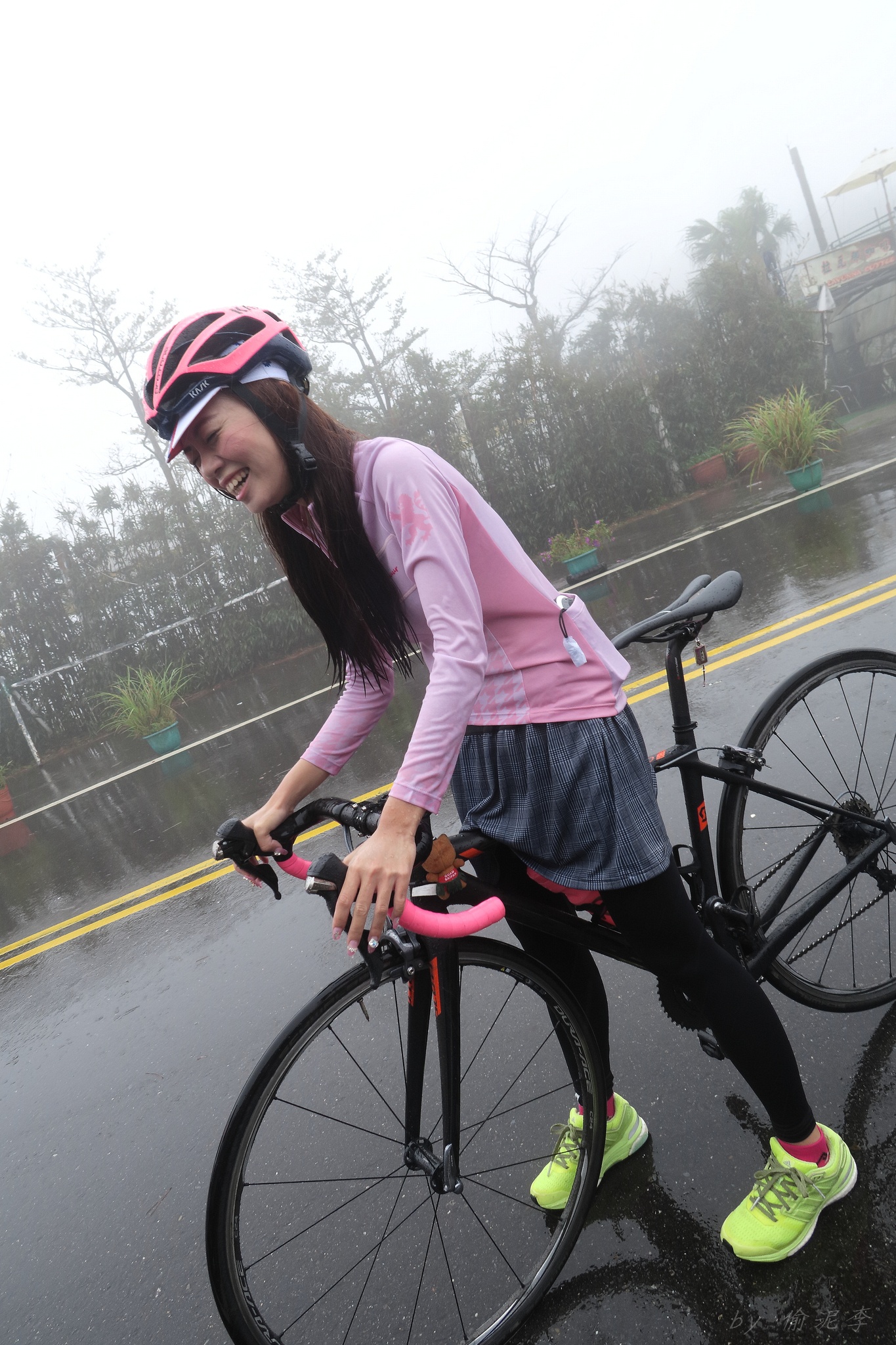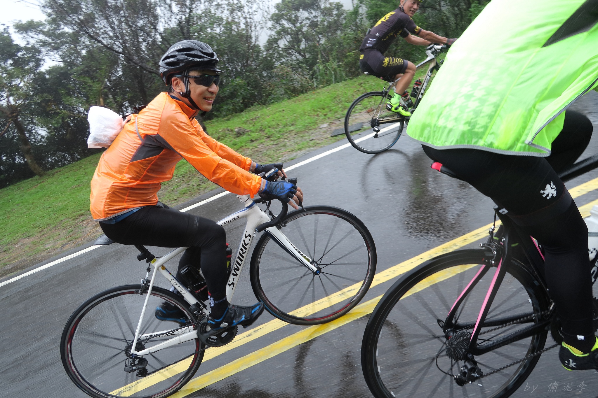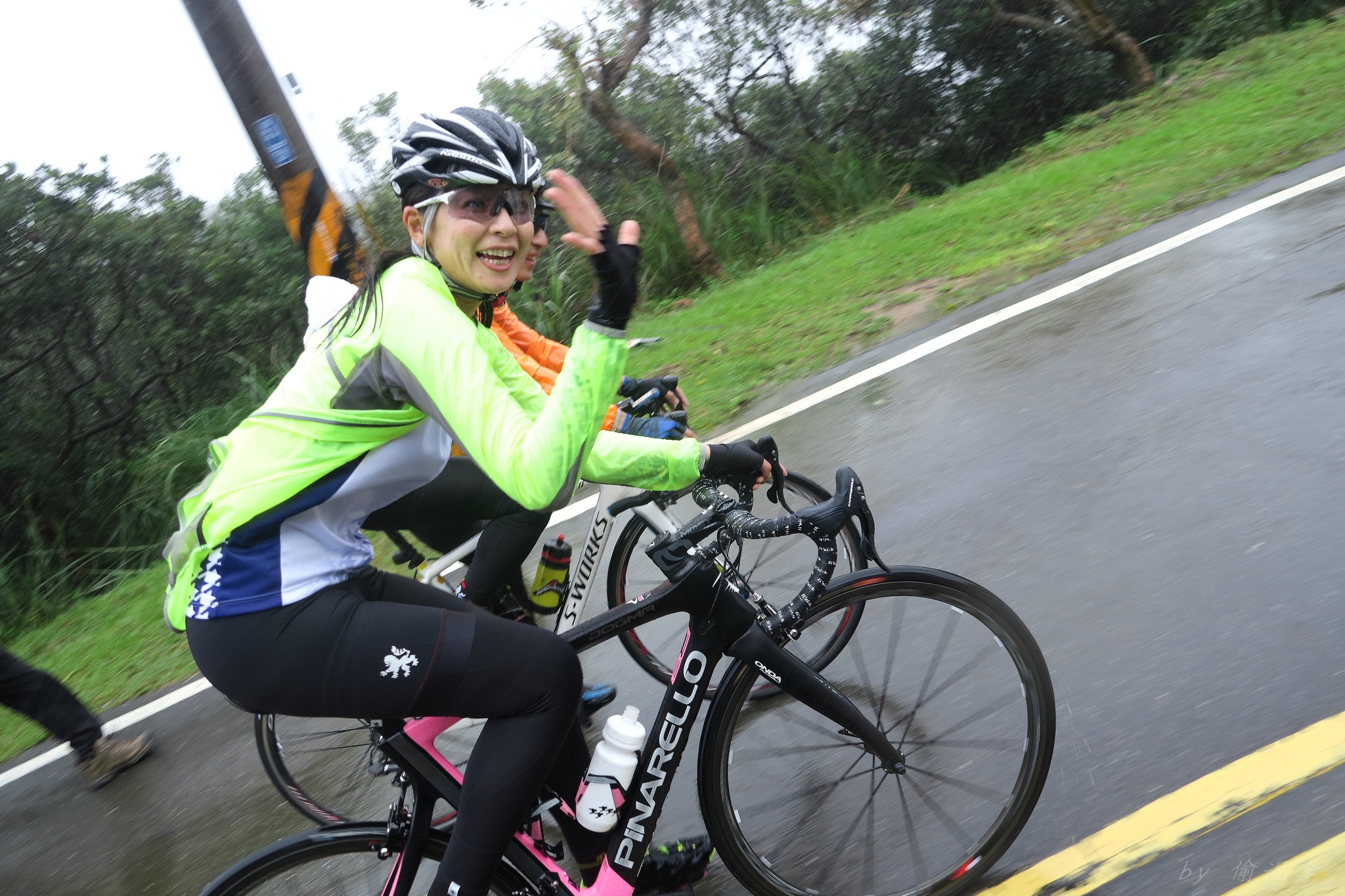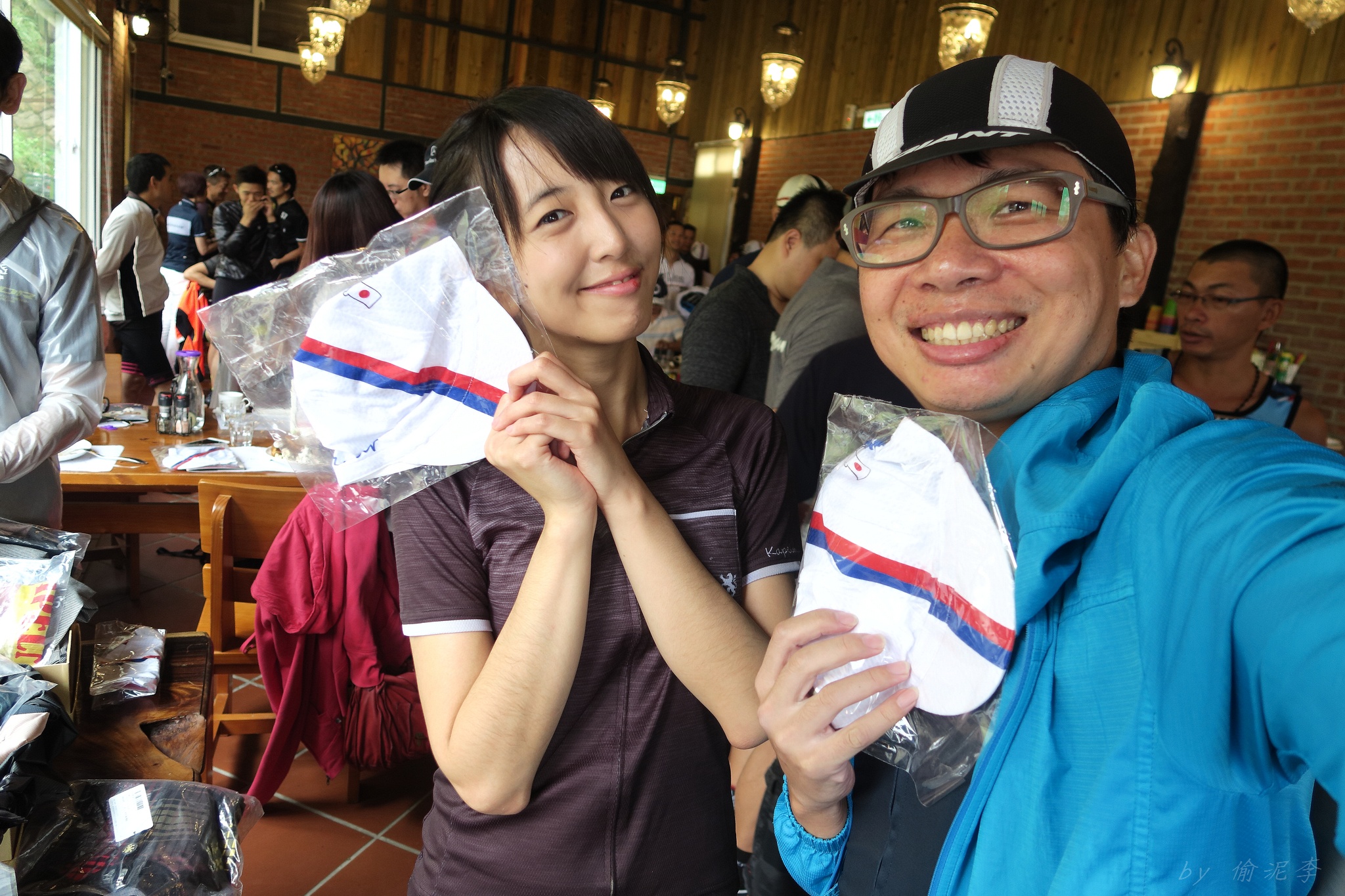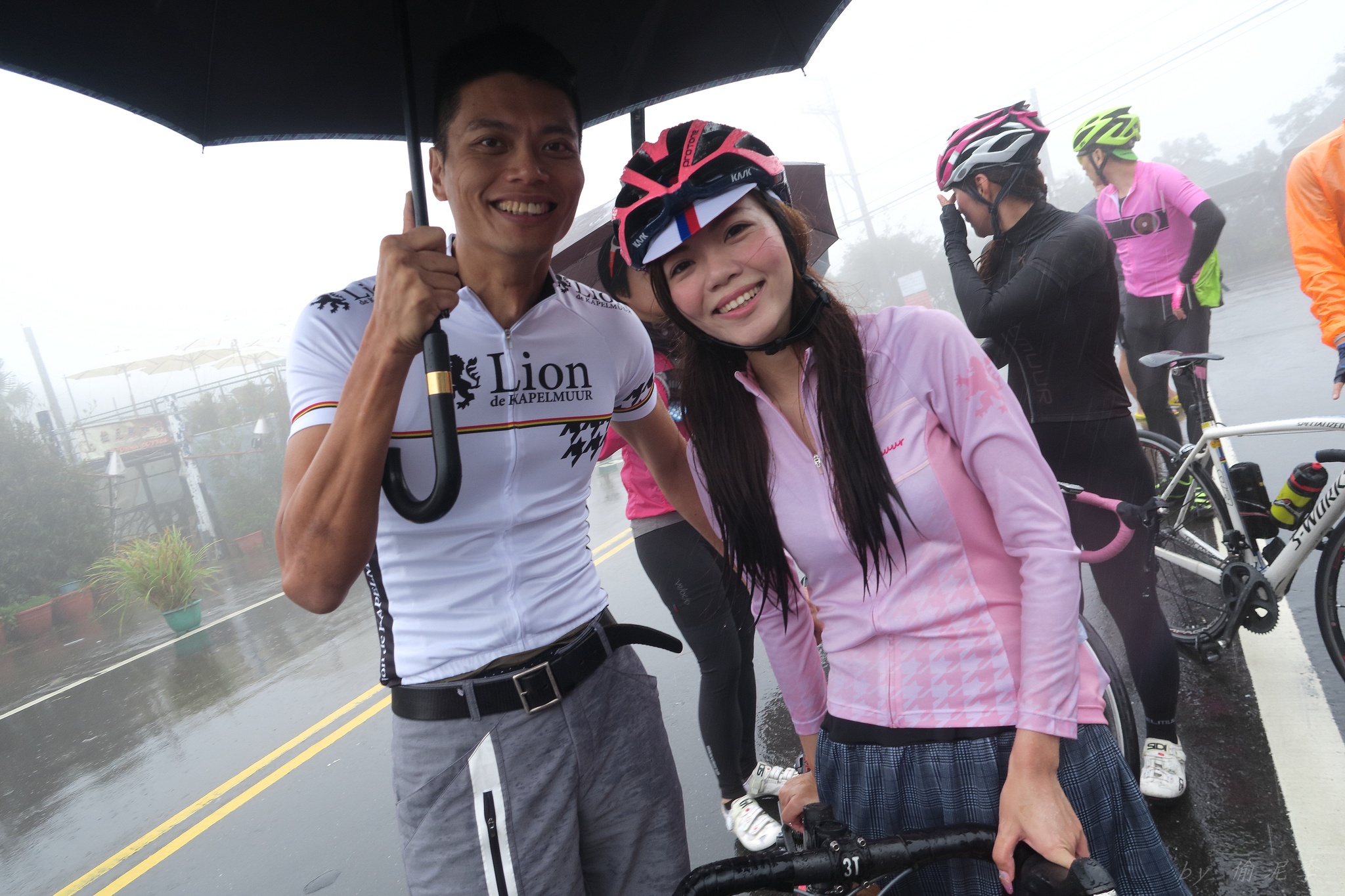 天氣預報說70%下雨~ 但夏美說..風雨無阻!!!風雨無阻!!!風雨無阻!!! 很重要,一定要說三次!! 因為不讓日本女神單摩朗.. 早上雖然地溼,但沒什麼雨,就衝啦~ 沒想到受到號召的車友還不少~ 準備一下,大夥就熱血出發!! 夏美說涼子騎日本富士山有銅環的實力.. 我心想..那不就很快嗎?? 今天又要上演被拉爆的戲碼了嗎??XDD 還好涼子只是來郊遊的,輕鬆騎上山就好~ 只是無指山上真是風大雨大Orz 主辦單位為了車友安全,貼心的請大家上支援車,一起到白石湖的咖啡廳集合~ 感謝KAPELMUUR設想周全!! 而最後本來只有有穿KAPELMUUR車衣的車友有機獲得小帽一頂,在這個風雨交加的日子,社長大方的送給在場每位車友,再次大感謝啊~ 雖然目前還沒有KAPELMUUR的車衣 不過經過這次約騎,我相信會有機會去敗家的:P