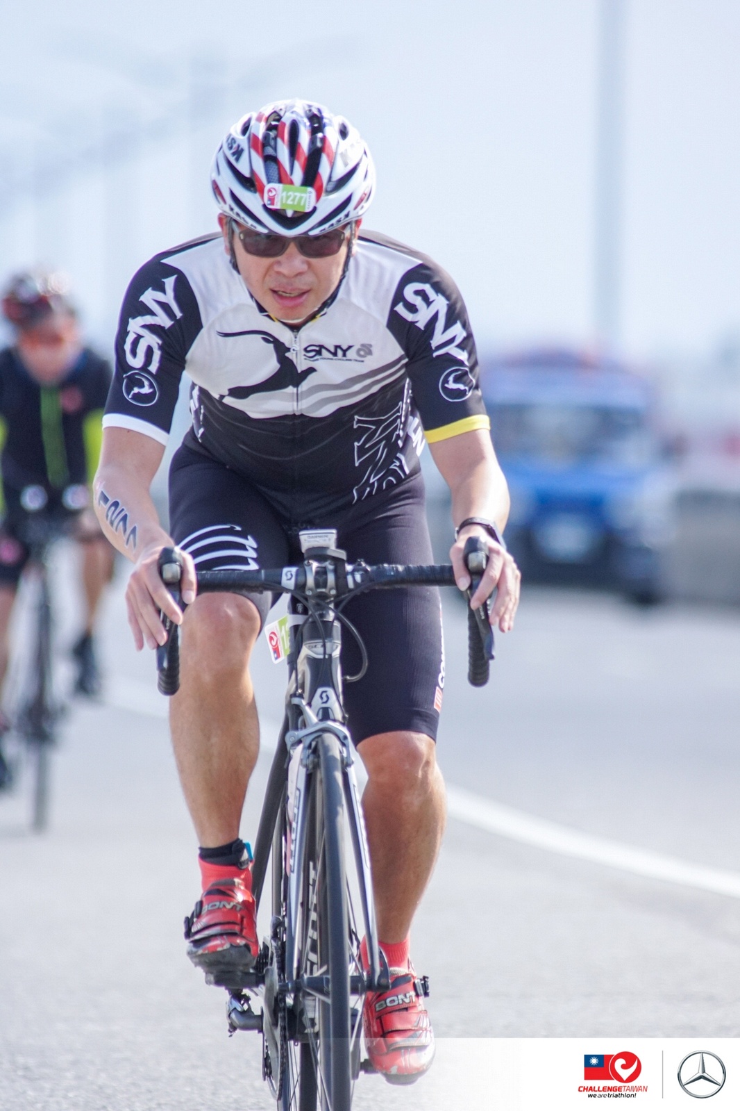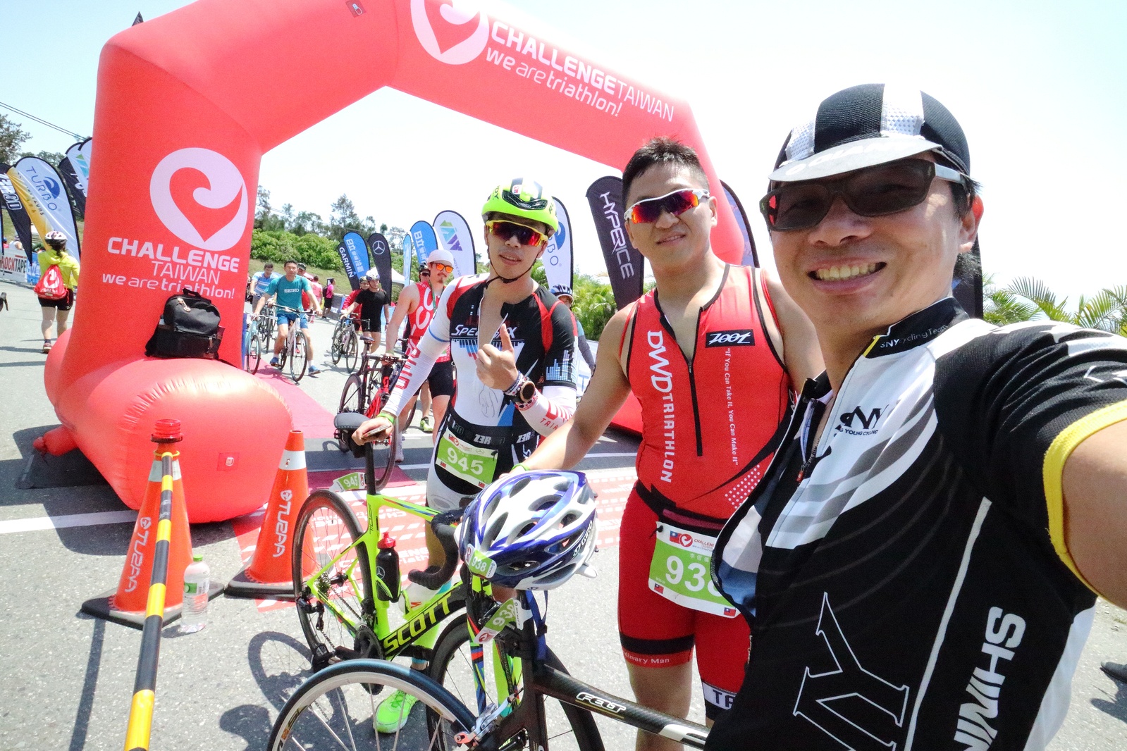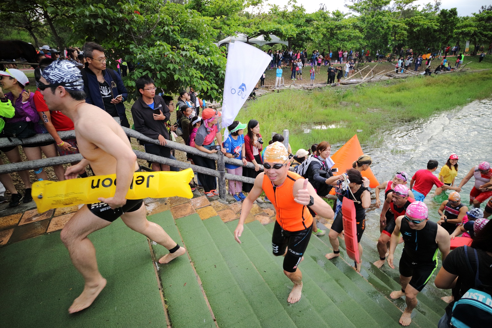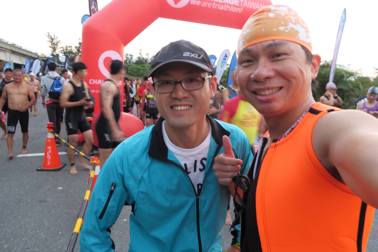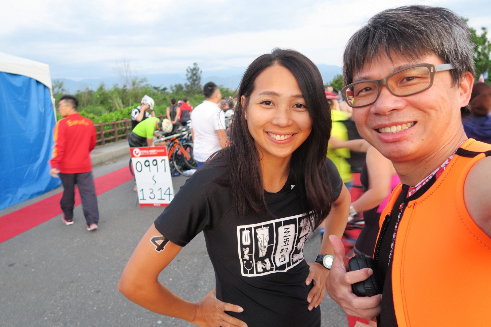結束比賽後一週..因為公路車送修,我又來到北教大泡水游泳 原以為比賽可以一次完成1500公尺的我 已經和「水性」這位朋友多拉近了幾步 沒想到游了300公尺後.. 才滿腦子問號.... 我到底是怎麼完賽的XDDDD --------------------------------------------------------------- 完成多次鐵人三項的PETER,這一二年一直鼓吹我來參加鐵人三項 一直誘惑我說鐵人三項的妹都很正(老實說..路跑的女生比較多耶~) 但我是那種為了妹就會去參加的人嗎??當然不是啊~ 雖然我喜歡運動,但還真的沒有很愛比賽那種緊張、競賽的感覺~ 年紀大了,好勝心不強,除了不喜歡被女生刷卡外:P(那個總字輩的筱嵐姐和假掰MO例外,請儘量刷~) 喜歡「玩」,不是很愛「比」 真的報名參加比賽也都會帶著相機,沿途拍照留念 畢竟什麼時侯會再來一次真不知是何時了 也許有人會覺得這樣不尊重比賽,但這是我比賽的方式!!享受比賽的一切~~ 講真話是拚到死也上不了凸台,也不是說上不了凸台就不要拚命啦!!反正多拍幾張照片也不會很浪費時間,最多也差個5-10分鐘而已,但賽後多了很多照片可以看:P 但三鐵賽不同,感覺大家會斤斤計較成績 拚的都是速度 似乎不適合我這種愛玩的 且我游泳弱,游個50公尺就快喘死,又不想去上課,沒動力認真練.../_\ 加上~~三鐵比賽的報名費真是TMD的貴..(我是小氣鬼) 515早鳥價就是2500..113更要三倍價...226破萬了..Orz 游泳上岸後又要溼著屁股騎車,騎完車又要頂著大太陽跑步..,光想就令我打退堂鼓 不過主因還是我不會游泳 若真的練好游泳,也許可以來體驗看看 去年底不正直的PETER哥說他每週四都會去北教大練游泳 他說他可以教我~ 嗯~~有免費的教練可以趁機學好游泳也不錯!! 國中時曾上過游泳課,也能游50公尺~ 所以我一直覺得「我是會游泳的」,所以我一直覺得「我是會游泳的」,所以我一直覺得「我是會游泳的」(很重要,所以說三次),只是「姿勢不正確」和「換氣不順」而已 沒想到游給PETER看了之後.. 他說...你「根本不會換氣」嘛~~ 什麼..我不會換氣(晴天霹靂) 我明明嘴巴都有張開啊~怎麼不會換氣呢?? 「只有嘴巴張開而已啊,沒有真正把氣吸進來,所以游一下就會很喘」,PETER說~~ 沒錯~每次游個50公尺就會喘的要死XD 「從韻律呼吸開始吧!!」,PETER說 「水中吐氣,上來用力吸氣~~」「水中吐氣,上來用力吸氣~~」「水中吐氣,上來用力吸氣~~」 就這樣...我三鐵游泳之路從韻律呼吸開始... 程度就是比不會的好一點而已 Orz 先學好游泳再報名..,我心裡一直是這麼想..,所以練的很不積極,加上時間還有半年,一點都不緊張 後來PETER說有位朋友(奶精)有事不能去,名額要讓出來 是早鳥價,問我要不要接.. 那時游泳的大概是學到可以不太費力的游蛙式,換氣也已經不會那麼喘,連續游100公尺沒問題...,但速度很慢,有多慢呢??一趟50公尺大概2分多鐘..= =" 大魔王也私訊來說他決定報226,目標SUB12,問我要不要一起去 也不知那來的勇氣,就和PETER說...我接吧!! 我想...游泳應該沒那麼難吧,我應該可以的!!我應該可以的!!我應該可以的!!. 然而,後來的進展不如想像中順利..游泳真的不是靠暴力可以解決(泣) 一方面我一週頂多練習1次,一方面技巧也遇上瓶頸..(夾不到水...XD) 3月初,我的蛙式還停留在100公尺要游3:40-3-50的速度(已穿浮力褲在練習了),老婆了解我的焦慮,所以只要我說要去練游泳,她都會默默的說好..,而二個小孩在最後二個月也都知道當爸爸早點回家時,不是要陪他們玩,而是要去練游泳XDD 515鐵人賽游1500公尺50分鐘關門,自己在泳池測過1500公尺要花上56分鐘左右,在開放水域游,沒有標線,基本上游的距離會更長,時間會更久,所以練習回家後都很沮喪的和老婆說依目前的速度...百分百會被關門....T___T,那時心中還會想,那是不是改113會比較好,113游1900公尺,90分關門,時間相對寬裕很多,只是報名費也貴三倍...Orz,還是先體驗看看就好XDD 那為什麼不用自由式游呢?? PETER說..自由式更不好學,且比賽一緊張很容易吸不到氣,先學蛙式自保..,且蛙式可以定位,自由式很多人會游歪,修正來修正去,時間也差不多 這樣說也對,騎車跑步慢就算了..,在開放水域游泳,一個閃失是有悠關生命安全的~ 所以即使蛙式很慢,但相對於自由式輕鬆,比較容易自保... 賽前小猴也多次來關心我練的如何? 約了一天早上和LEO,PONKI夫婦一起到北教大團練游泳 沒想到那天大爆發 蛙式跟著LEO可以游出50公尺1分24的速度 自由式跟著碰也可以1分06左右 那時心想,若有這速度,比賽就不用緊張了,哇哈哈~ 可是...那天的狀況只是曇花一現,僅有那次,後來練習再也沒出現過蛙式100公尺可以游進3分內...(嗚~~) 周遭朋友看我那麼焦慮,紛紛來幫我,不是和我說該怎麼矯正姿勢,不然就PO教學影片給看,幾位226鐵人更是直接現場指導...(雨棠也抽空來看我的蛙式..) 可惜不成材的我還是一直卡到瓶頸,速度未能提昇T___T(水性不和我交朋友) 轉眼間來到4月,距比賽只剩不到一個月,焦慮的我開始翻WINNIE和大魔王的初鐵文章,看看人家以前是怎麼比的,然後到處問朋友,CT關門是不是那麼嚴格,50分關門時間一到就要被撈起來??若真的被拔晶片,還可不可以繼續比...,然後..我會在岸邊遇到美女鐵人一起加油打氣嗎??(大誤) 成哥在賽前特地拿一件浮力背心借我,試了之後的感覺是速度不會變快,但因為上半身比較浮,所以換氣就相對輕鬆,不過SIZE稍微大了一些,我就自己上網GOOGLE一
